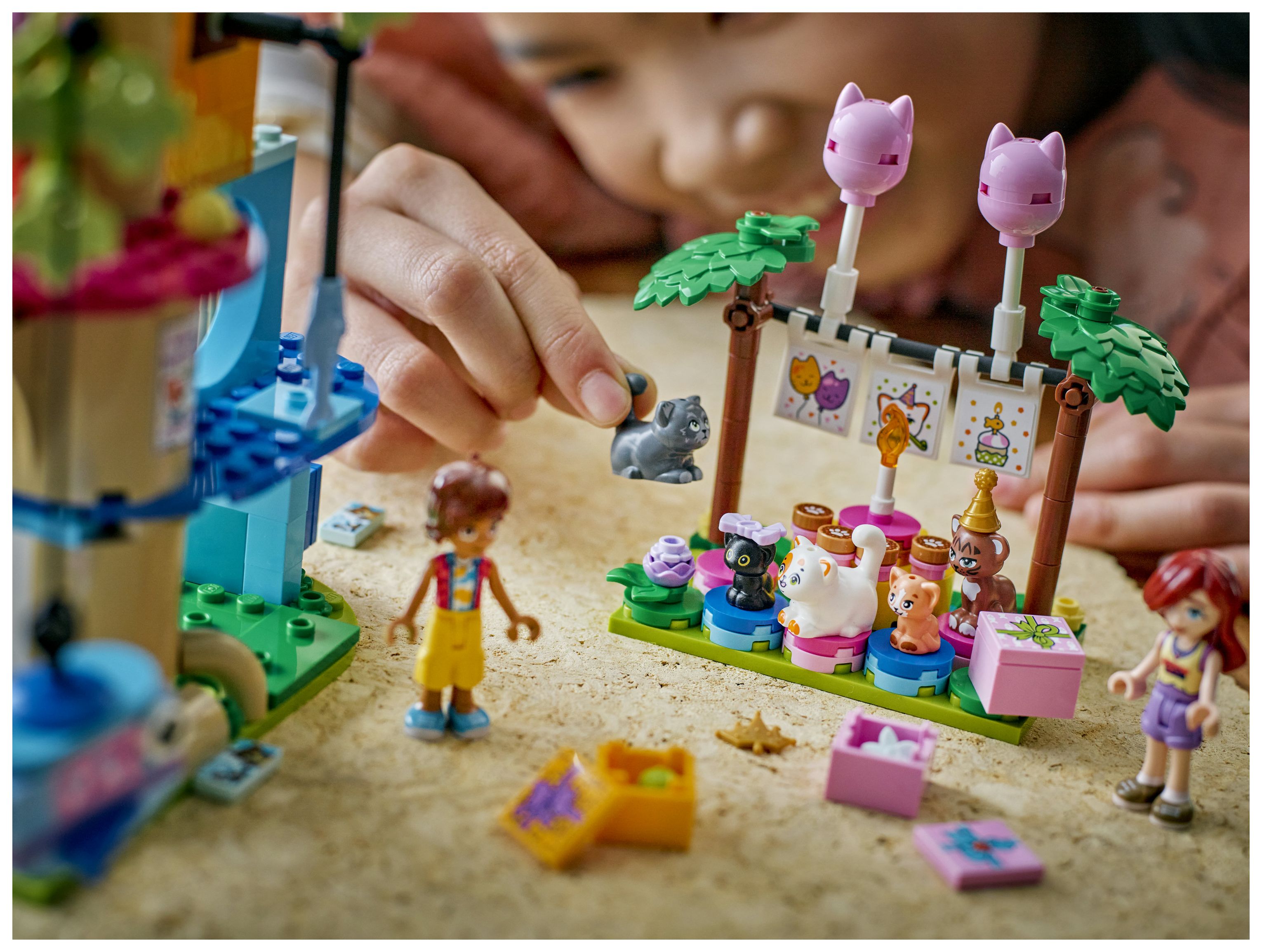 Bauset für katzenbegeisterte Kinder: LEGO® Friends Katzengeburtstagsparty & Baumhaus ist ein Spielzeug für Mädchen und Jungen ab 6 Jahren. 2 Spielfiguren und 5 Katzen lassen Kinder fantasievoll spielen