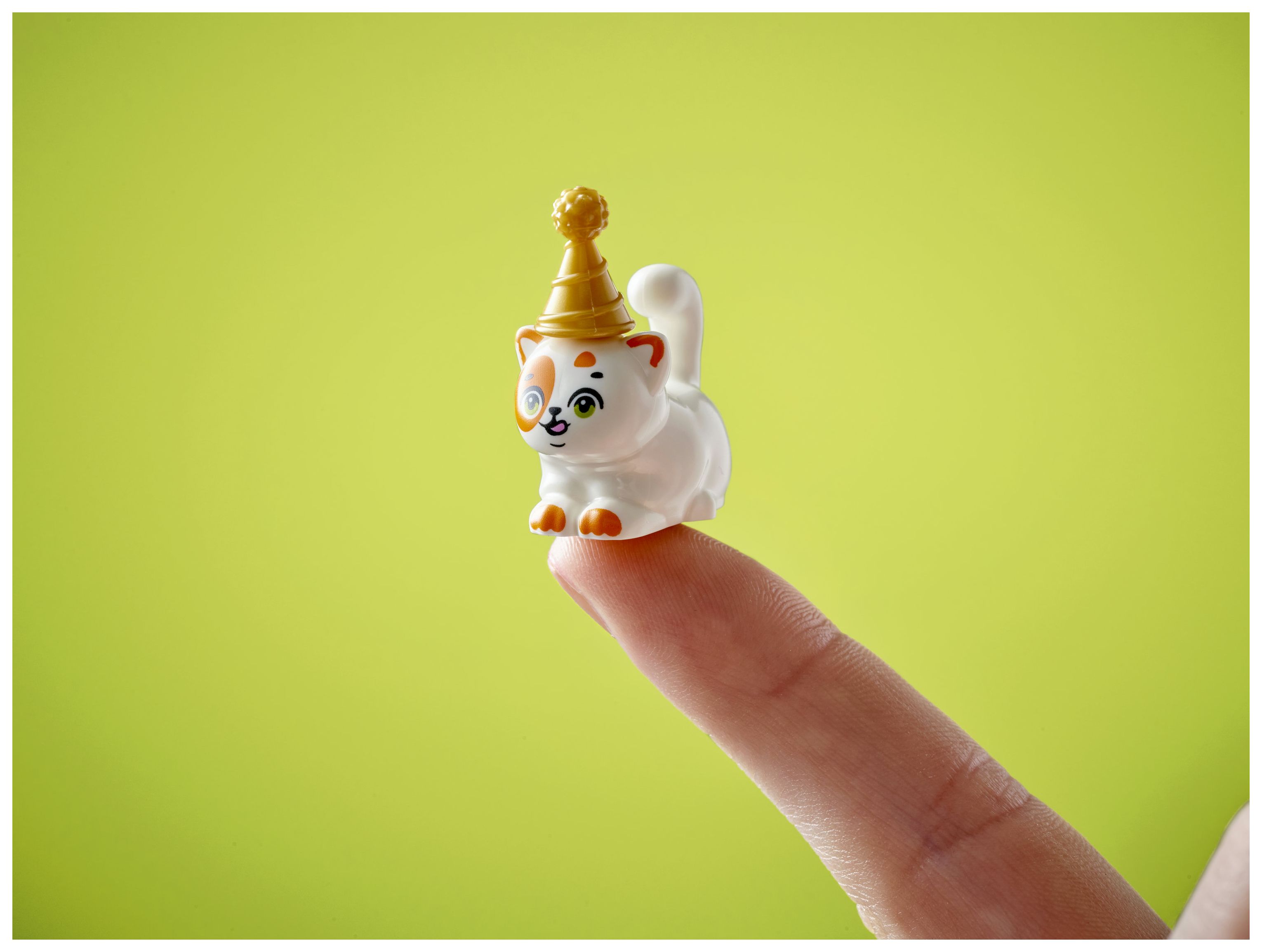 Dieses faszinierende Spielset bildet die Kulisse für Churros Geburtstagsparty. 4 Katzen, die mit Churro befreundet sind, sowie die LEGO Friends Charaktere Leo und Paisley feiern mit. Entdecke lustige Details wie die Geburtstagsgeschenke, Spruchbänder und katzenförmige Luftballons. Kinder werden die Katzen gerne durchs Baumhaus führen. Dort gibt es eine fischförmige Piñata, Katzengras, einen Springbrunnen und ein Katzenklo. Die Katzen können sich an den drehbaren Tisch setzen, um Churros Geburtstagstorte zu verputzen. Dieses Set bietet so viele Spielmöglichkeiten, dass Kinder jedes Mal eine andere Freundschaftsgeschichte darstellen können.