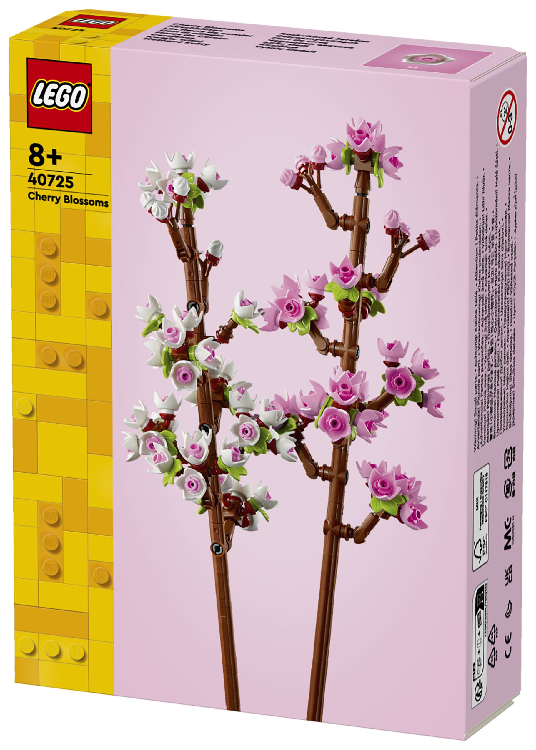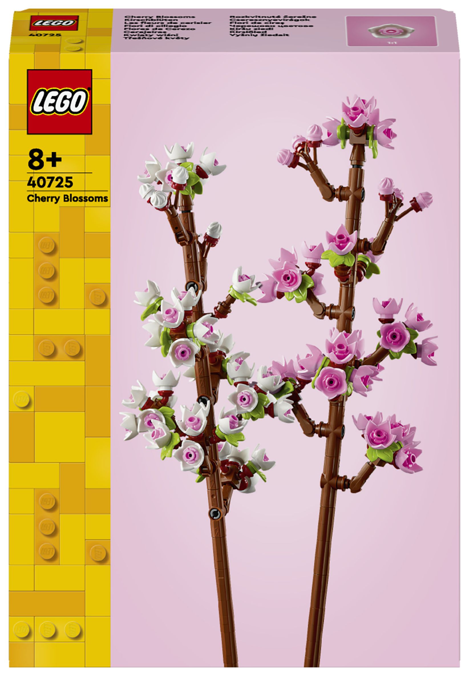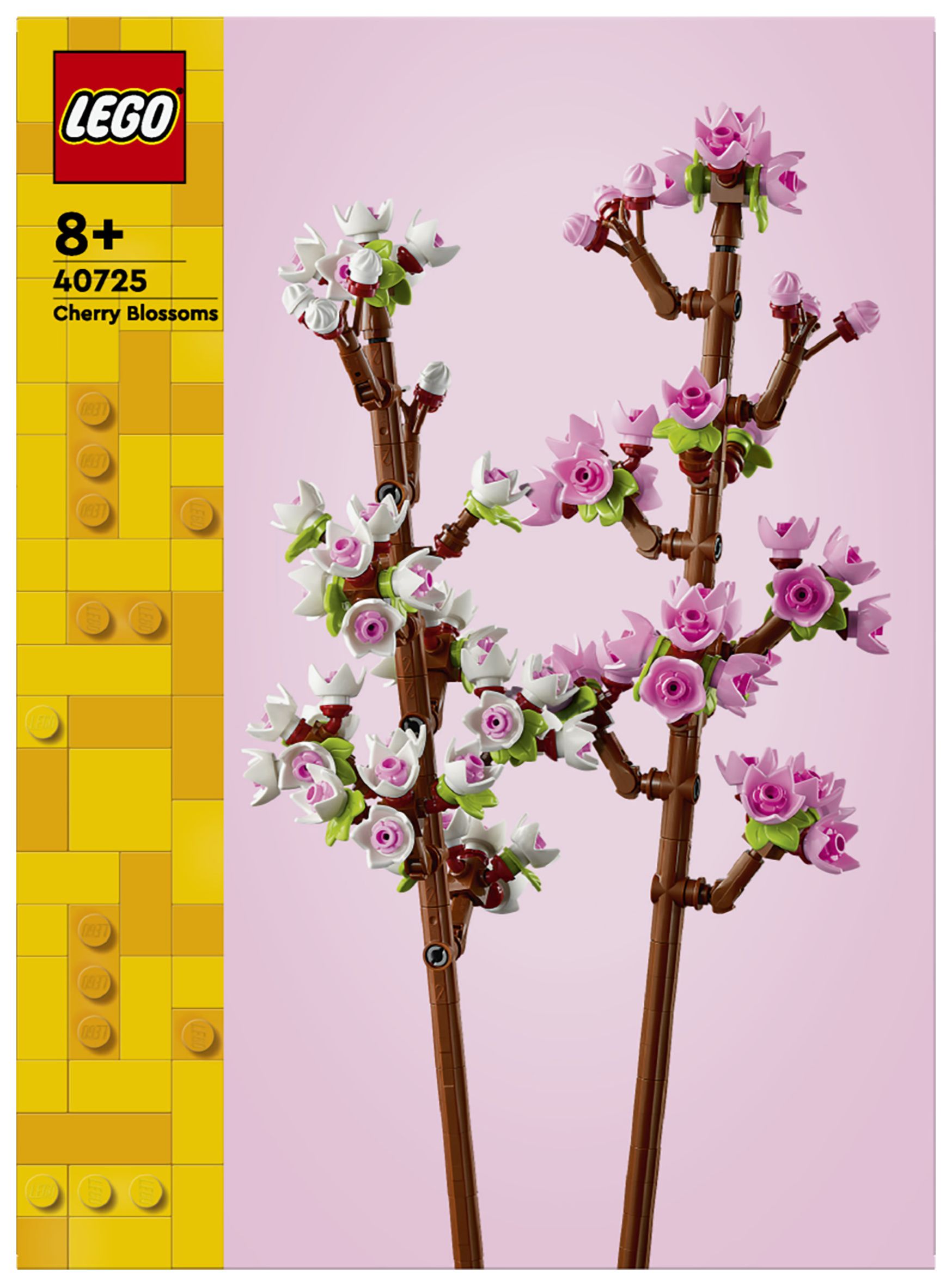 Feiere Neuanfänge oder läute den Frühling mit den Kirschblüten (40725) ein. Das Set ist ein tolles Geschenk zu feierlichen Anlässen für junge Floristinnen und Floristen und Naturfreunde ab 8 Jahren. Das Set beinhaltet 2 blühende Kirschblütenzweige, die mit zarten pinken und weißen Knospen verziert werden können, und inspiriert Blumenliebhaber dazu, eigene LEGO Blüten zu erschaffen.