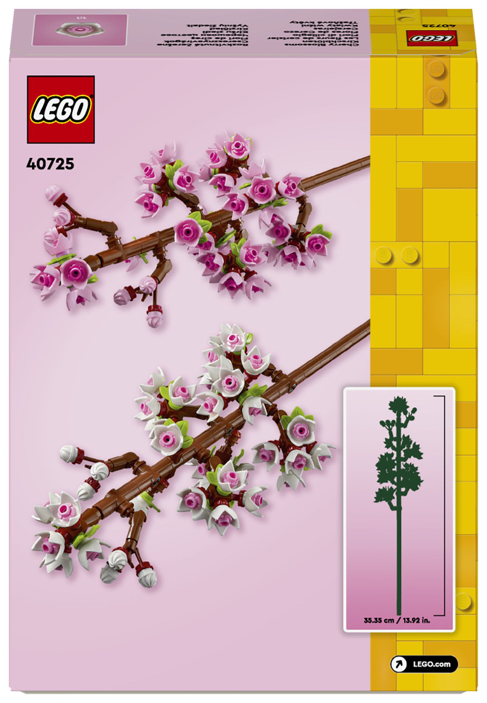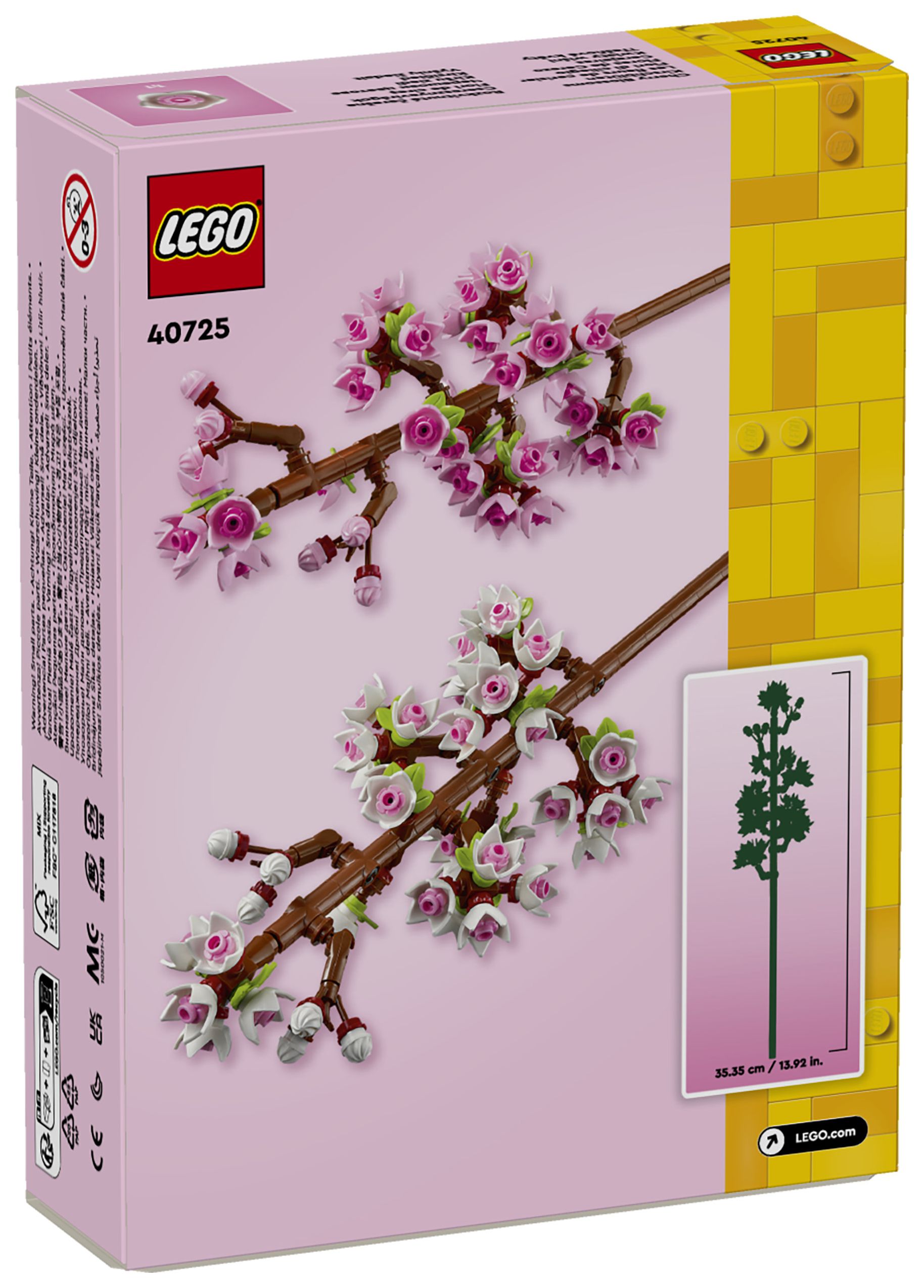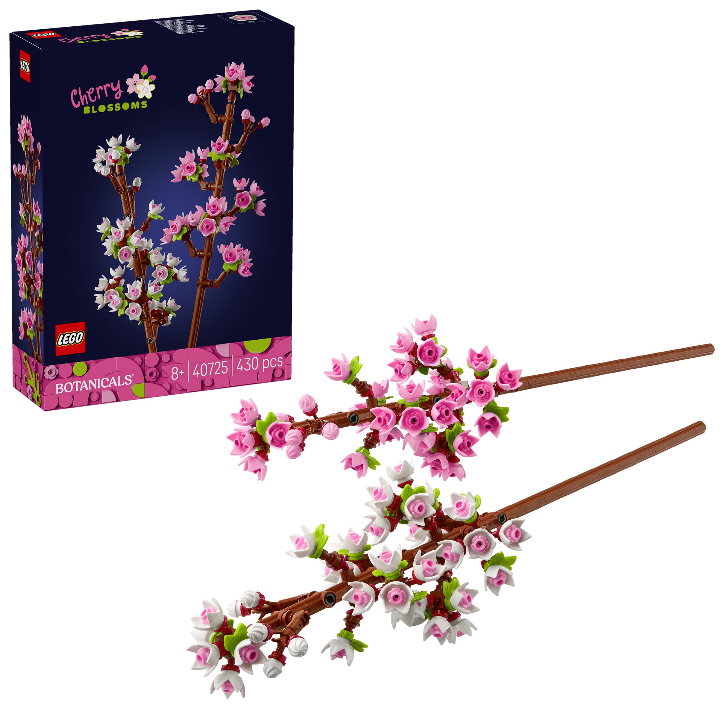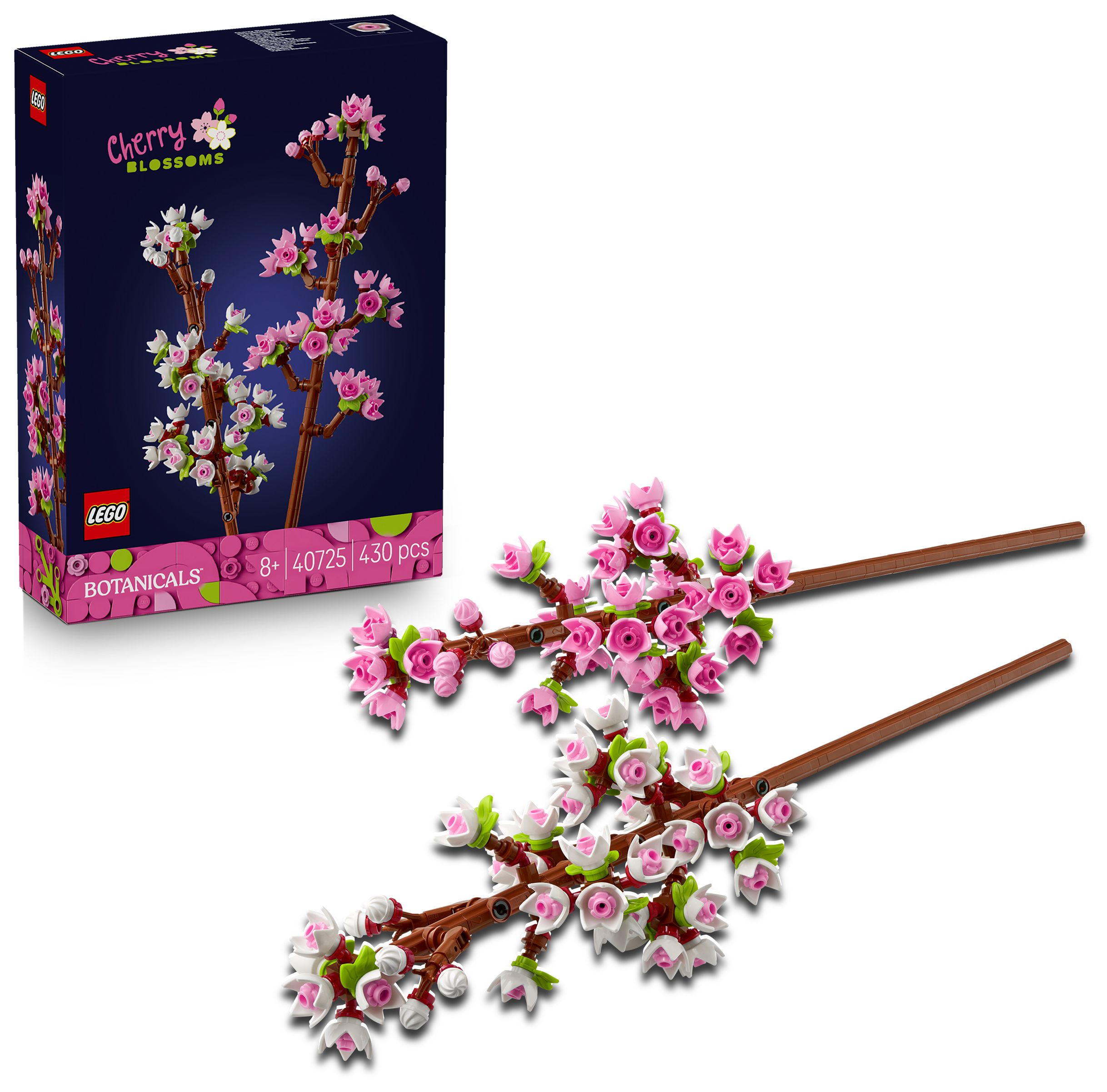 Feiere Neuanfänge oder läute den Frühling mit den Kirschblüten (40725) ein. Das Set ist ein tolles Geschenk zu feierlichen Anlässen für junge Floristinnen und Floristen und Naturfreunde ab 8 Jahren. Das Set beinhaltet 2 blühende Kirschblütenzweige, die mit zarten pinken und weißen Knospen verziert werden können, und inspiriert Blumenliebhaber dazu, eigene LEGO Blüten zu erschaffen.