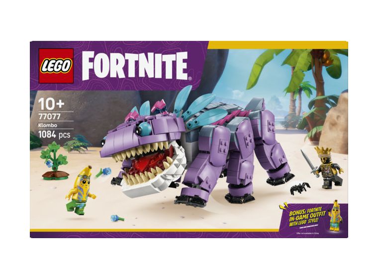 LEGO® Fortnite® Klombo (77077) ist ein Bauset für Kinder ab 10 Jahren. Fans und Gamer können den legendären LEGO Fortnite Charakter bauen und sich mit dem Monster anfreunden.