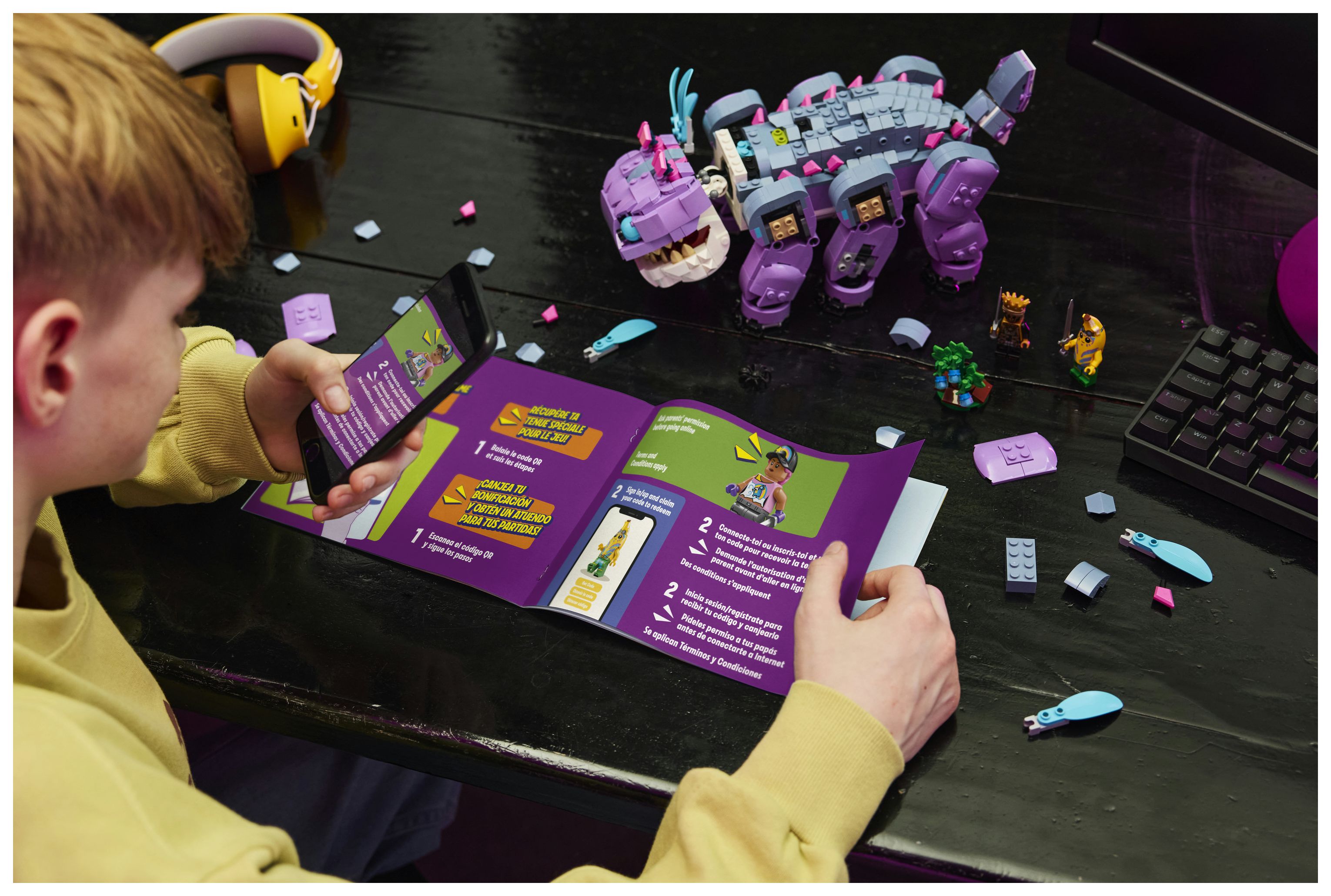 In-Game-Bonus: Als Bonus für das Videospiel LEGO® Fortnite® beinhaltet das Set ein Inselabenteuer-Schali-Outfit, das die Baumeister freischalten können, indem sie den QR-Code auf der Bauanleitung scannen