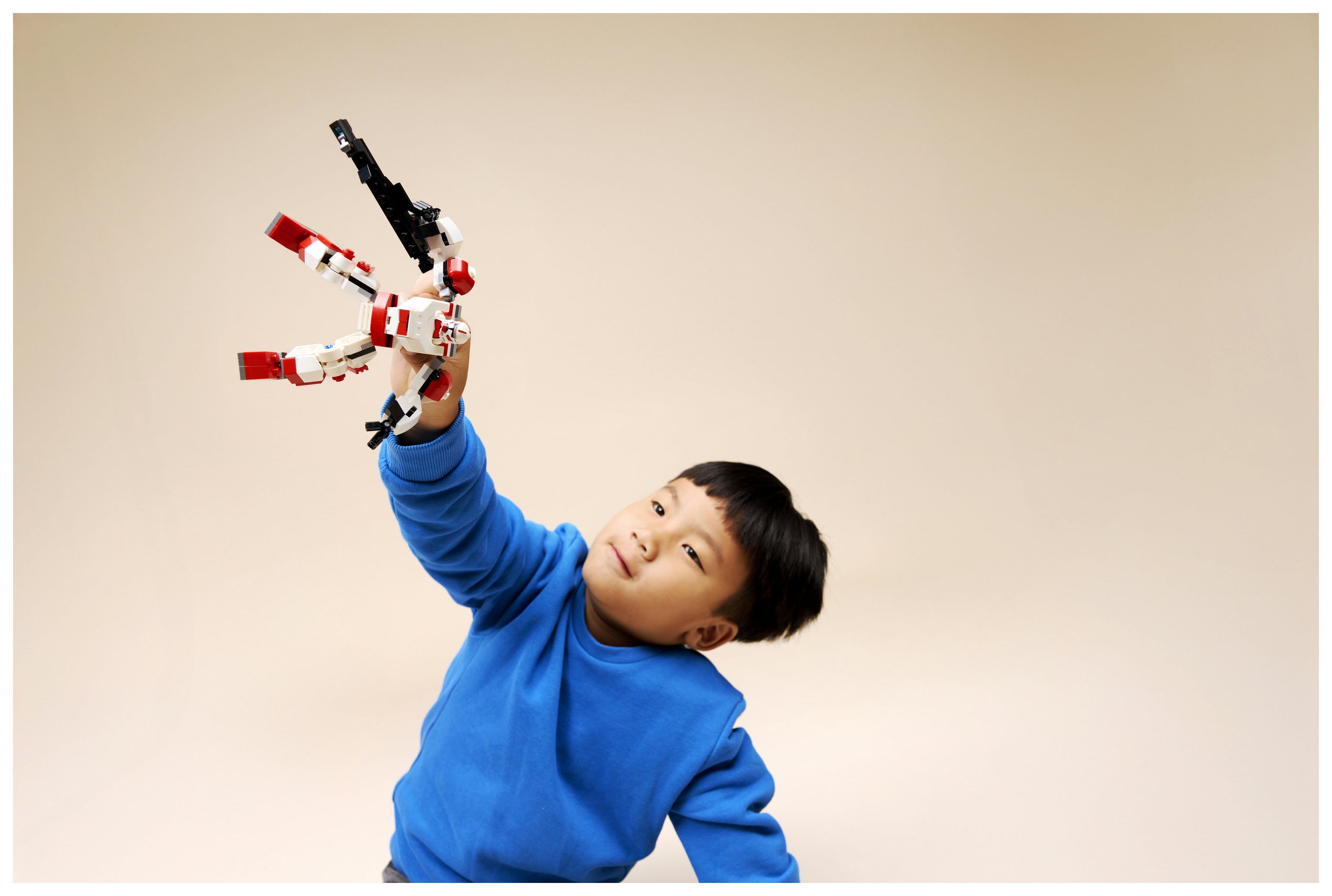 FIGUR ZUM SPIELEN UND AUSSTELLEN: Nimm Angreifer mit gewaltigen Blastergewehr ins Visier und bring die Hände, Arme, Beine und Füße in starke Actionposen, um den Mech nach dem Spielen in deinem Zimmer auszustellen