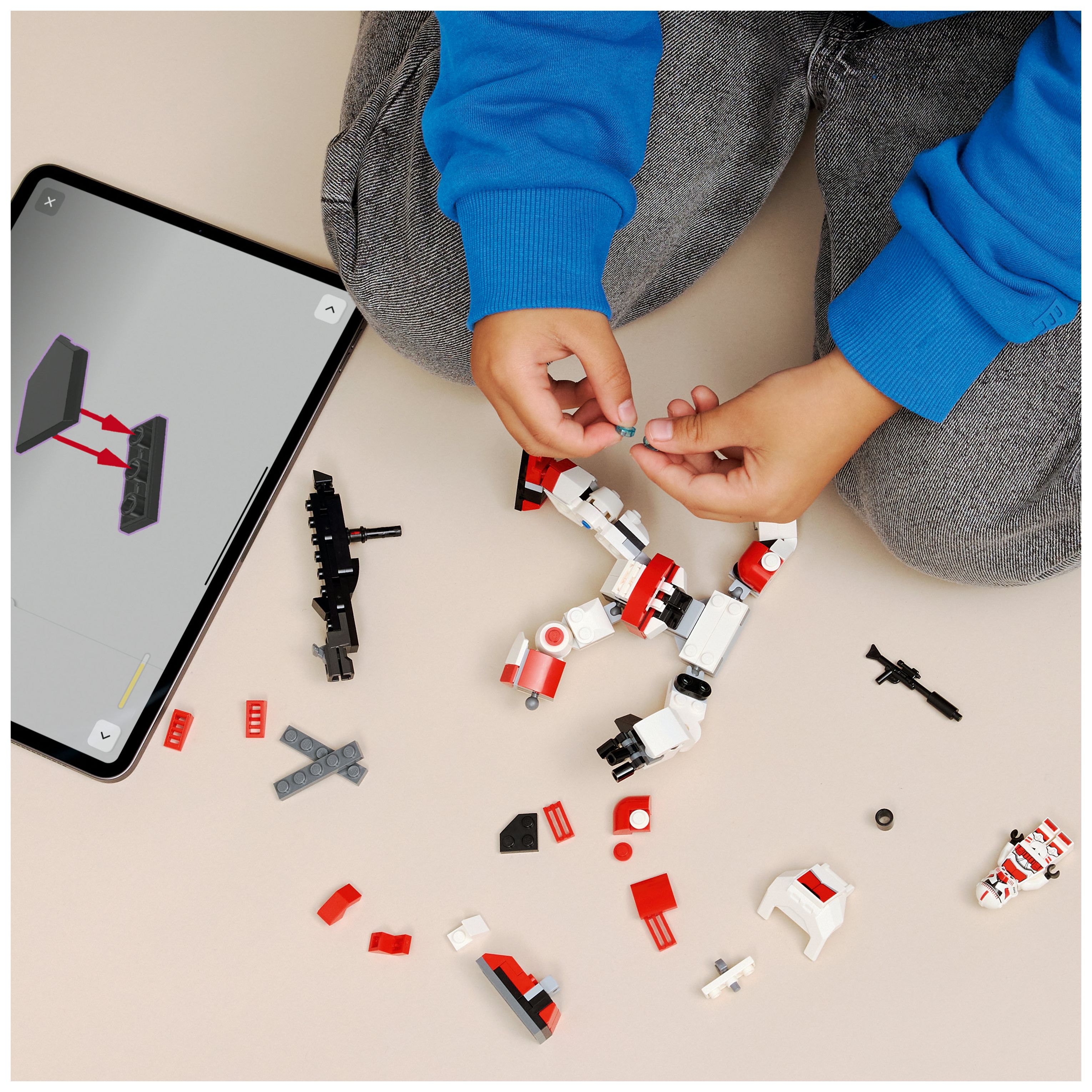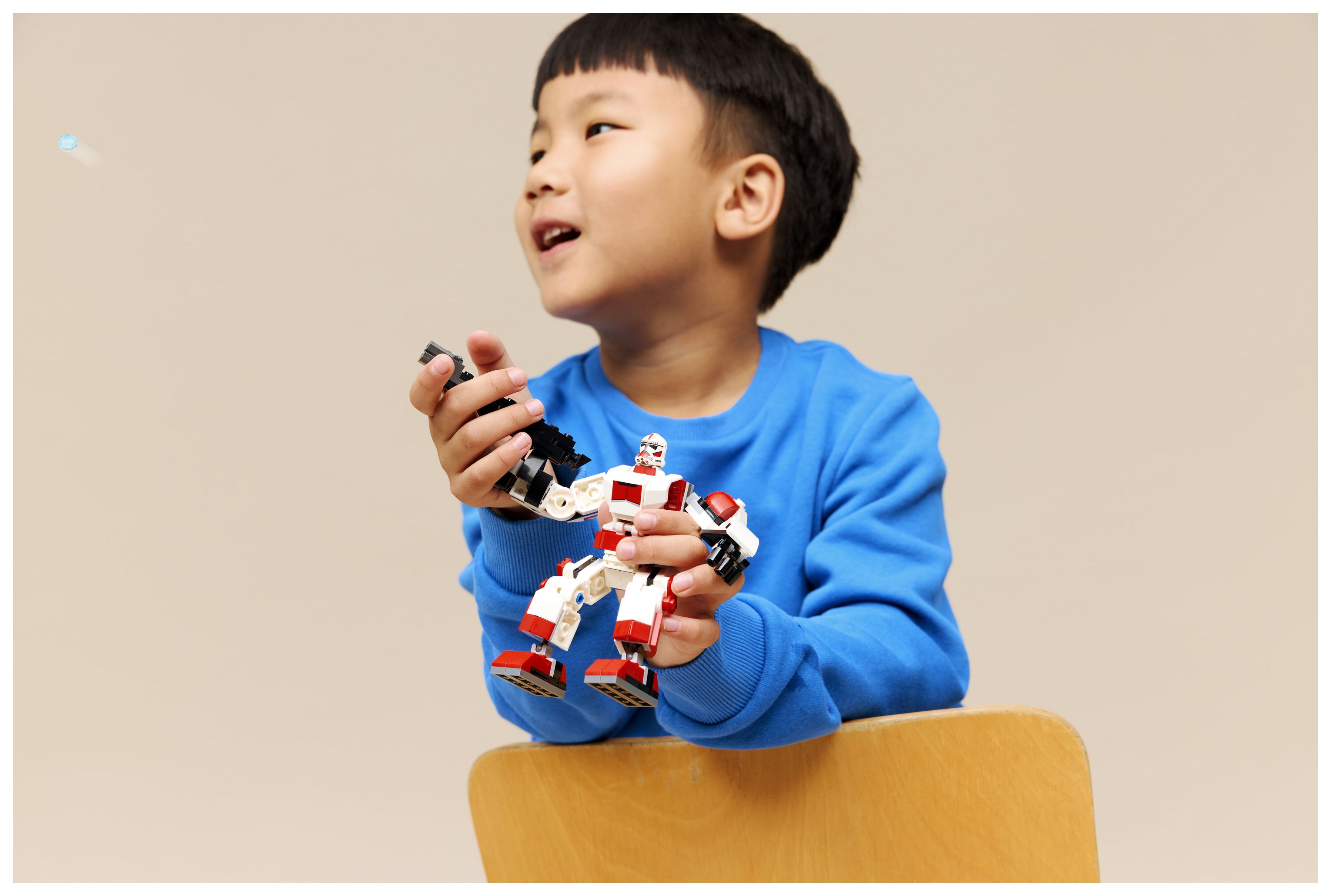 BAUSET MIT SPIELZEUG-MECH: Der Klon-Schocktruppen Mech (75448) lässt sich leicht zusammenstecken, damit Kinder sofort mit der beweglichen Actionfigur spielen und das LEGO® Star Wars™ Universum entdecken können