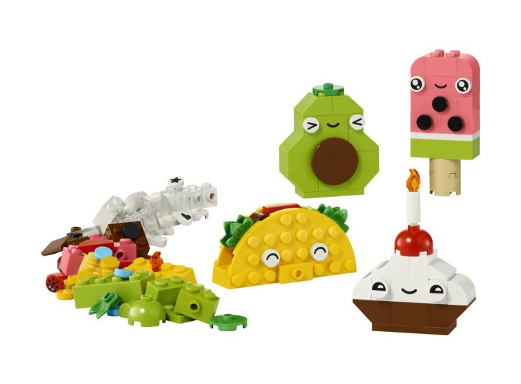 Kinder benutzen das faszinierende Sortiment an farbenfrohen Bausteinen und speziellen Teilen wie Augen, Mündern und diversen Zierelementen, um 4 niedliche essbare Freunde zu erschaffen: einen Cupcake, ein Eis am Stiel, eine Avocado und einen Taco! Kinder können diese Modelle aber auch zu einem Kuchen mit Streuseln, einem Bubble Tea, einer Birne und Panini neu zusammensetzen. Und wenn sich dein Kind noch mehr zutraut, kann es der intuitiven Bauanleitung folgen und die Gesichtsausdrücke, Formen und Farben verändern. Oder dein Kind erschafft grünes Eis, einen Saftkarton, ein Stück Wassermelone, einen Schokoriegel und ein Mega-Sandwich.