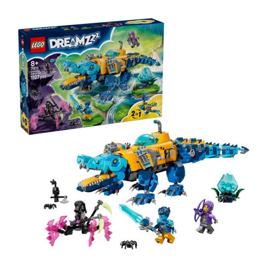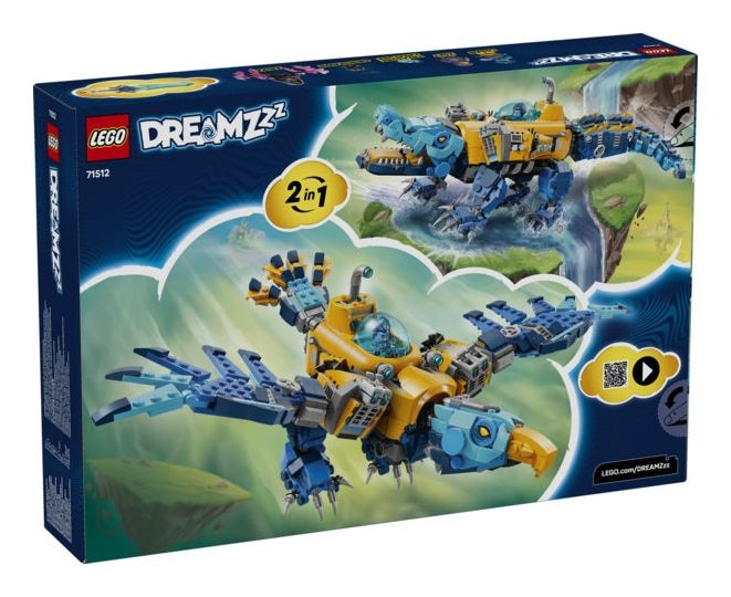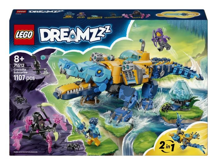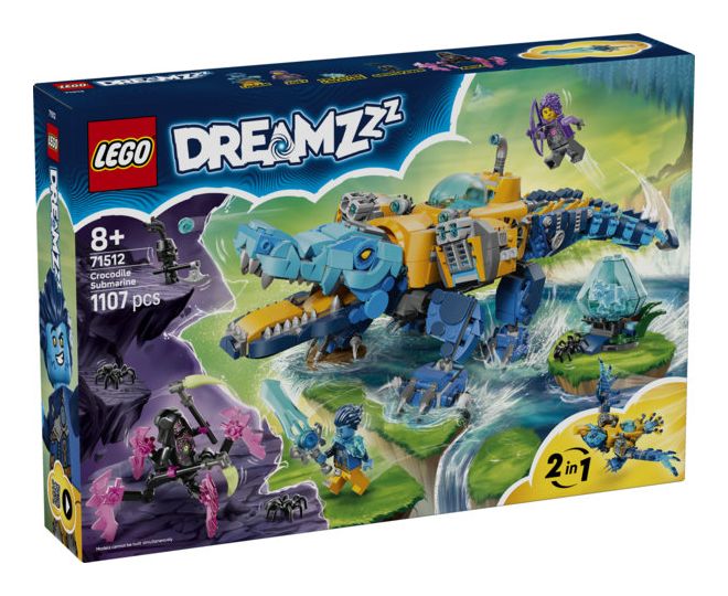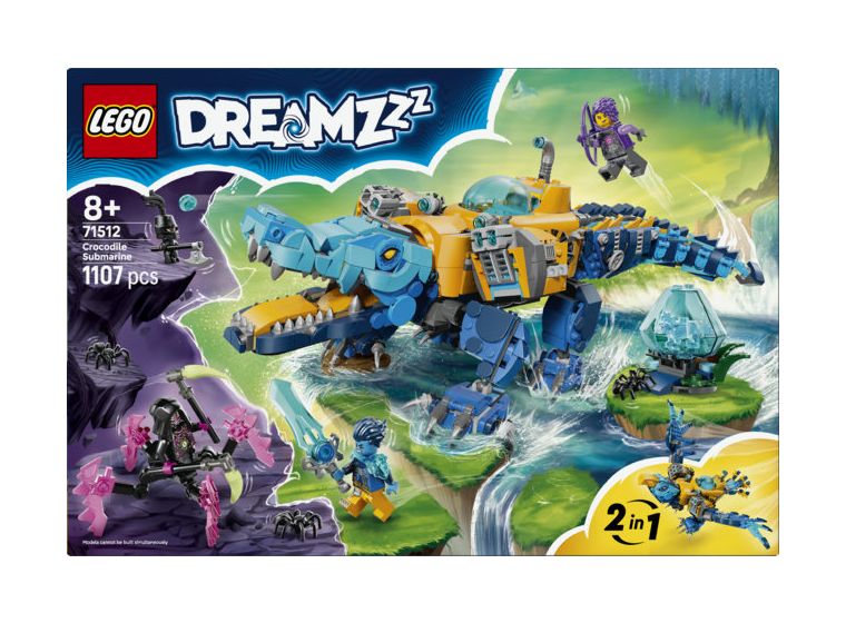 Das LEGO® DREAMZzz™ Krokodil-U-Boot (71512) lässt Kinder ab 8 Jahren besonders kreativ bauen und spielen. Das Bauset bietet 2 faszinierende Bauoptionen für jede Menge Actionspaß. Junge Träumer können das Krokodil-U-Boot auch in einen fliegenden Spielzeug-Adler umbauen.
