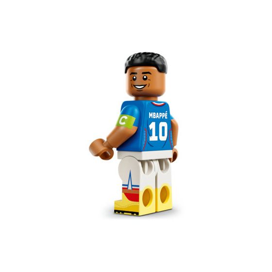 LEGO® FUSSBALLSPIELER-MINIFIGUR: Eine Minifigur stellt Kylian Mbappé beim Torschuss dar und erweckt das Modell zum Leben. Einige Easter Eggs würdigen seinen Lebensweg und seine Karriere