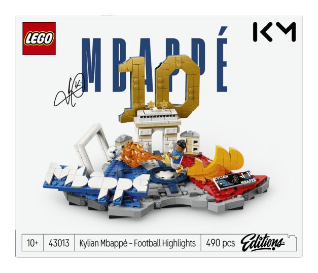 LEGO® Editions Kylian Mbappé – Fußball-Highlights (43013) ist ein Bauset, das Kinder und Sportfans ab 10 Jahren einen der größten Stars der französischen Fußballnationalmannschaft feiern lässt.
