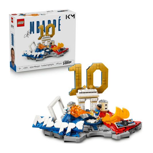 Fußballfans werden sich selbst wie Champions fühlen, wenn sie dieses Sammlerstück zusammenstecken. Das Fundament hat die Form von Kylian Mbappés Initialen, die Farben seiner französischen Nationalmannschaft und trägt eine große 10, seine Trikotnummer. Zu dem Mbappé-Fanartikel gehört auch eine Sammelplakette mit seiner Unterschrift und seinen Spielerstatistiken sowie eine Minifigur, die Mbappé beim Torschuss darstellt. Wenn die fantastische Fußball-Deko fertig ist, werden Fans das Modell gerne in ihrem Zimmer ausstellen.