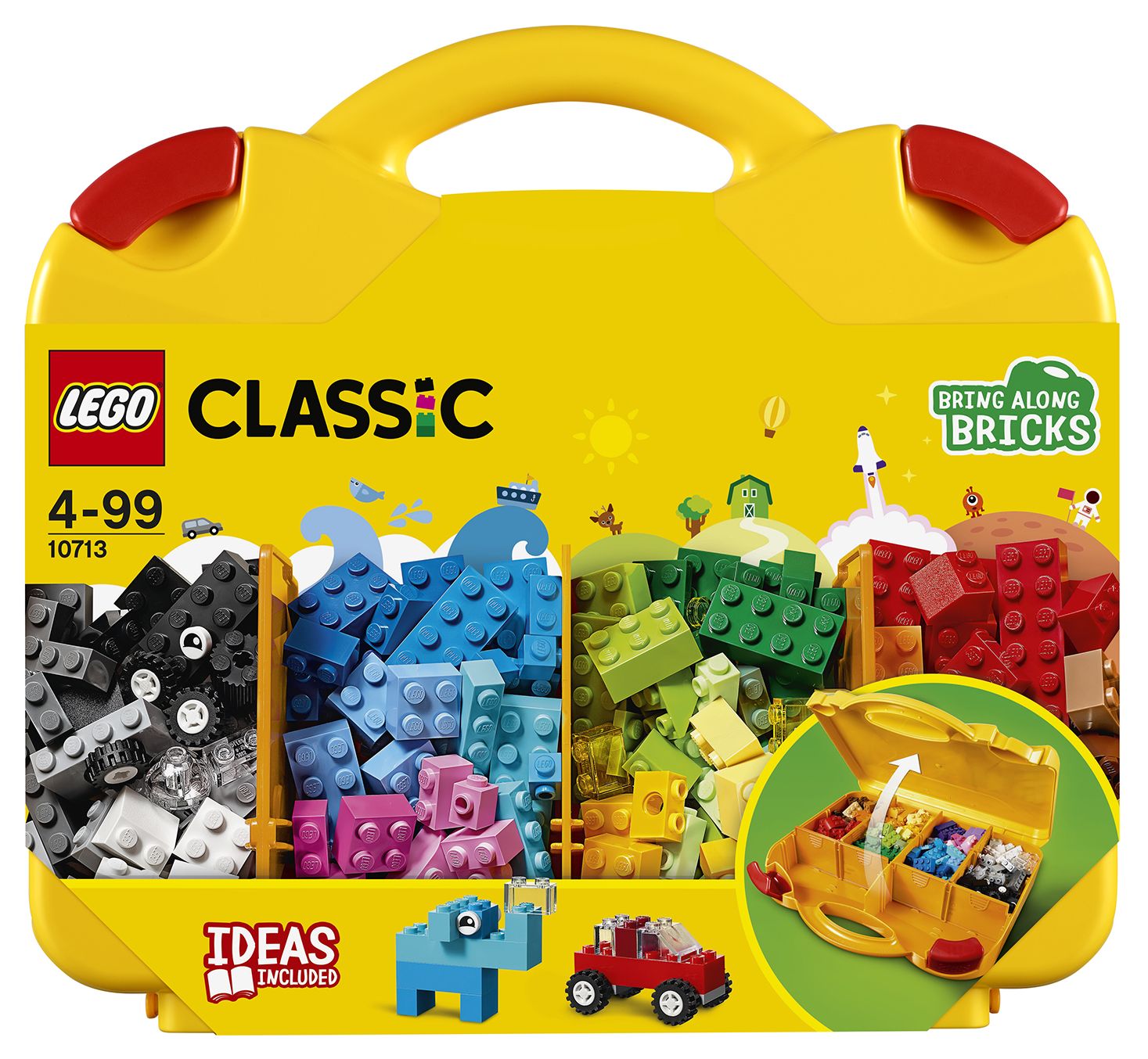 Mit dem praktischen Bausteine-Starterkoffer (10713) von LEGO Classic können Kinder ab 4 Jahren kreativ bauen, spielen und ihr Spielzeug ordentlich verstauen. Der Koffer enthält eine vielfältige Auswahl an bunten LEGO-Bausteinen, darunter Steine, Augen, Räder und Formen, mit denen sich alle möglichen Häuser, Fahrzeuge, Kreaturen und Kreationen bauen lassen. Im Inneren des gelben Koffers befinden sich mehrere Fächer, in denen kleine LEGO-Fans ihre Bausteine organisieren und aufbewahren können. Dieses Kinderspielzeug ab 4 Jahren enthält außerdem leicht verständliche, altersgerechte Bauanleitungen, die den Kindern dabei helfen, ihre kreativen Baufähigkeiten zu entdecken.