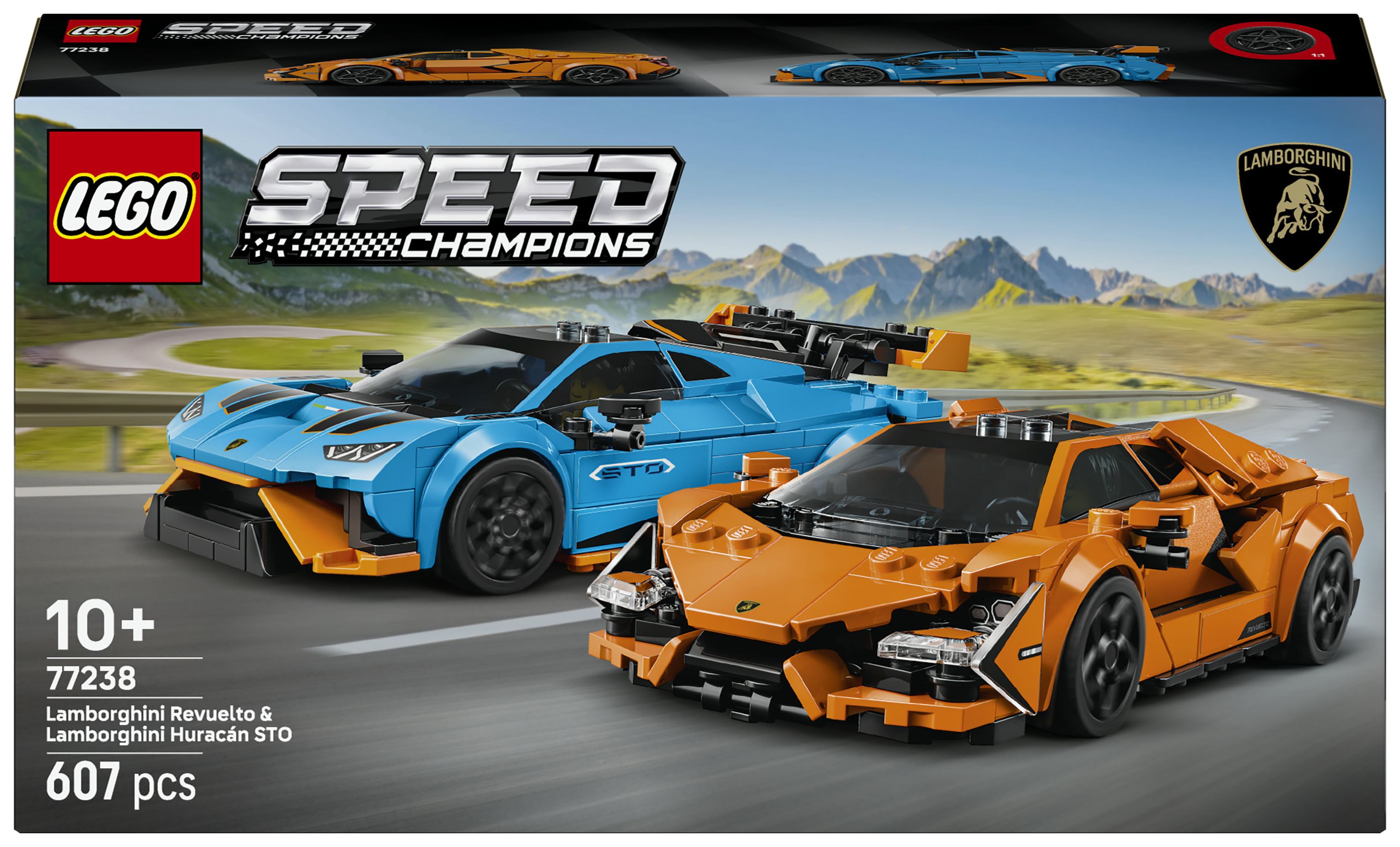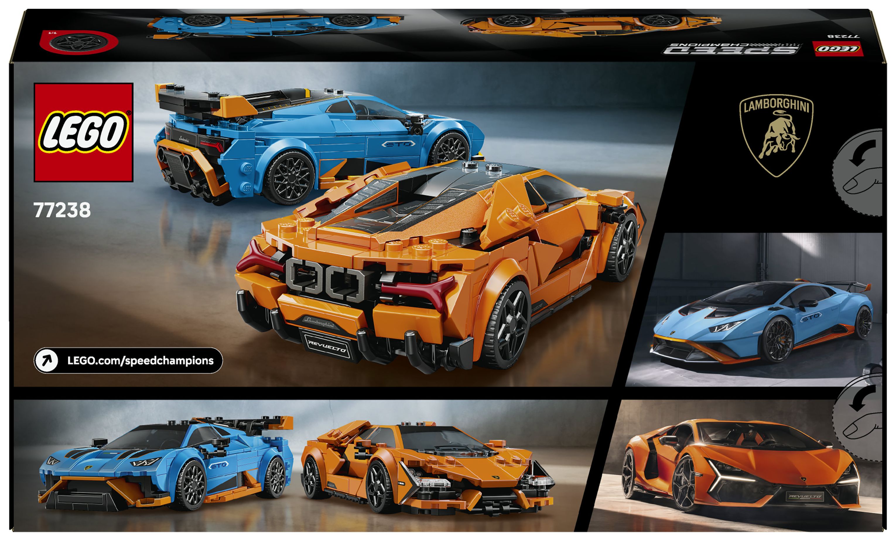 LEGO® Speed Champions Lamborghini Revuelto und Huracán STO (77238); Bau-und Spielset mit Spielzeugauto und 2 Rennfahrer-Minifiguren; kreatives Geschenk für Jungen und Mädchen