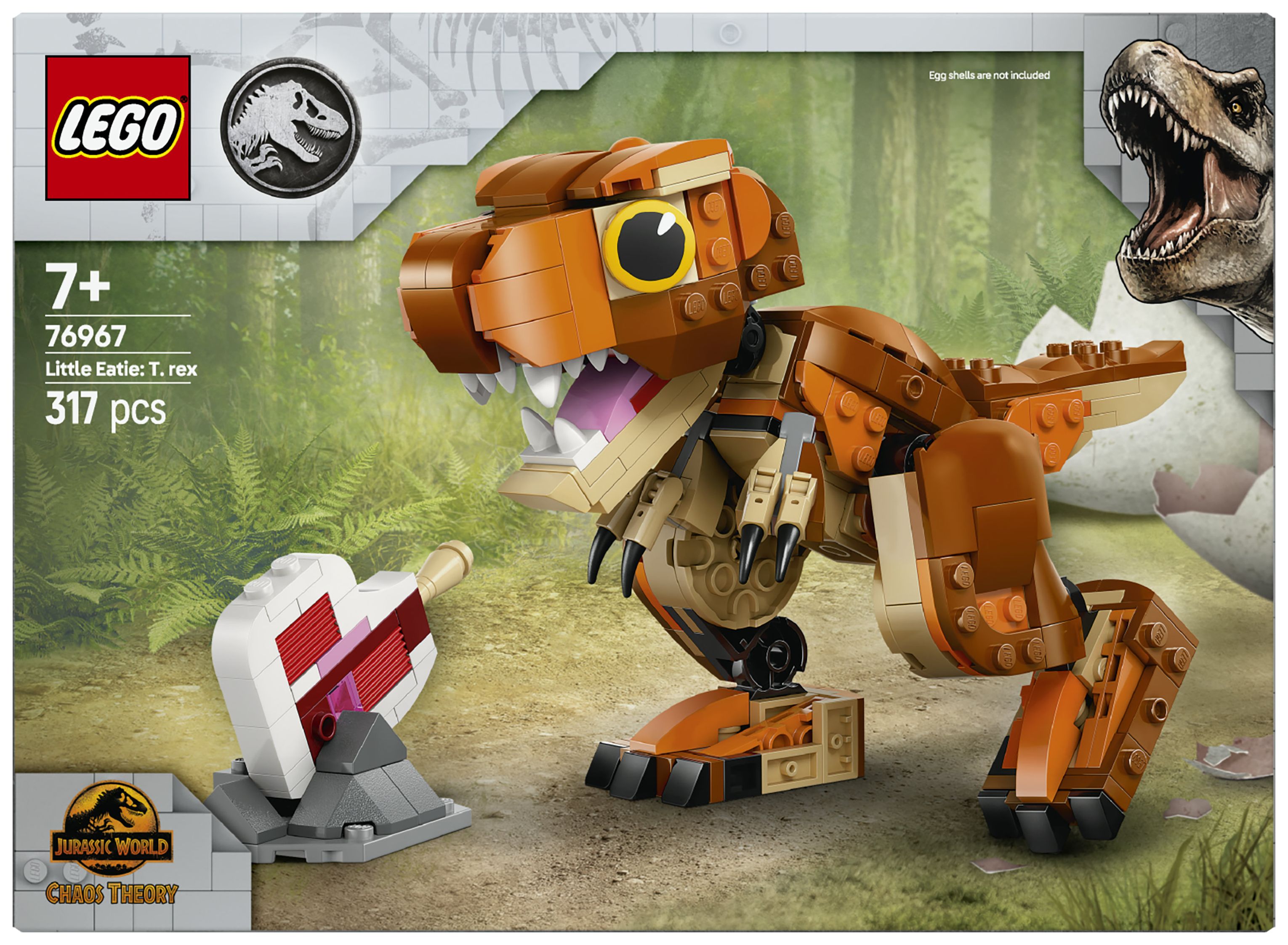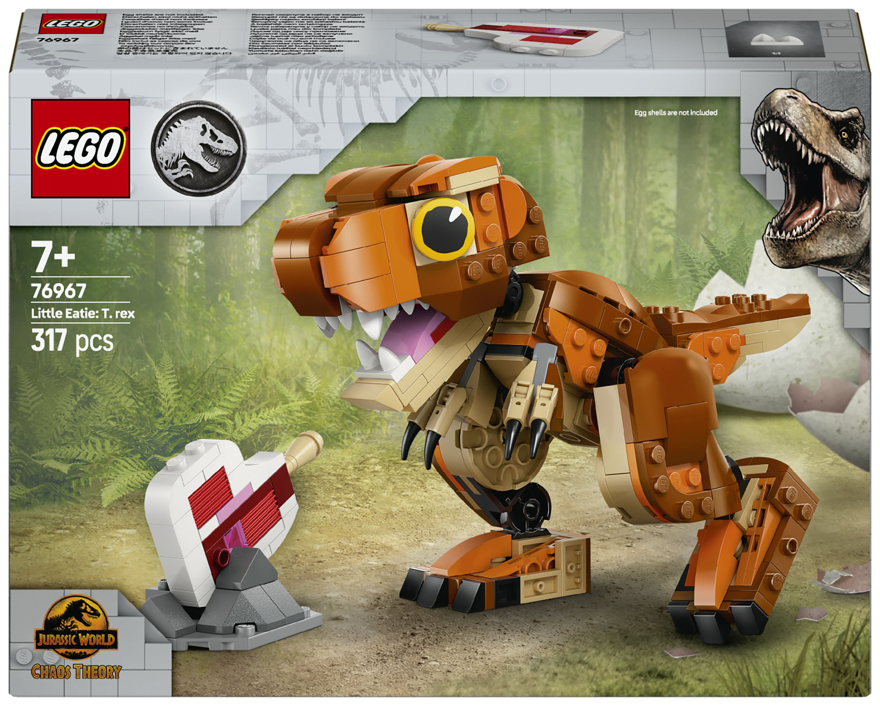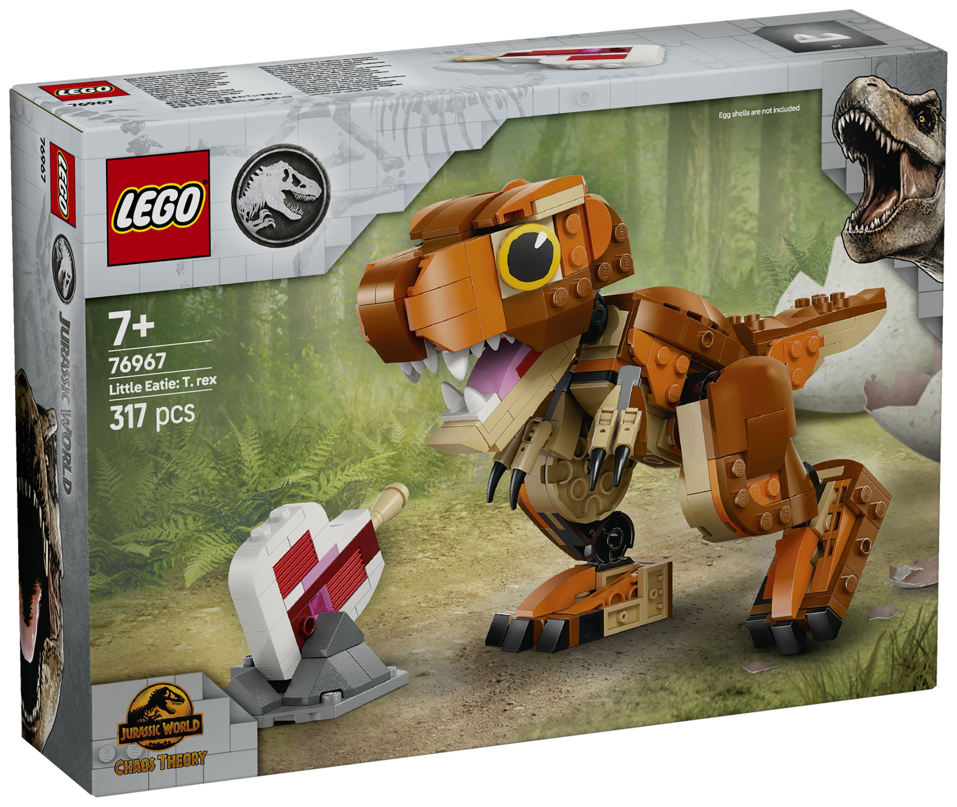 Little Eatie: T.Rex (76967) ist genau das richtige Set, um junge Dino-Fans ab 7 Jahren in spannende Abenteuer zu schicken und einen kleinen Dino umsorgen zu lassen. Dieser LEGO® Jurassic World Spielzeug-Dino bietet unzählige Spiel- und Ausstellungsmöglichkeiten. Nachdem junge Dino-Hüter die Figur aus diesem LEGO Bauset gebaut haben, können sie mit Little Eatie aus Jurassic World: Neue Abenteuer die Urzeitwelt erkunden. Dieses Spielset zum Film Jurassic World: Die Chaostheorie beinhaltet einen T.Rex aus LEGO Steinen mit interaktivem Knabbermaul, der auch seinen Schwanz und seine Gliedmaßen bewegen kann, um ihn in unterschiedliche Posen zu bringen. Nach dem Spielen kann der Spielzeug -Dino für Jungen und Mädchen auf einem Regal oder Schreibtisch ausgestellt werden.