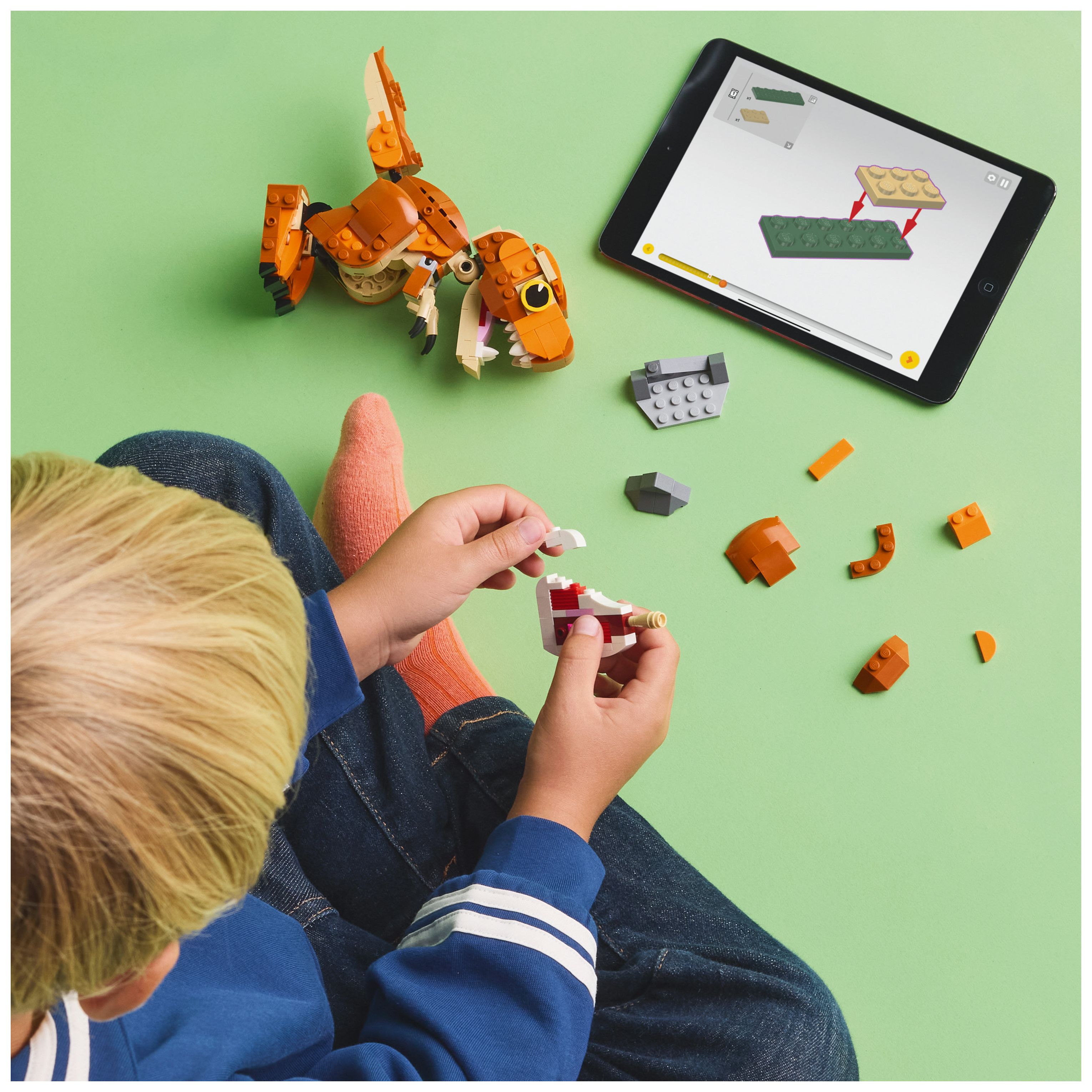 Beweglicher LEGO® Dinosaurier: Der Dino aus diesem Bauset zur Animationsserie Jurassic World: Die Chaostheorie kann sein Maul aufklappen und Kopf, Schwanz, Arme und Beine bewegen, um ihn in verschiedene Posen bringen zu können