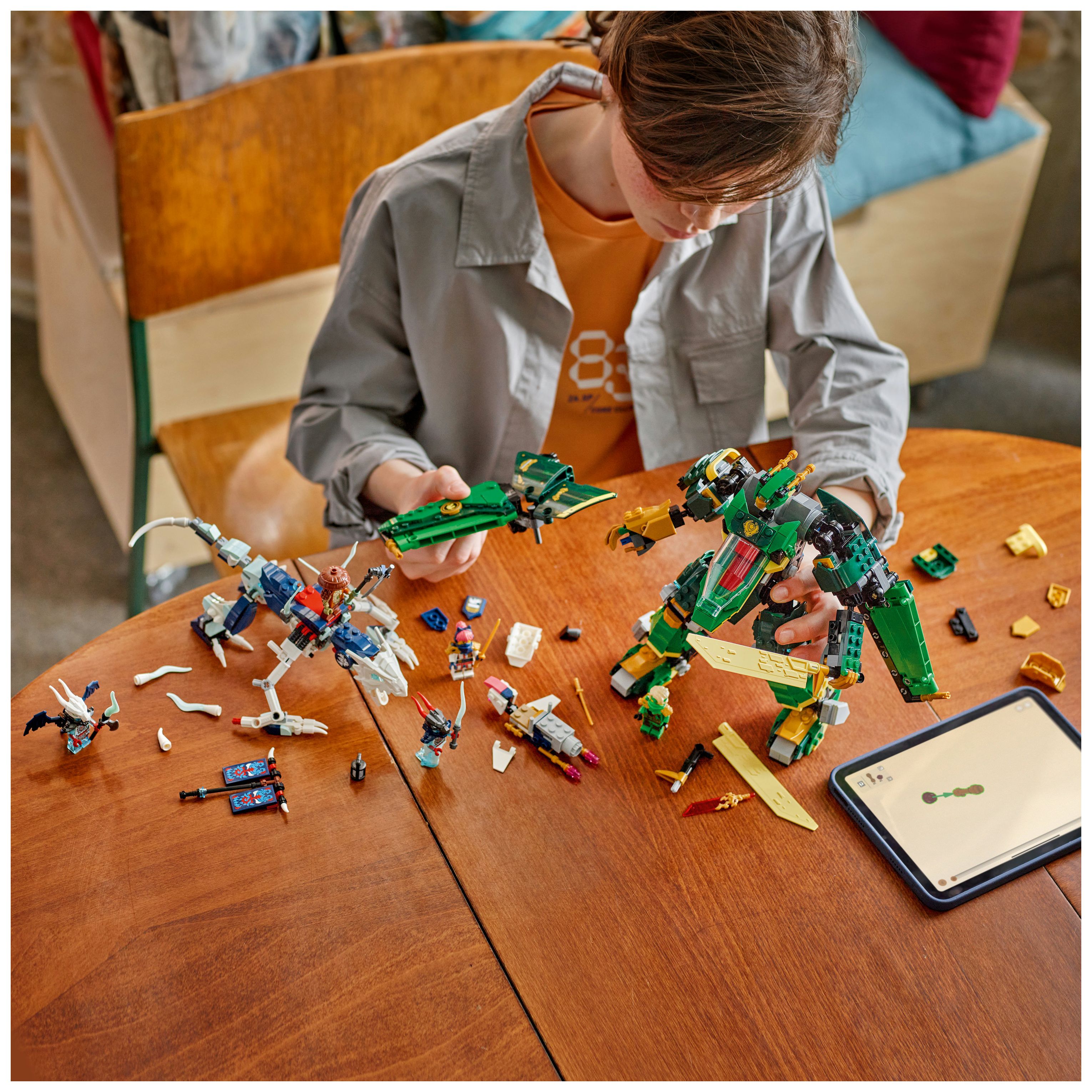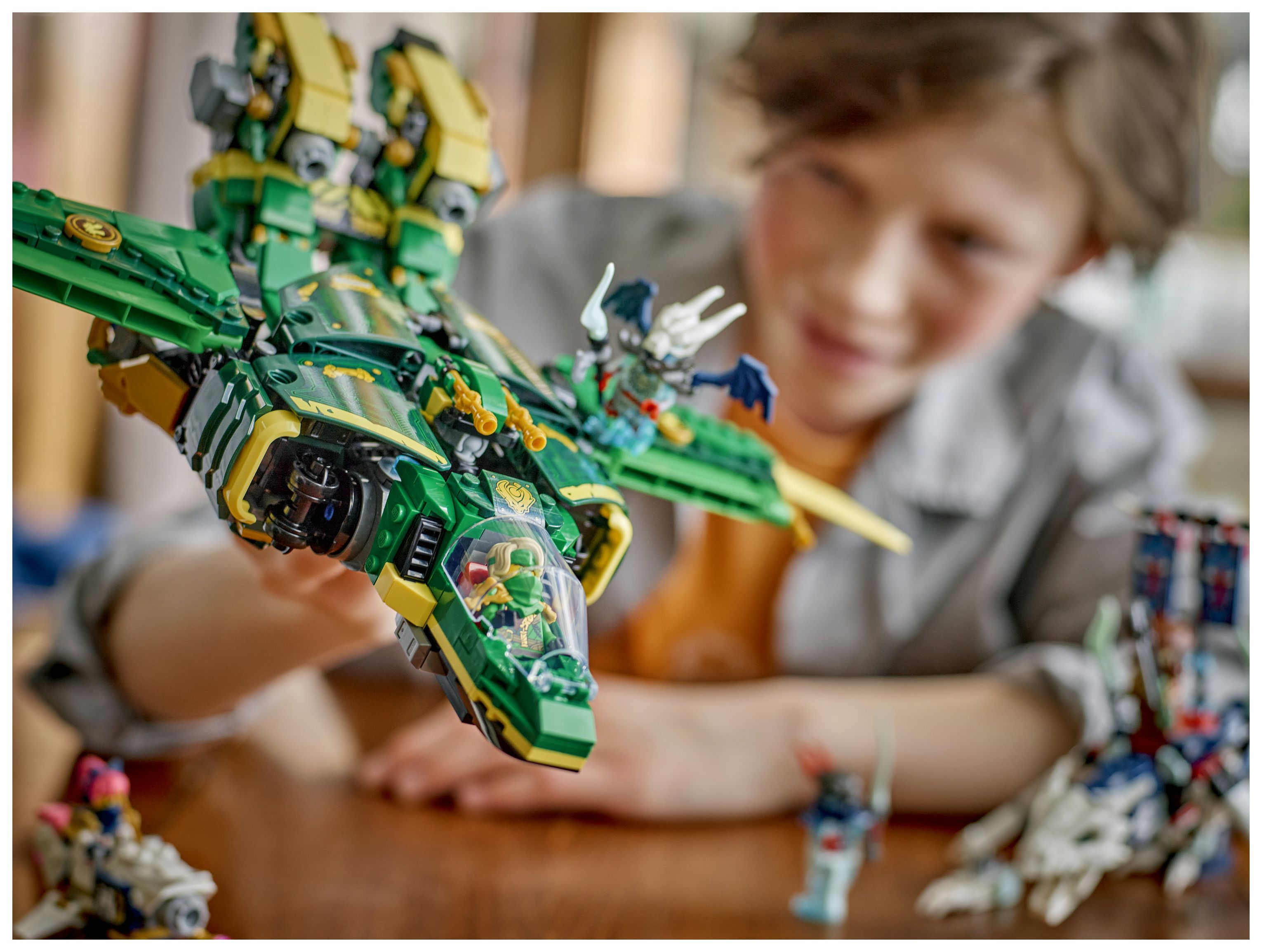 Ninja-Spielzeug für Kinder: Lloyds Jet-Mech lässt Jungen und Mädchen ab 9 Jahren packende Actionszenen aus der 3. Staffel der TV-Serie NINJAGO® Aufstieg der Drachen nachstellen
