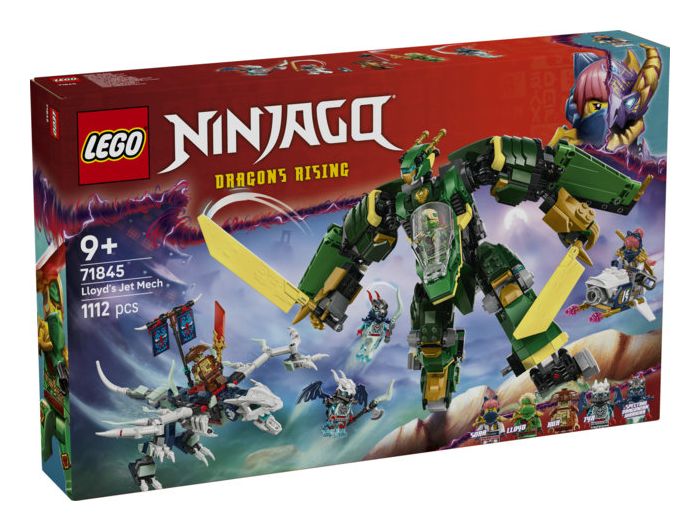Lloyds Jet-Mech (71845) aus diesem Bau- und Spielset lässt Jungen und Mädchen ab 9 Jahren die Actionszenen aus der 3. Staffel der TV-Serie NINJAGO® Aufstieg der Drachen nachstellen, spannende Ninja-Abenteuer erleben und Duelle austragen.