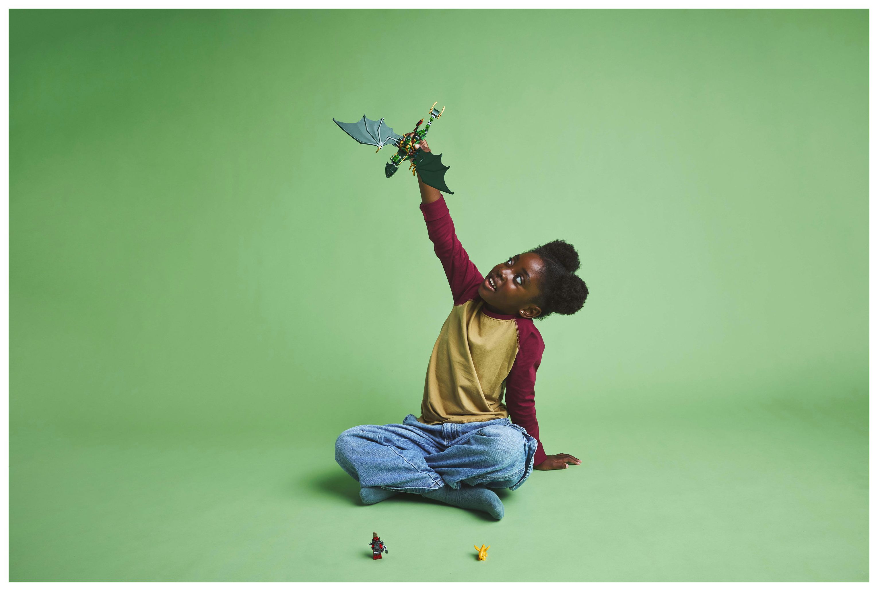 Abmessungen: Der bewegliche Drache aus diesem 128-teiligen LEGO® Bauset ist 10 cm groß, 24 cm lang und 33 cm breit