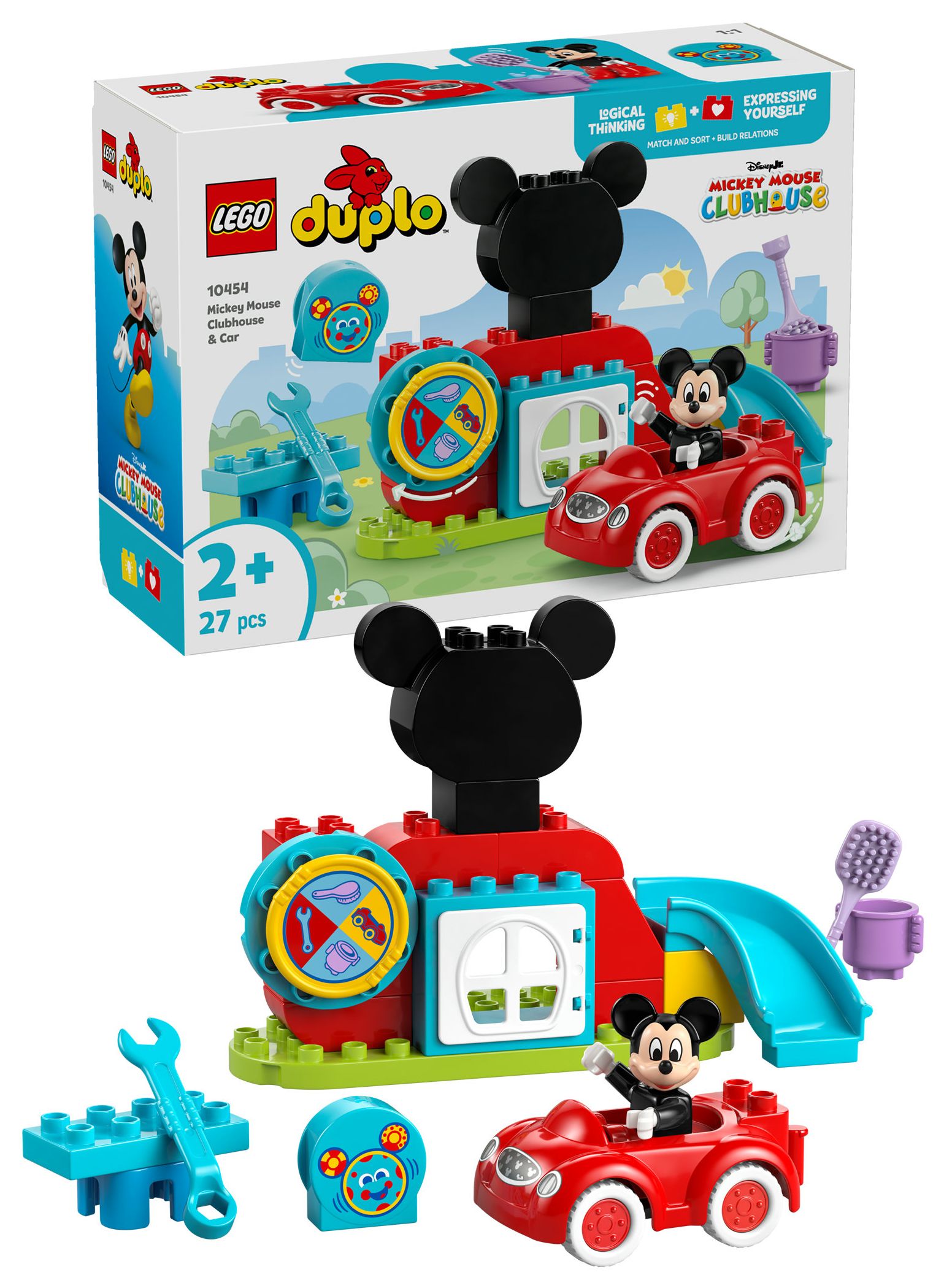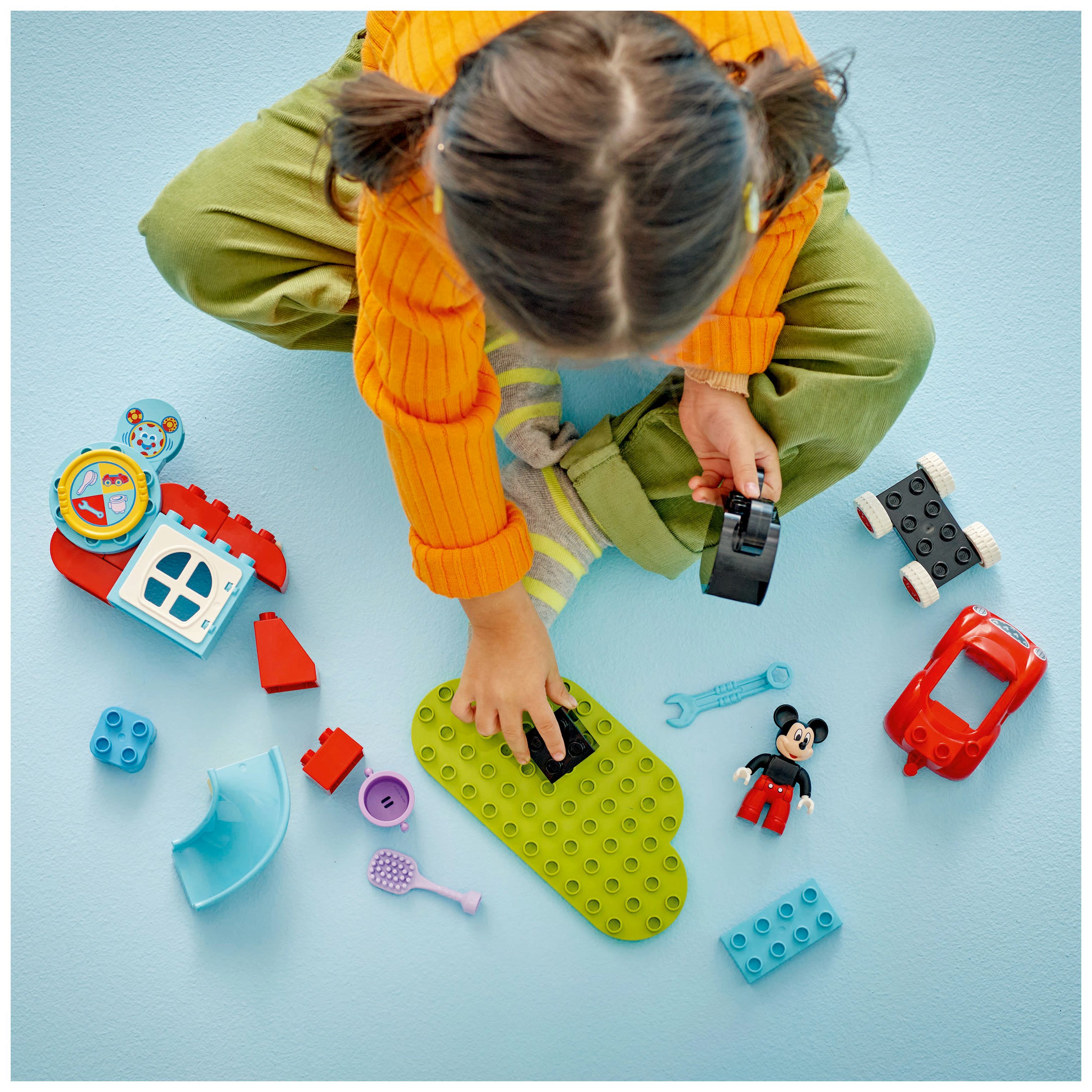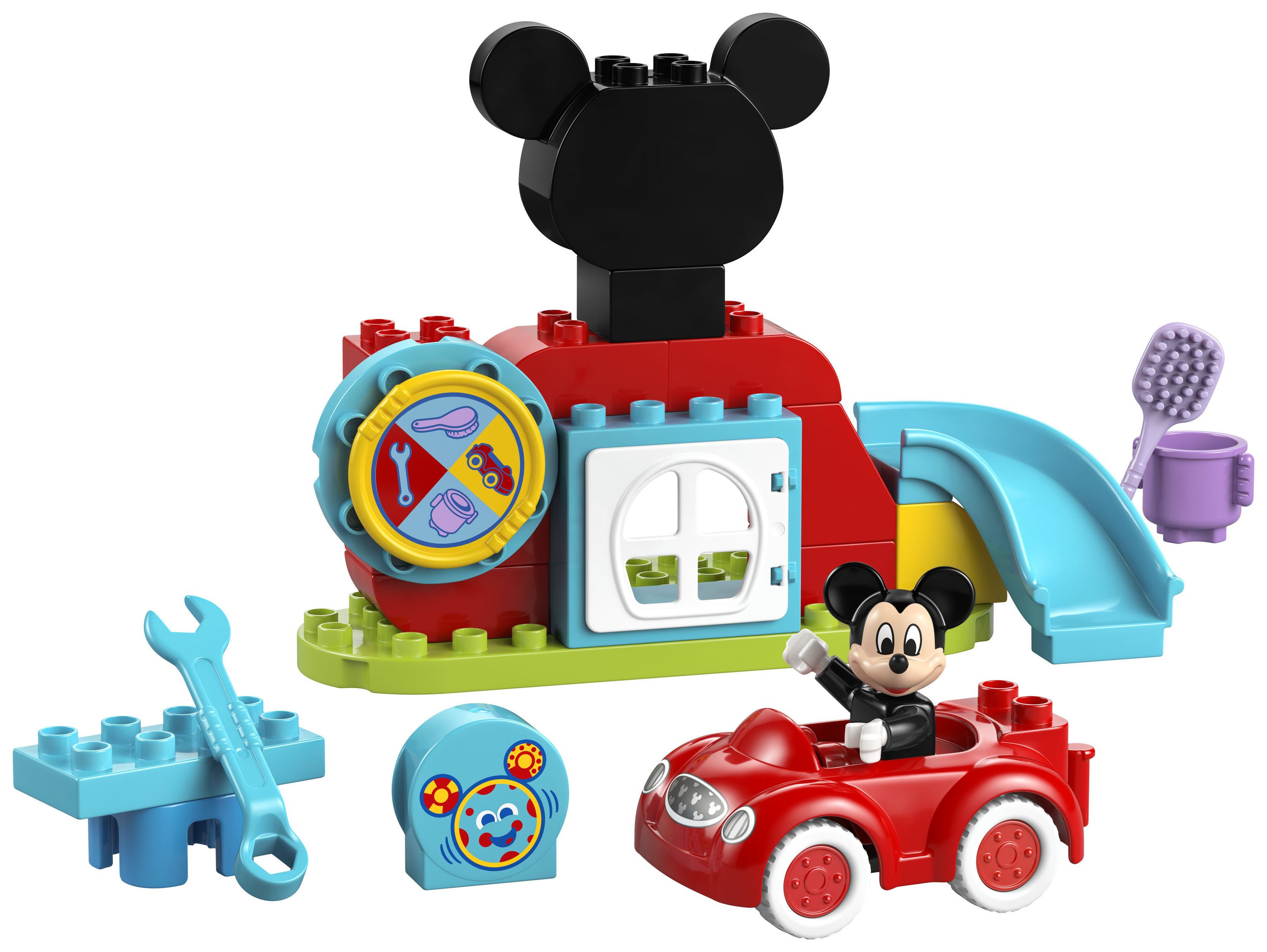 2 vertraute Figuren: Beinhaltet die LEGO® DUPLO® Figur Micky Maus und den Computer Toodles sowie Mickys geliebtes rotes Auto aus TV-SerieMicky Maus Wunderhaus auf Disney Junior.