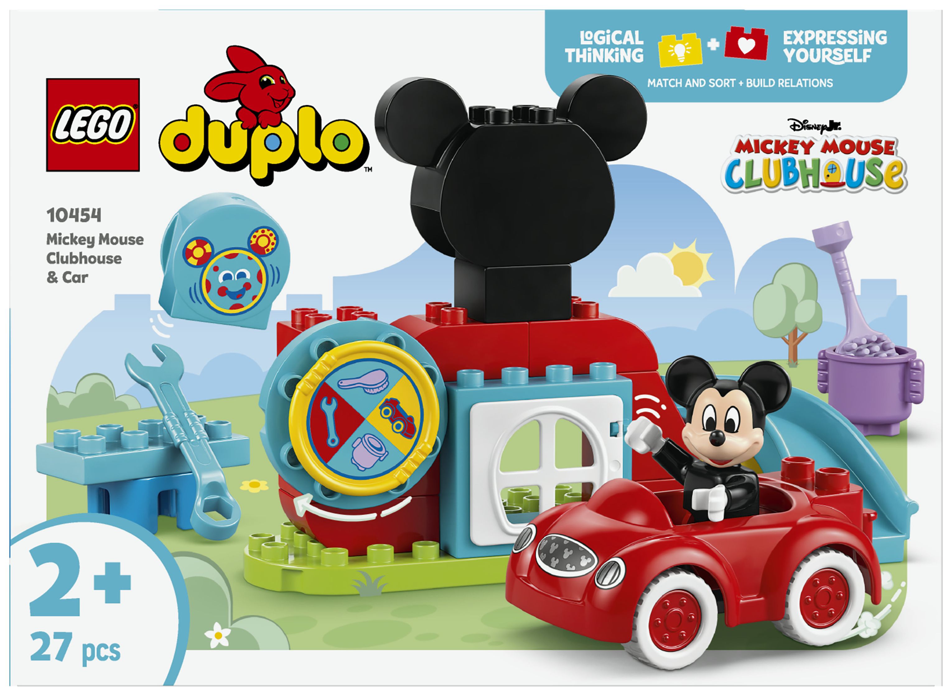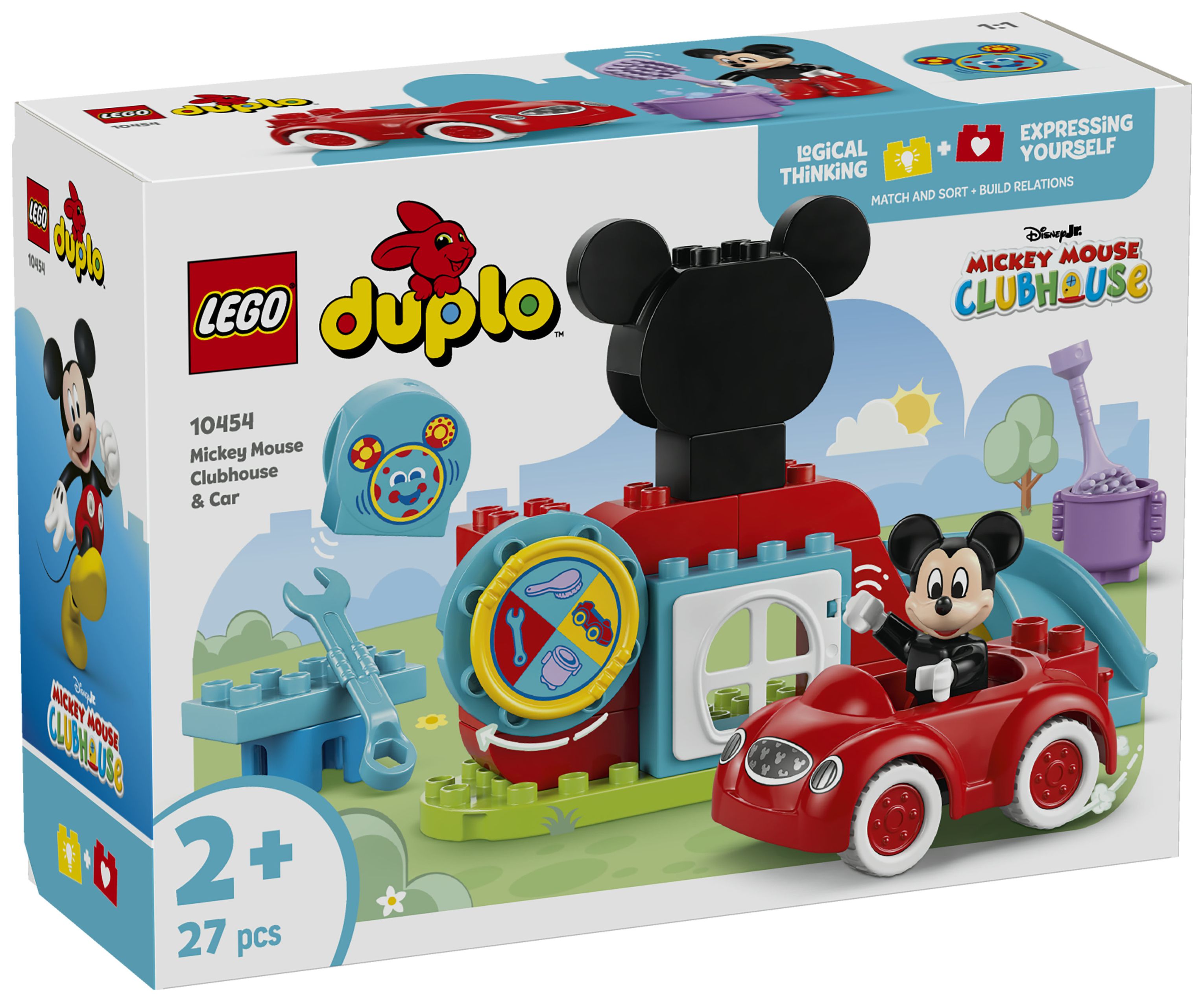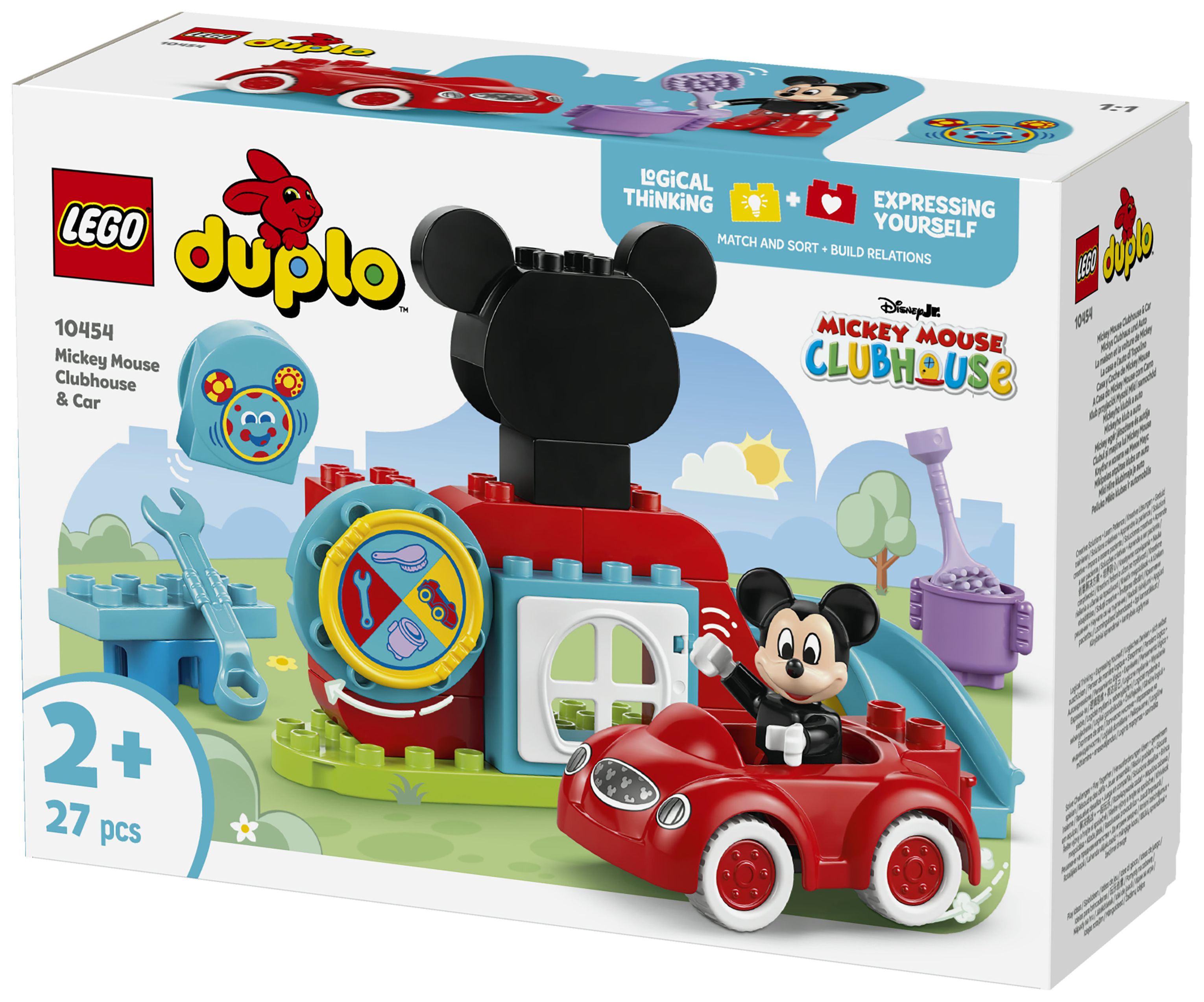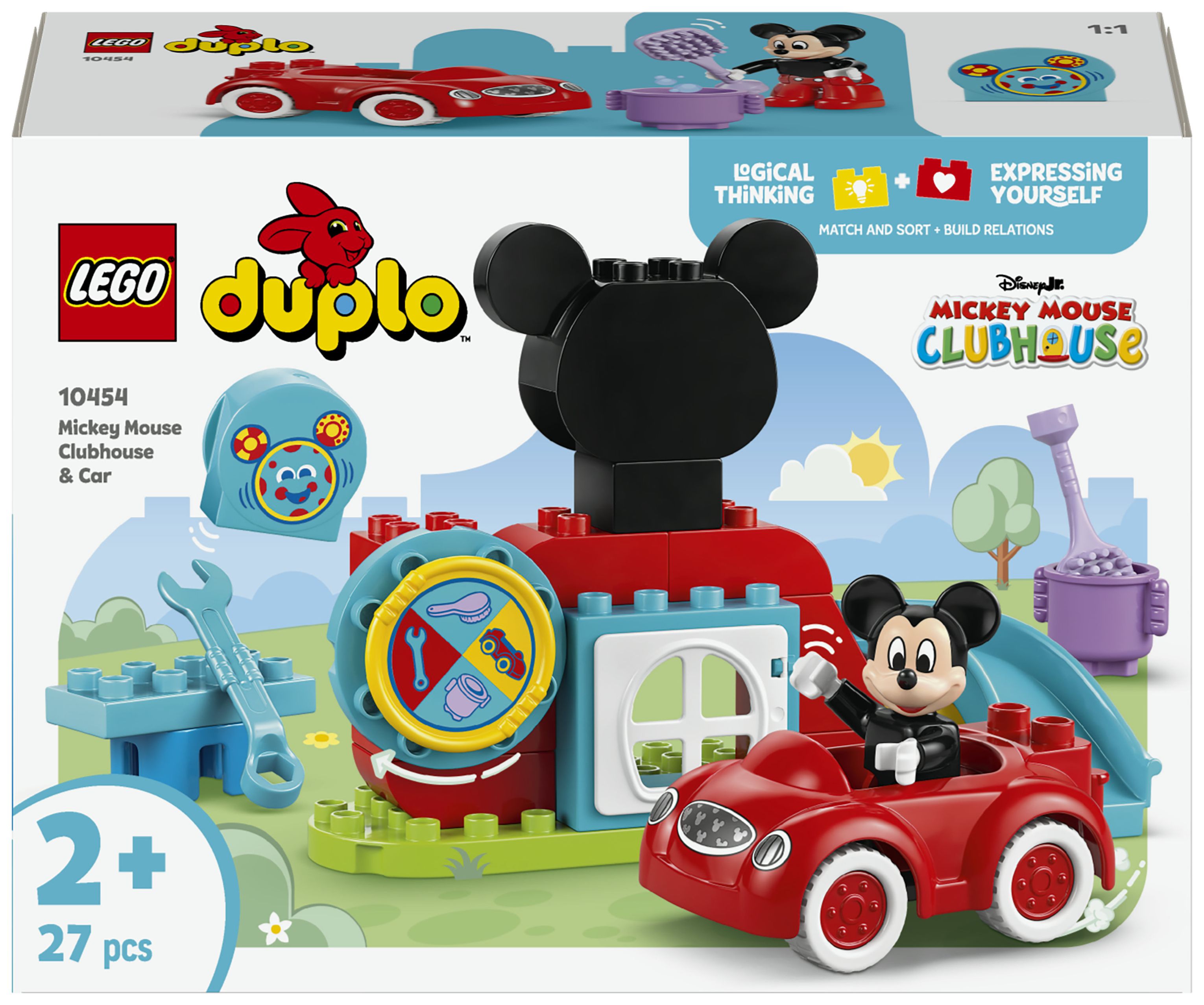 2 vertraute Figuren: Beinhaltet die LEGO® DUPLO® Figur Micky Maus und den Computer Toodles sowie Mickys geliebtes rotes Auto aus TV-SerieMicky Maus Wunderhaus auf Disney Junior.