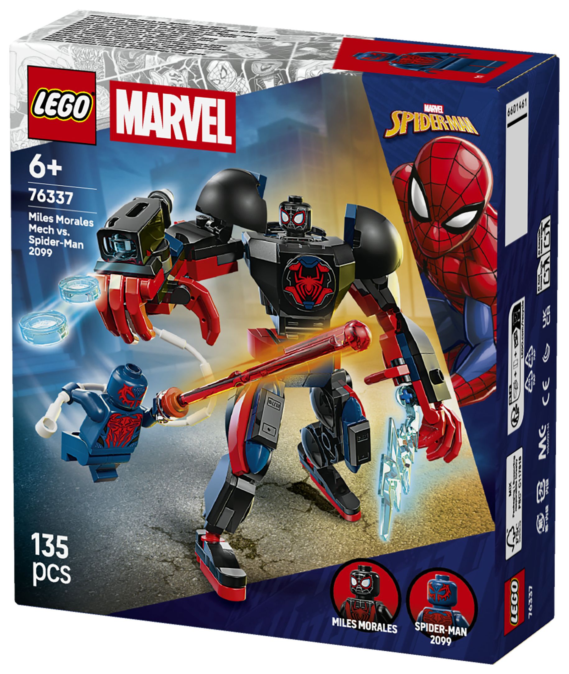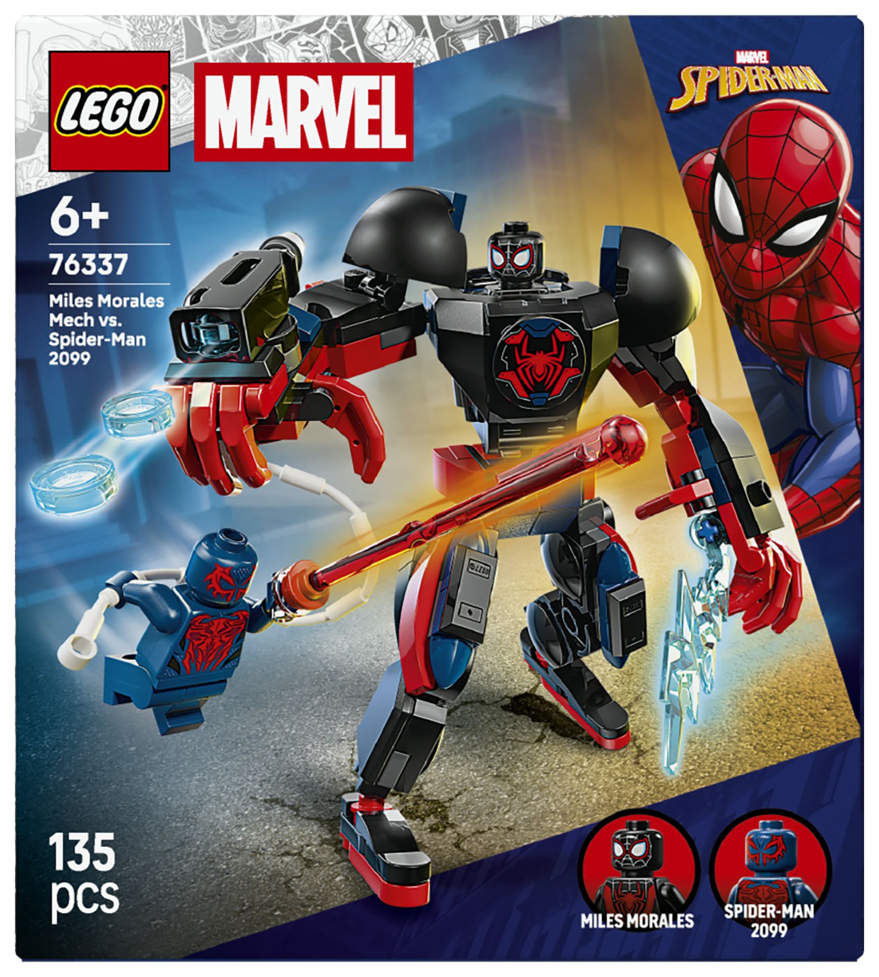 Miles Morales Mech vs. Spider-Man 2099 (76337) lässt dich den gigantischen Actionspaß aus den Marvel Filmen nachspielen. Das Superhelden-Bauspielzeug ist ein tolles Geschenk für Jungen und Mädchen ab 6 Jahren. Der große volle bewegliche Mech und die beiden Minifiguren Spider-Man und Miles Morales aus diesem Bau- und Spielset laden Kinder zu unzähligen Rollenspielen ein.