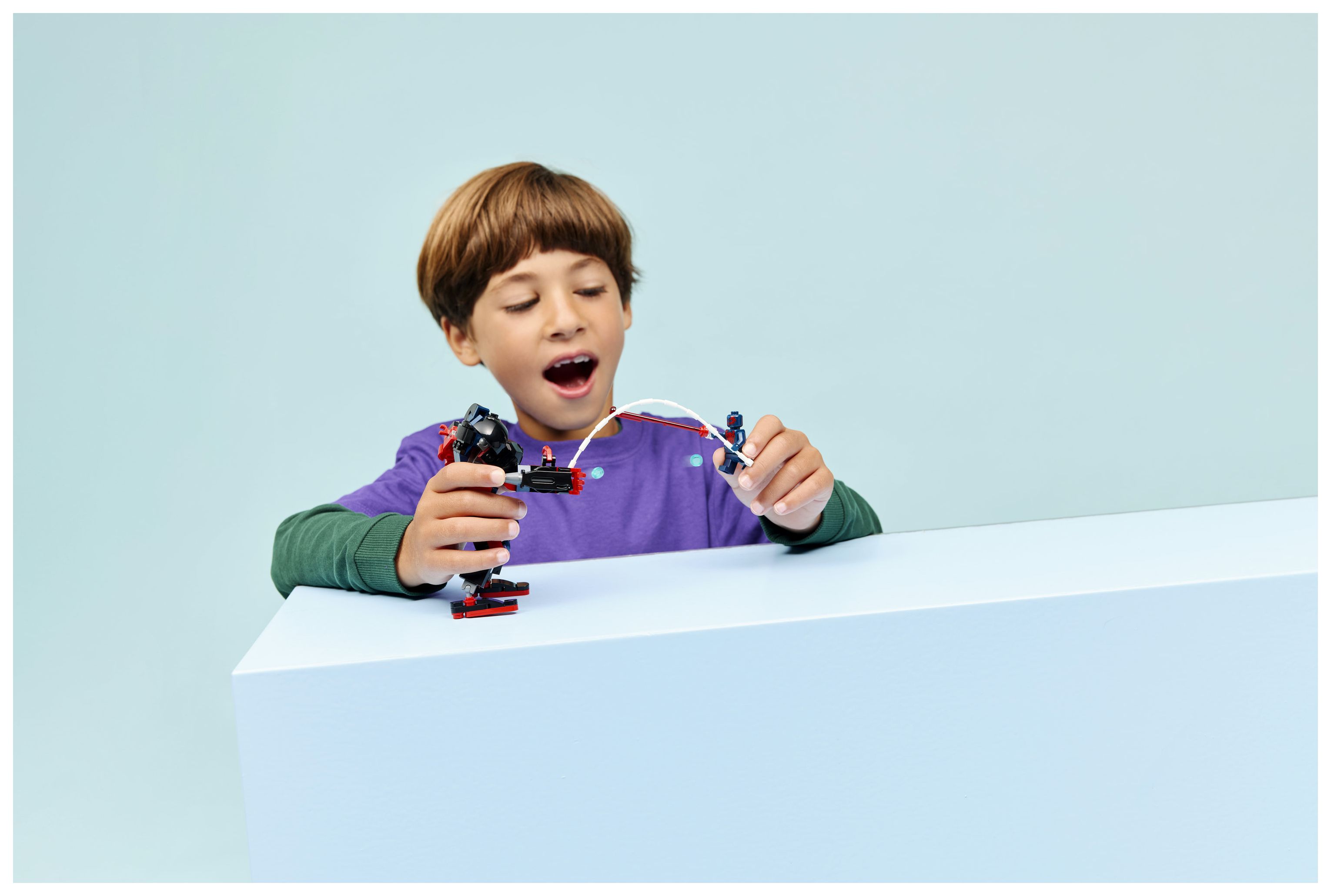 ZUBEHÖR FÜR JEDE MENGE ACTION: Ein cooler 3-fach-Shooter sowie Netzschießer und Rasiermesser-Web-Blaster an den Armen von Miles Morales’ Mech lassen Kinder fantasievoll mit dem Bauspielzeug und den Minifiguren spielen