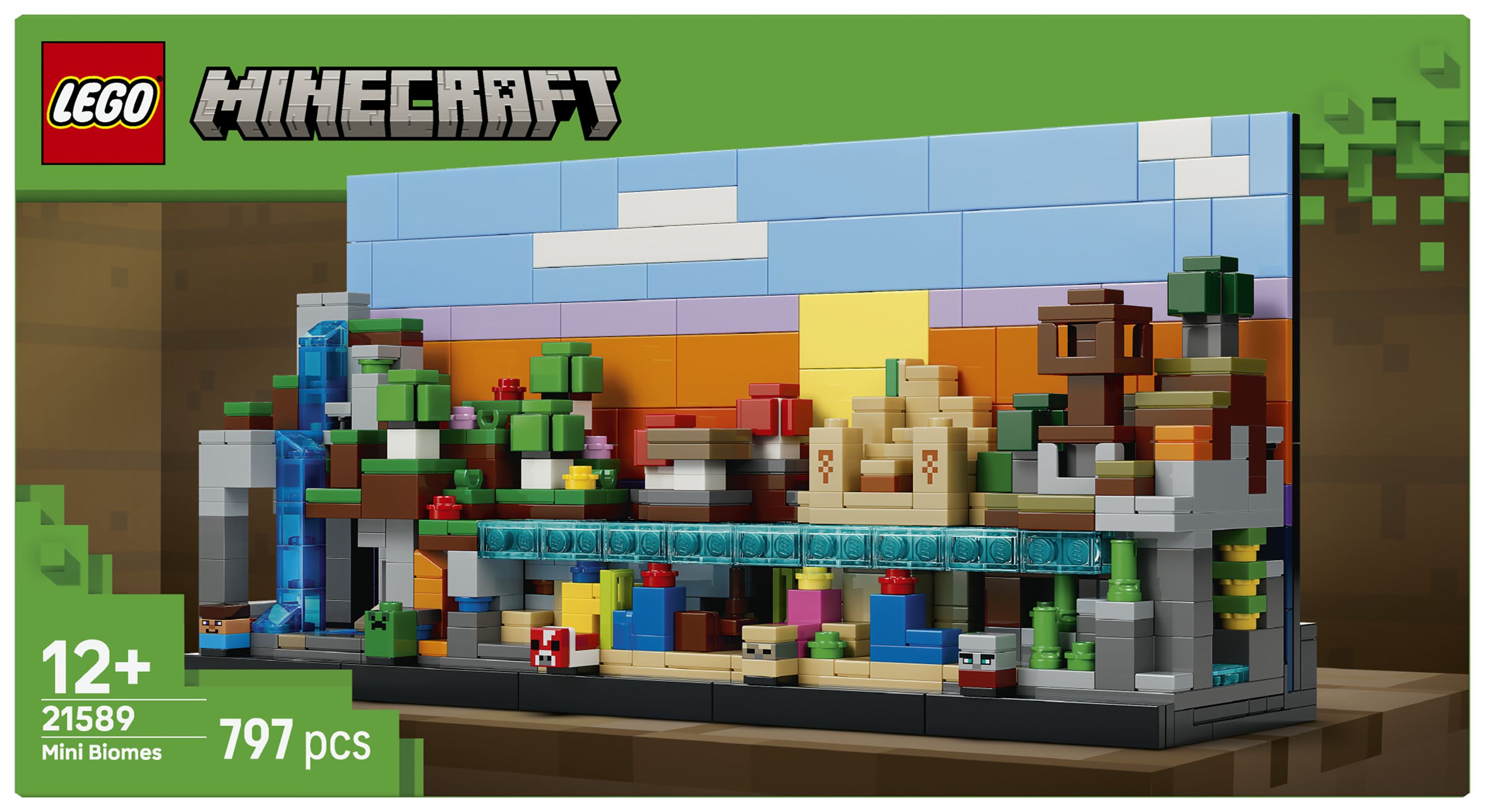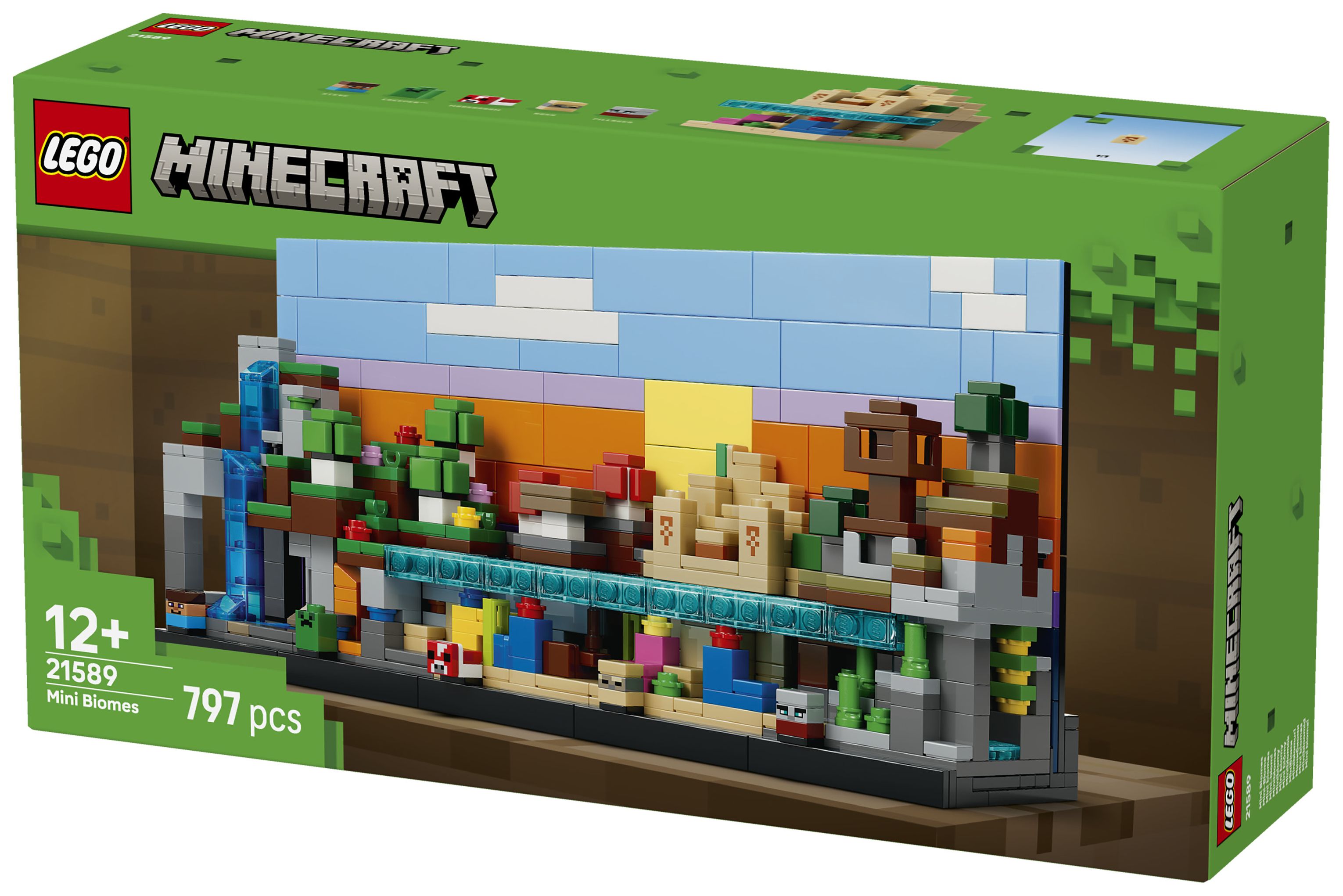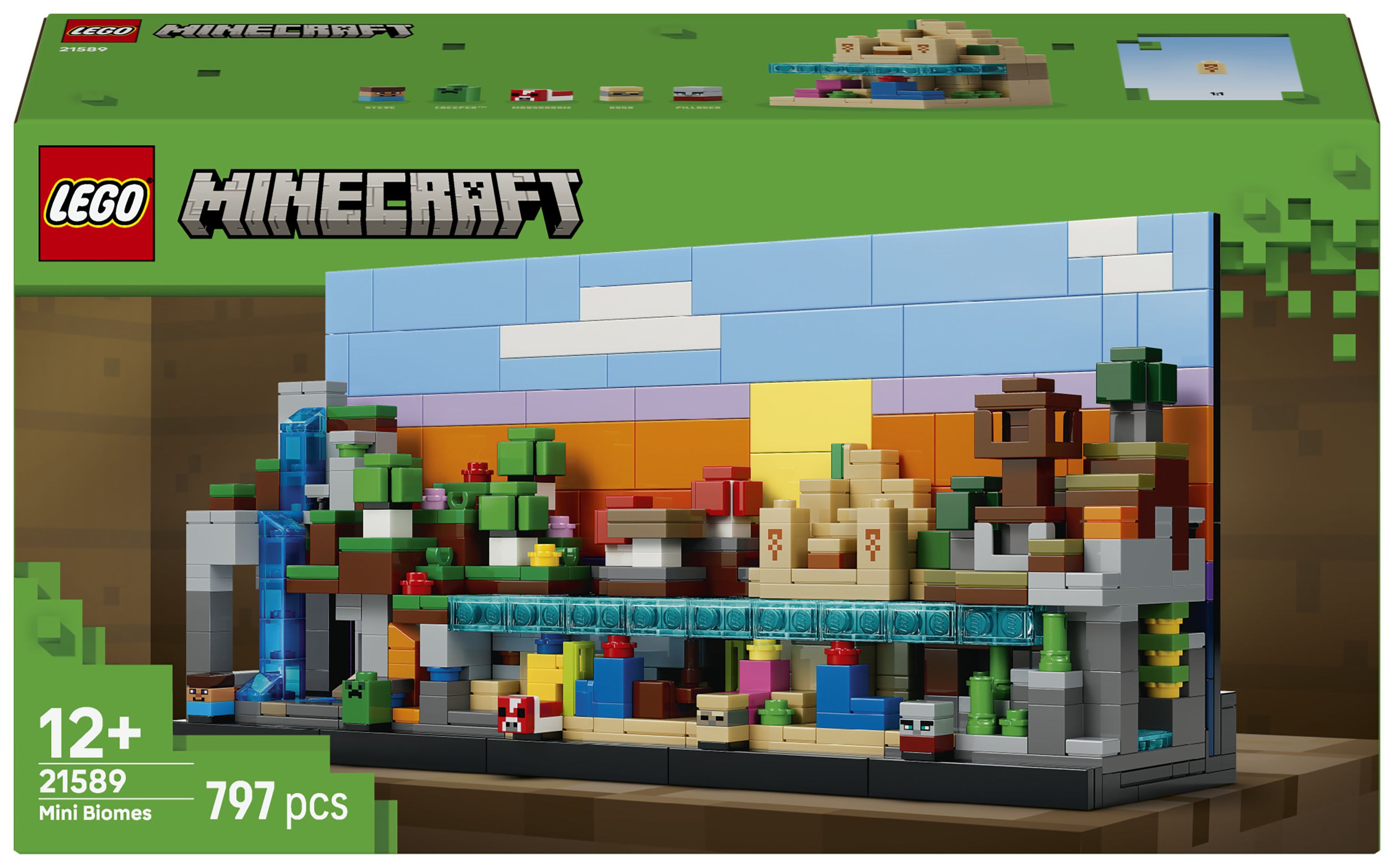 5 SPIELZEUGBIOME MIT MINECRAFT® FIGUREN: Das LEGO® Set stellt 5 Biome (Berg, Blumenwald, Pilzfelder, Wüste und Savanne) sowie 5 Mikrofiguren (Steve, Creeper™, Pilzkuh, Wüstenzombie und Plünderer) dar