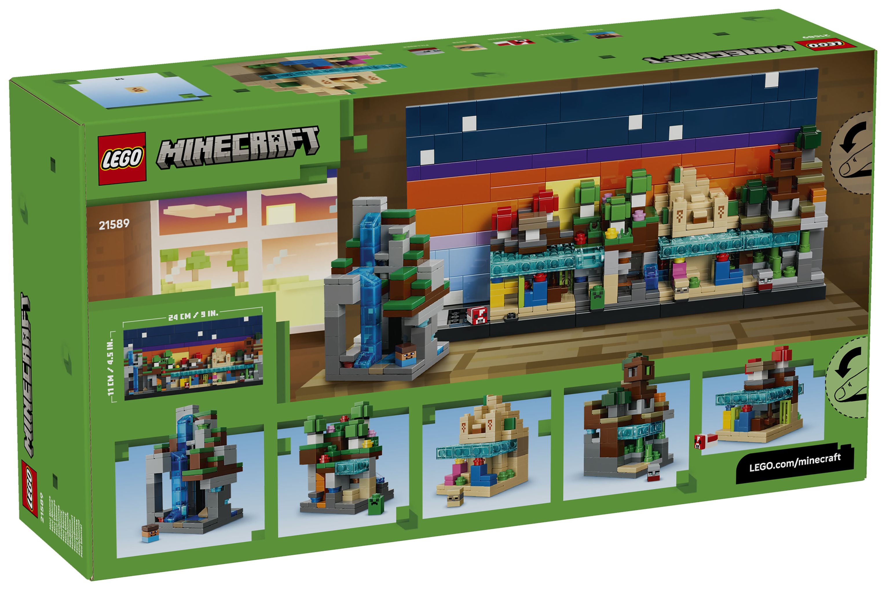 LEGO® Minecraft® Mini-Biome (21589); Bauset; Minecraft-Kunstwerk; modulares Set und Deko zum Ausstellen für Jungen und Mädchen; Mikrofiguren – Steve, Creeper™ und Plünderer