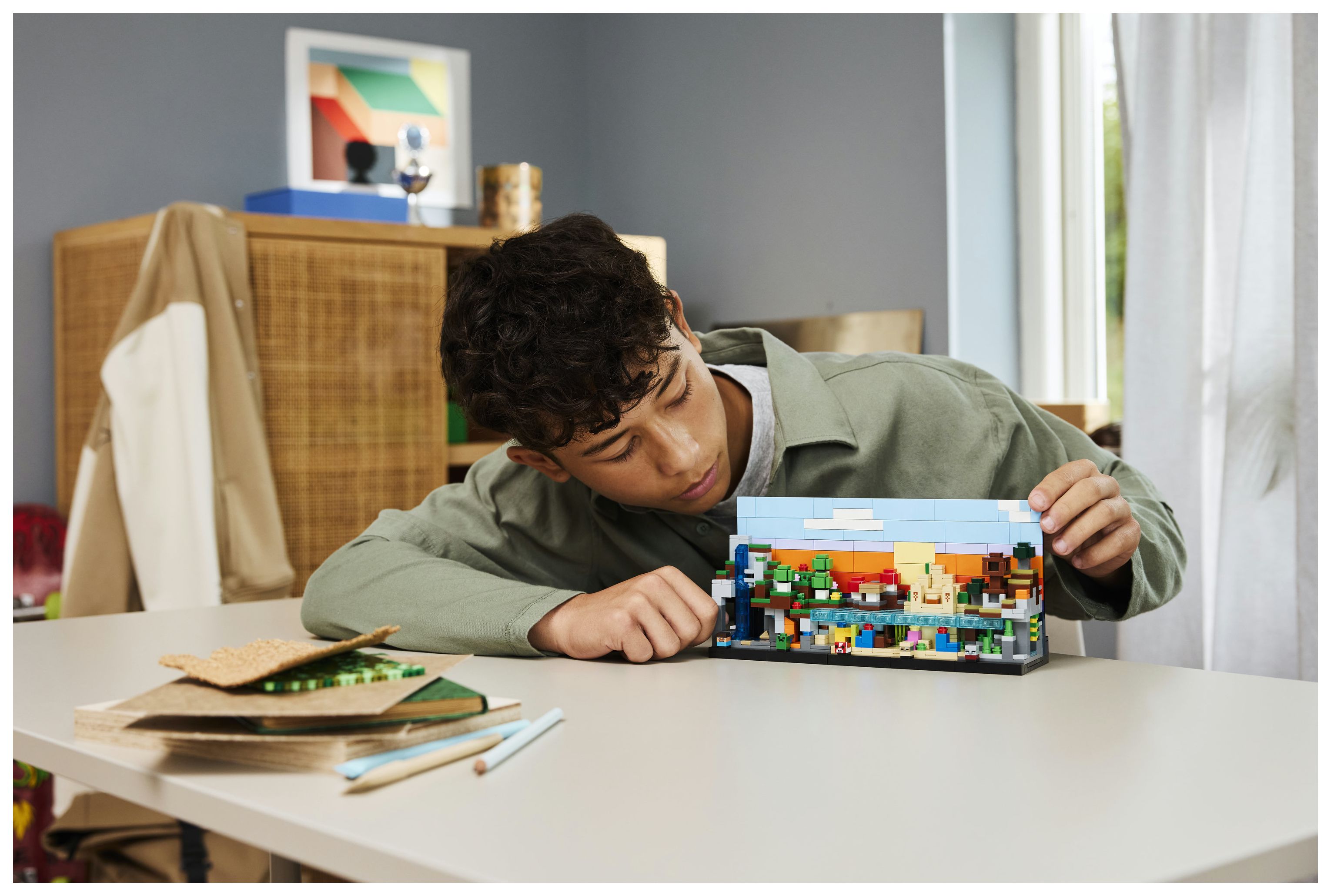 MINECRAFT® BIOME ZUM AUSSTELLEN: Jungen und Mädchen ab 12 Jahren, die Bausets, Gaming-Deko und Fanartikel zum Sammeln lieben, können mit dieser Deko zum Videospiel allen ihre Begeisterung für Minecraft zeigen