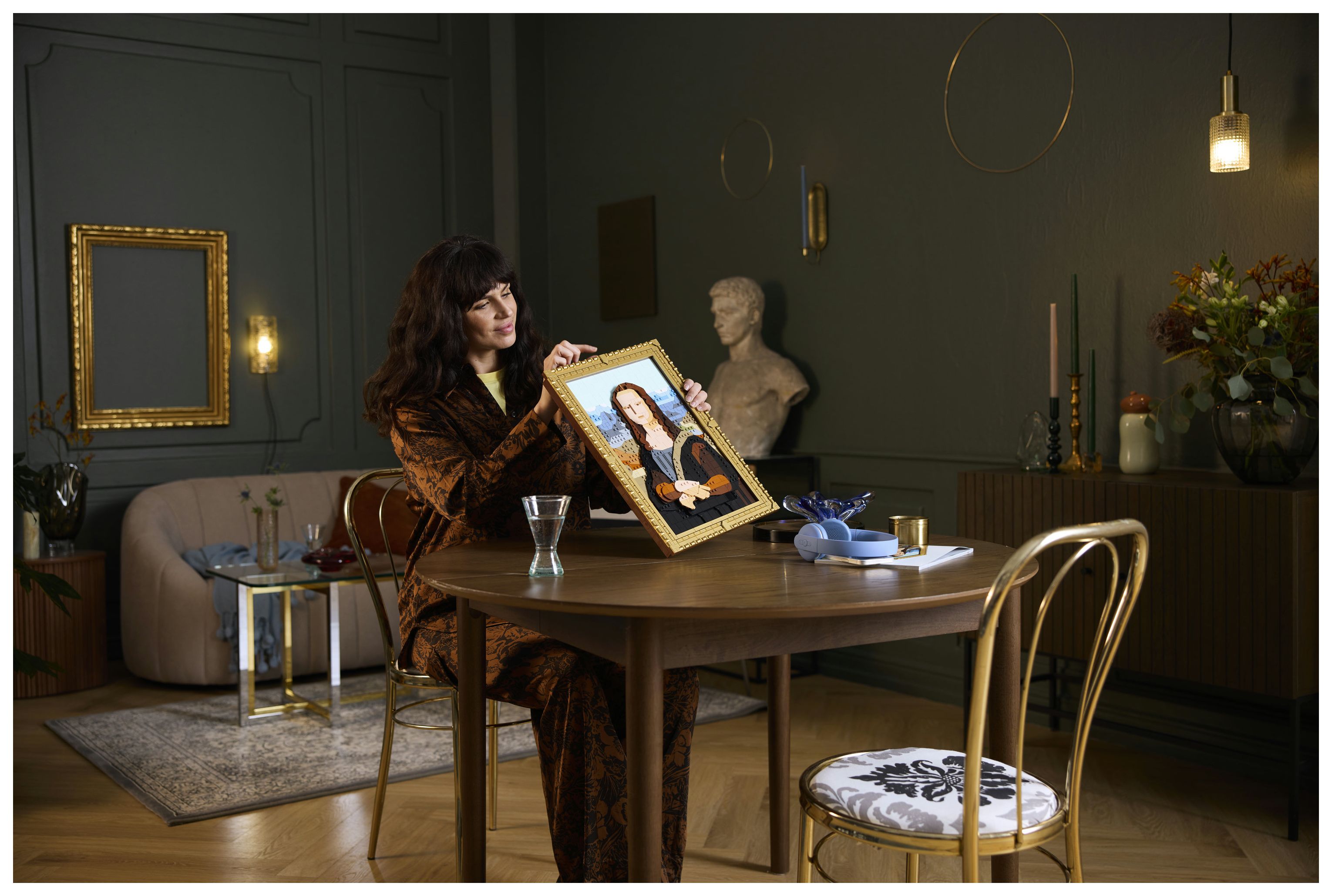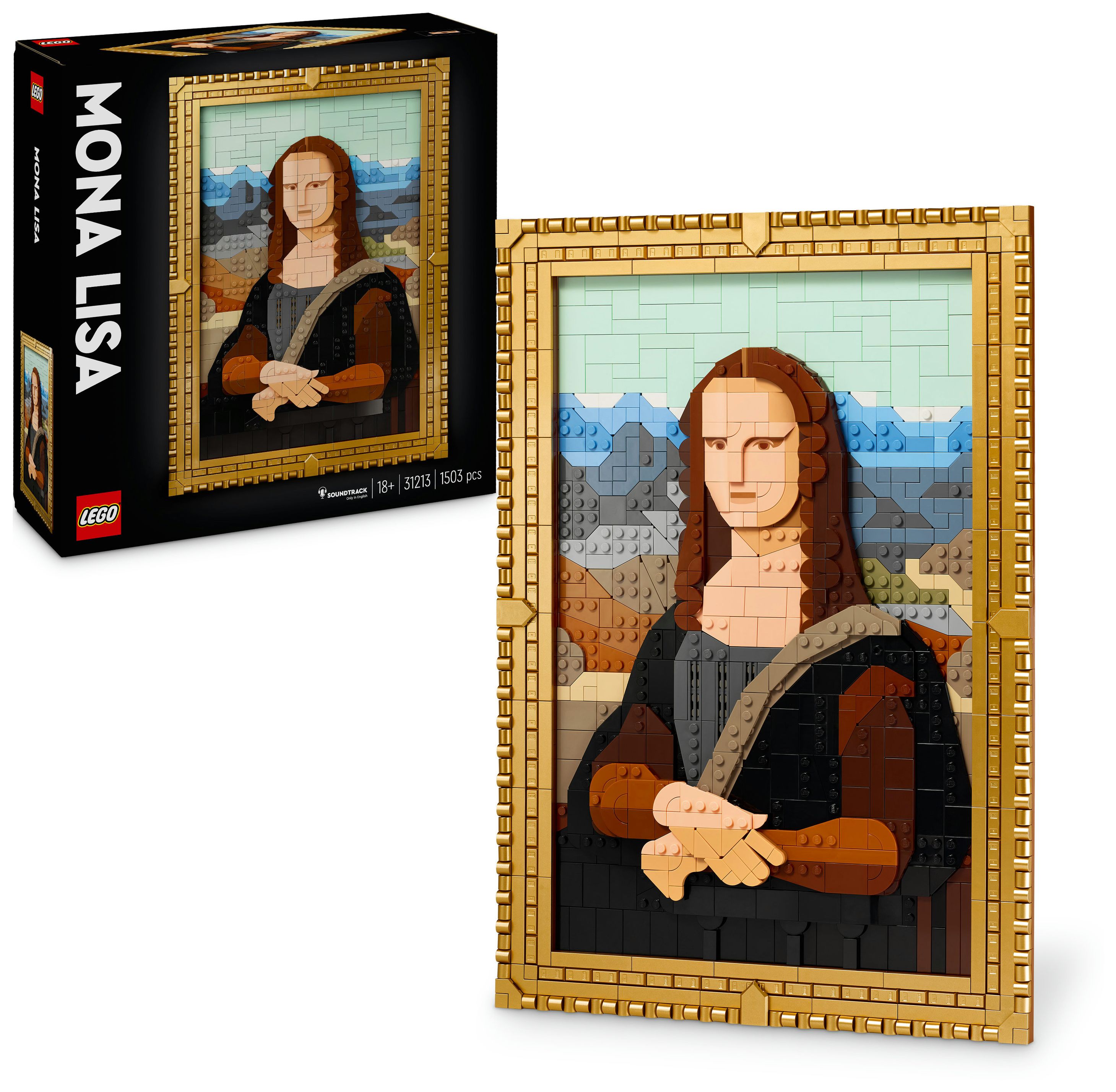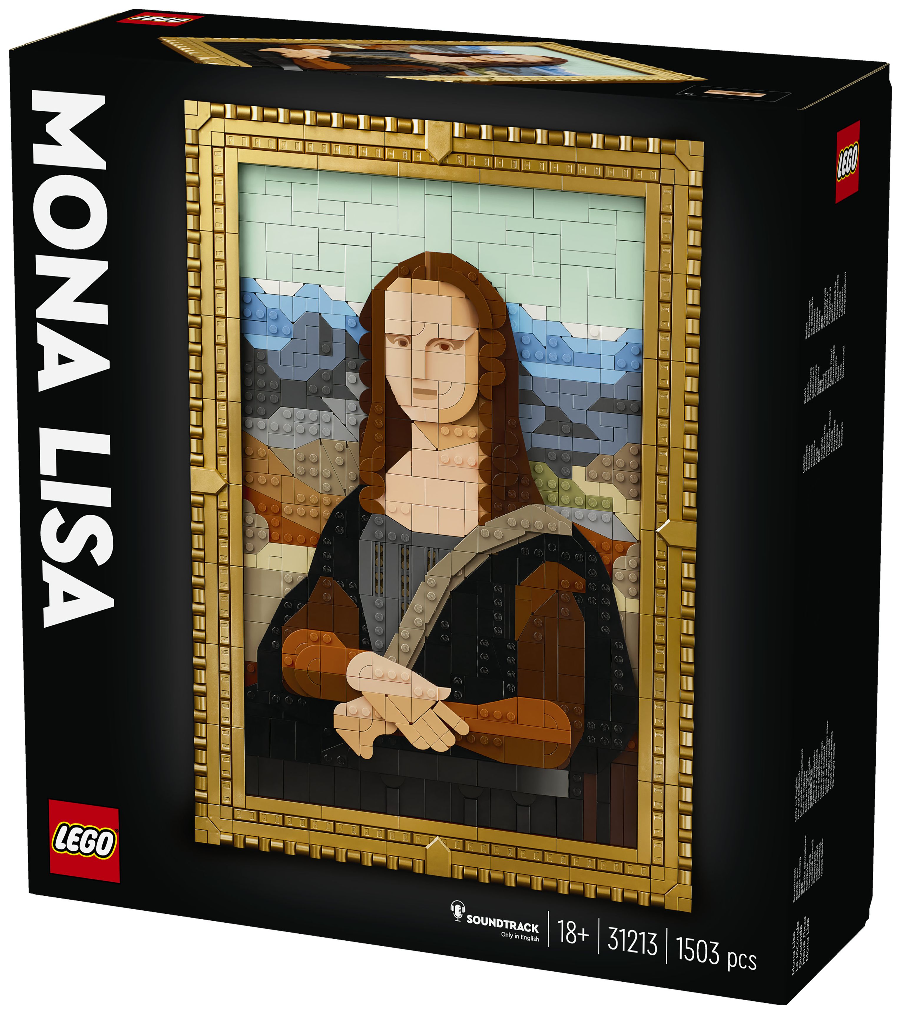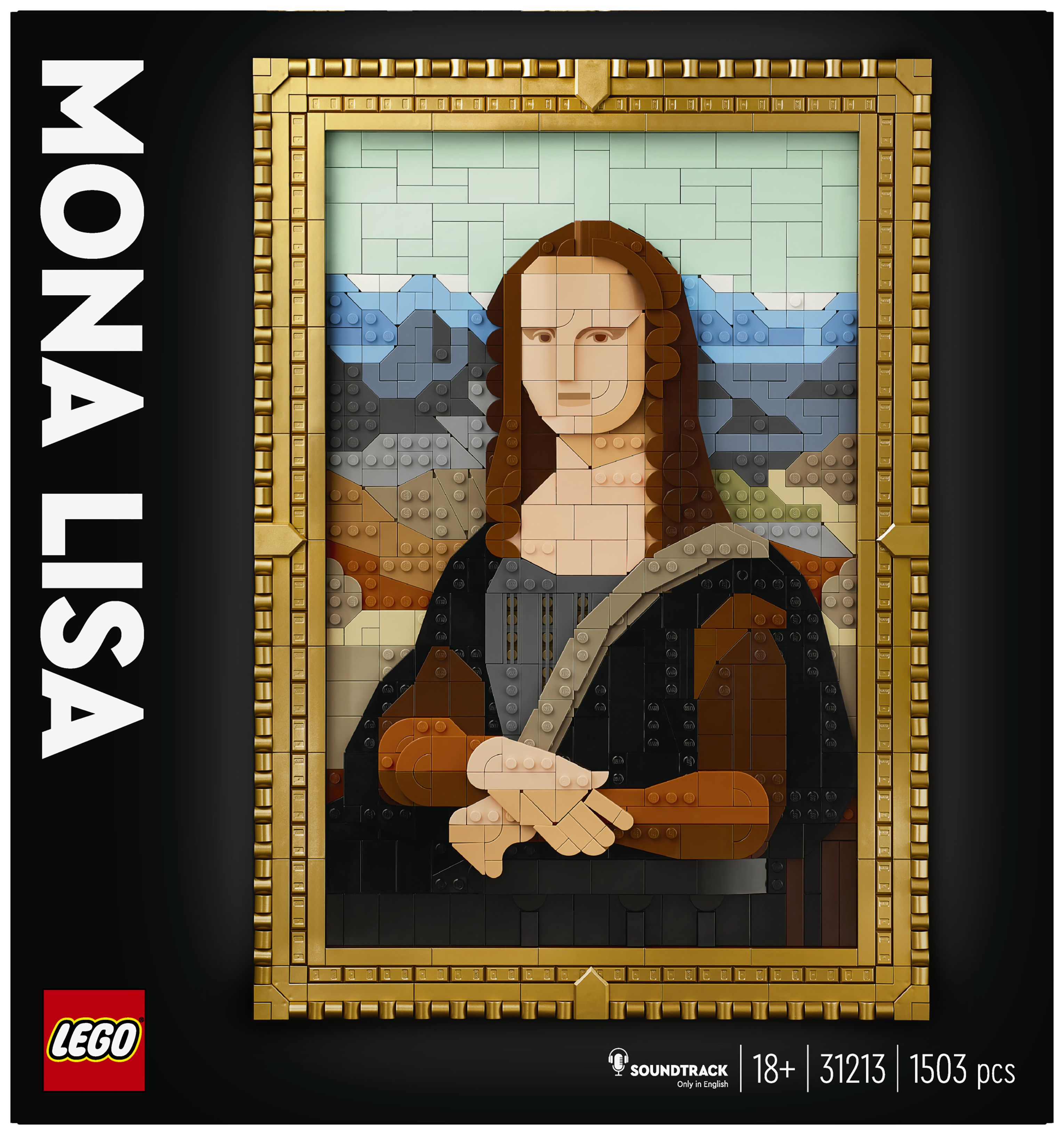 Die Mona Lisa kann in ihrem goldenen Rahmen an der Wand aufgehängt werden. Der Rahmen lässt sich aber auch von dem Gemälde trennen, um andere LEGO Art Werke aus einer bereits vorhandenen Kollektion darin zu präsentieren. Diesem LEGO Set für Erwachsene liegt auch eine Broschüre mit Bauanleitung bei. Du musst nur den QR-Code scannen, um dir den Soundtrack anzuhören und faszinierende Fakten zum zeitlosen Reiz der Mona Lisa zu erfahren.