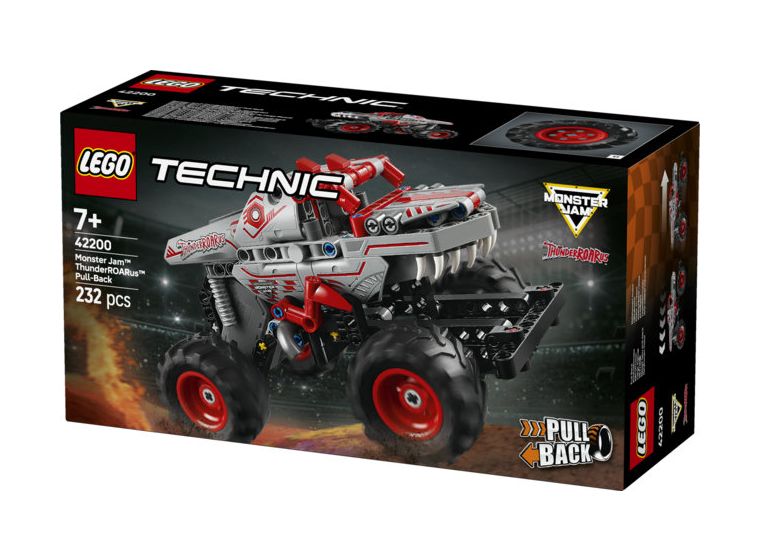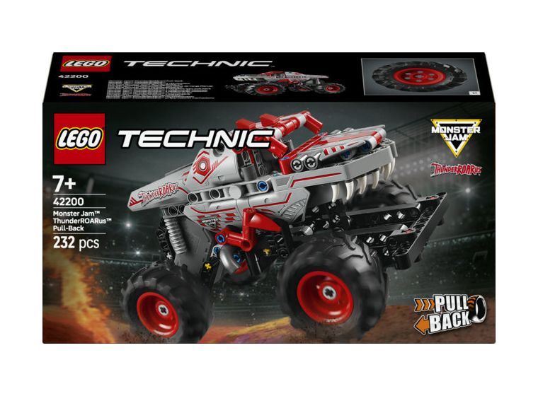 Überrasche Monster Jam™ Fans ab 7 Jahren mit diesem Spielzeug-Monstertruck mit Rückziehmotor. Der LEGO® Technic™ Monster Jam ThunderROARus™ (42200) ist ein Spielzeugauto mit cooler Rückziehfunktion. Mädchen und Jungen können ihren Dino-Monstertruck losflitzen lassen, damit er die rasanten Tricks vorführt, die sie aus der Monster-Jam-Arena kennen.