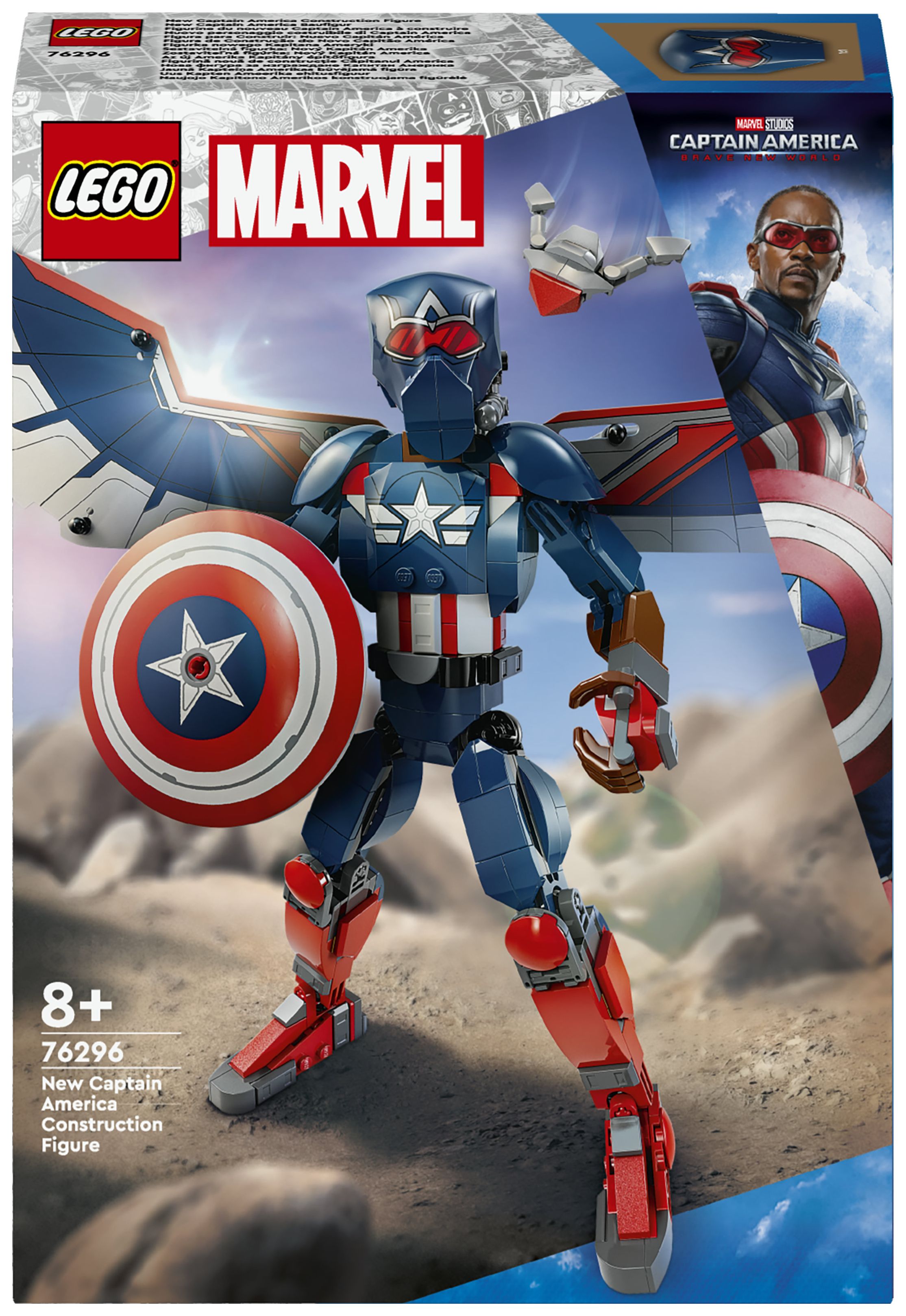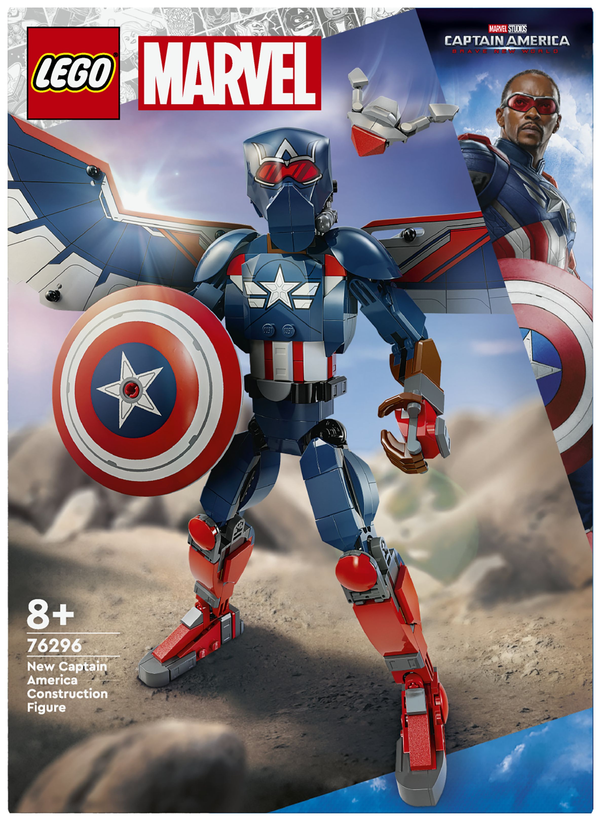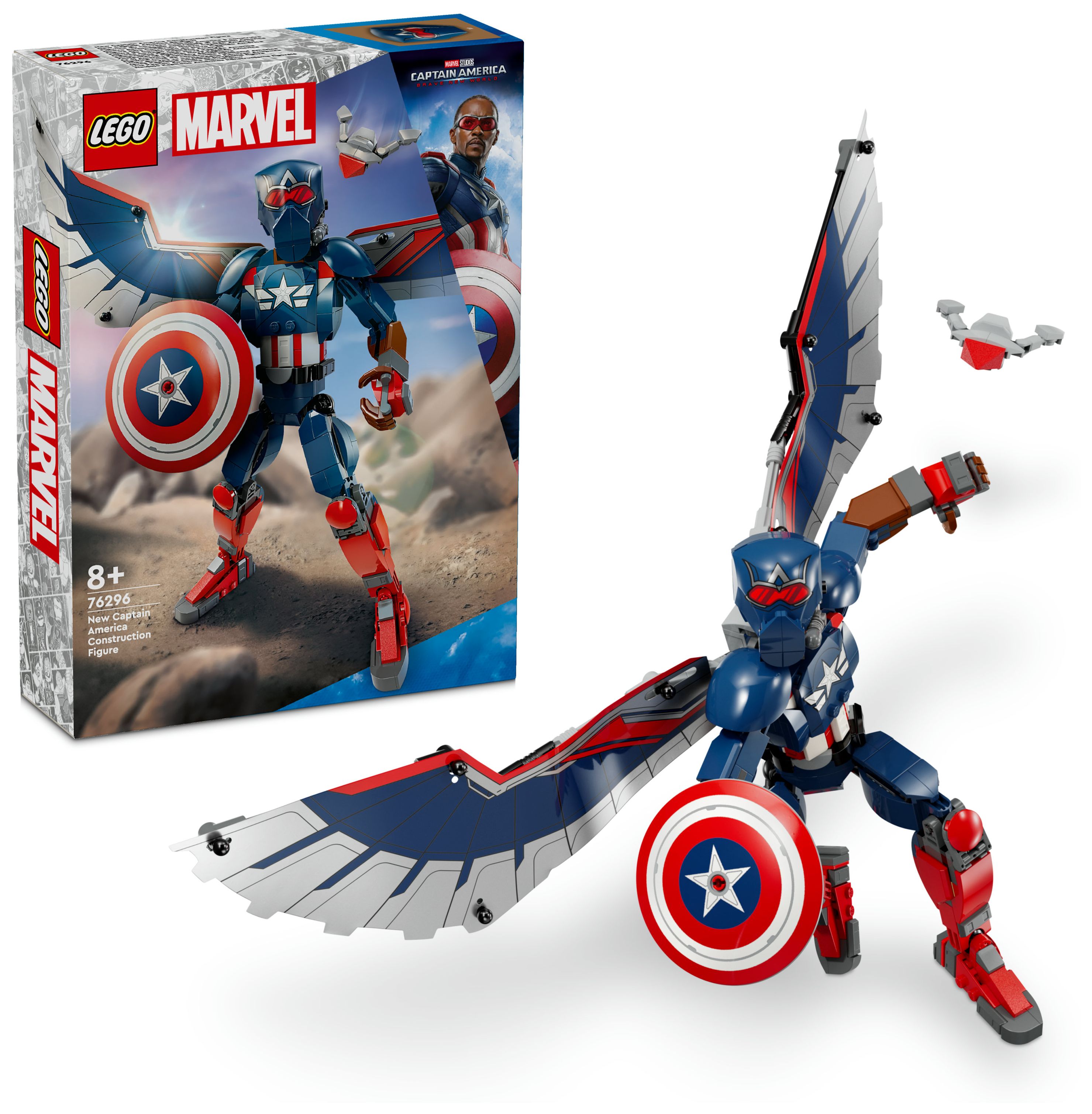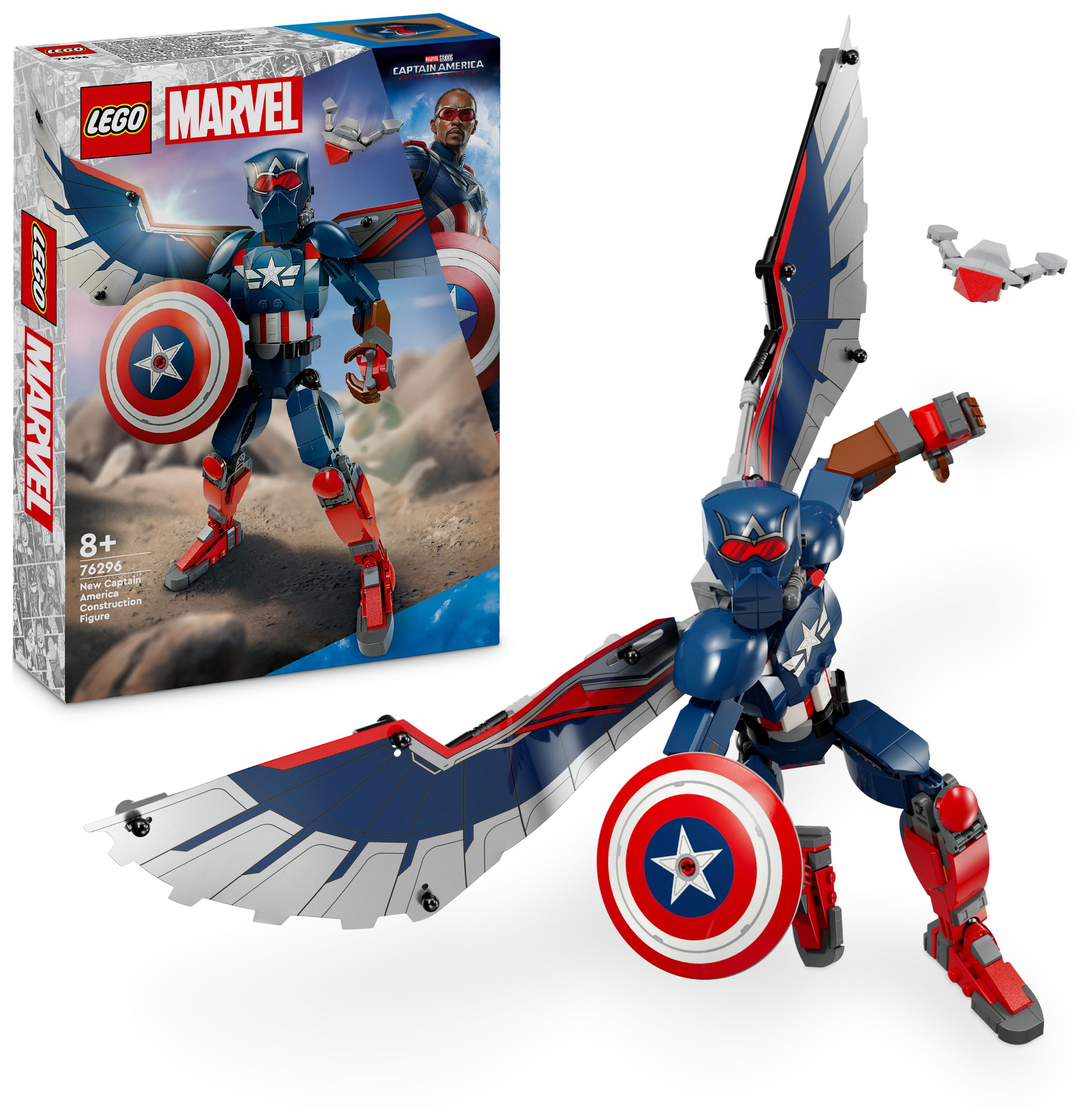 Lass junge Superhelden ab 8 Jahren mit der originalgetreuen, voll beweglichen LEGO® Marvel New Captain America Baufigur (76296) spannende Marvel Action mit den eigenen Händen darstellen. Der geflügelte Falcon schlüpft in die Rolle von Captain America, um den Marvel Superhelden zu verkörpern und dem Spielerlebnis deines Kindes eine völlig neue Dimension zu verleihen.