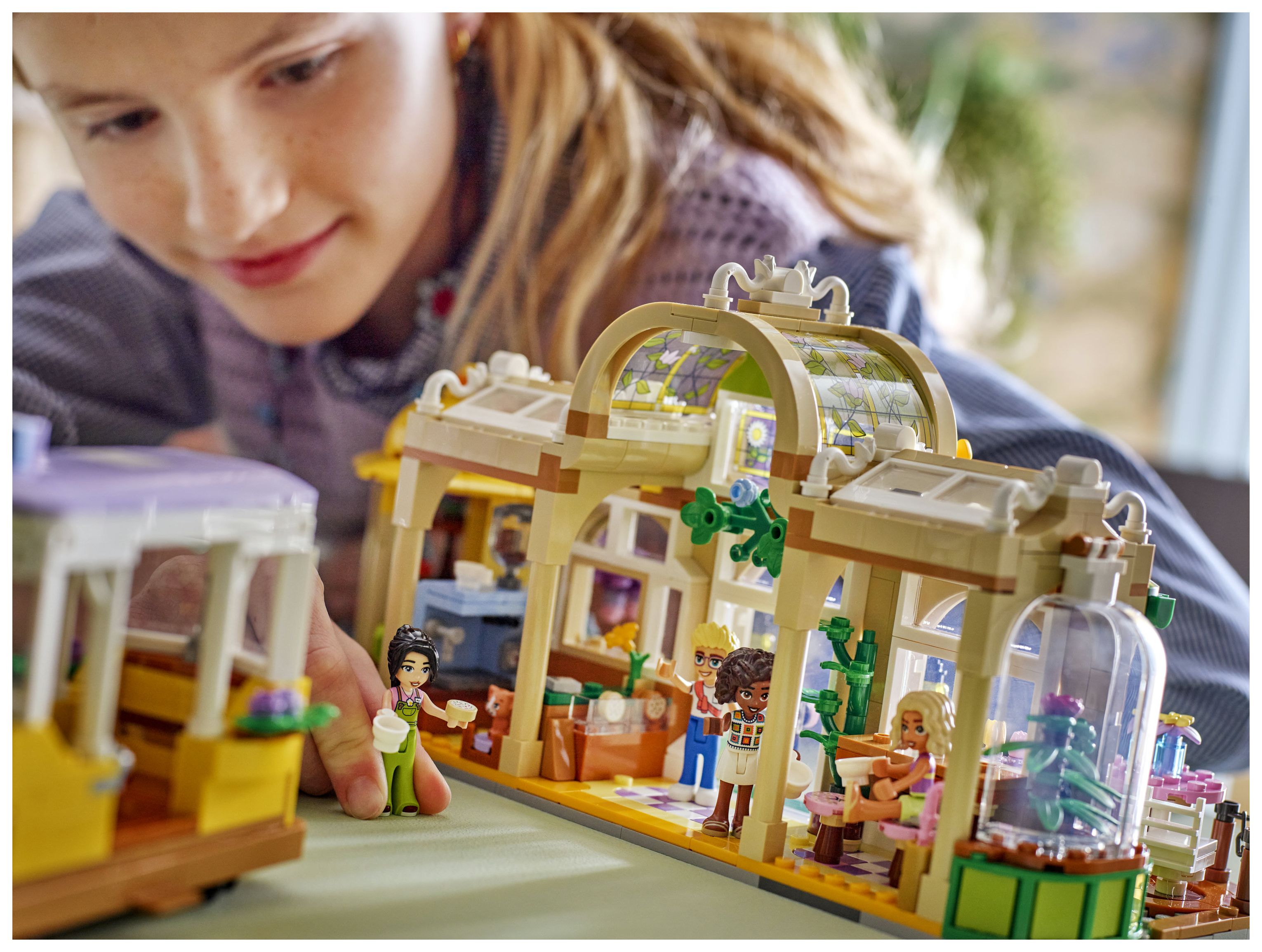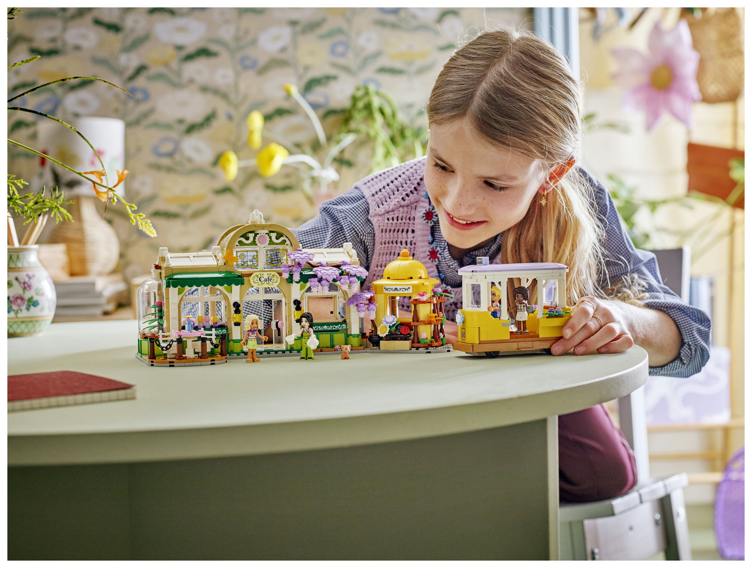 Bauset für viele Freundschaftsgeschichten: LEGO® Friends Pflanzencafé und Blumenkiosk lässt Mädchen und Jungen fantasievoll im Café und Blumenkiosk und mit der Straßenbahn spielen