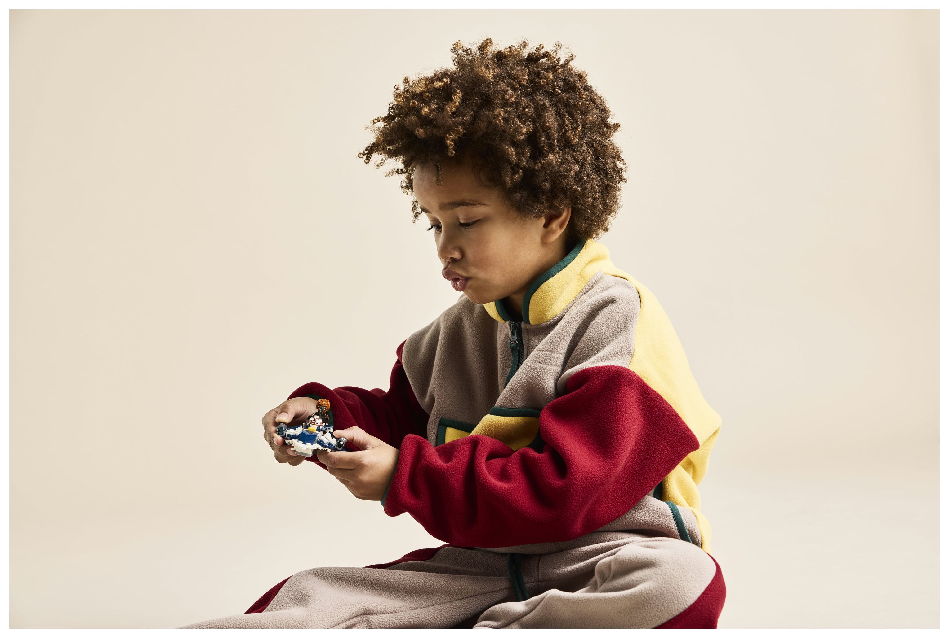 Dieses Fantasy-Bauset beinhaltet auch die LEGO Minifigur Plo Koon mit einem blauen Lichtschwert, das man unten am Microfighter festklemmen kann. Der Kopf von R7-D4 kann vor dem Cockpit auf den Rumpf gesteckt werden, damit es so aussieht, als würde der treue Star Wars Droide Plo Koon auf seinen Missionen begleiten.
