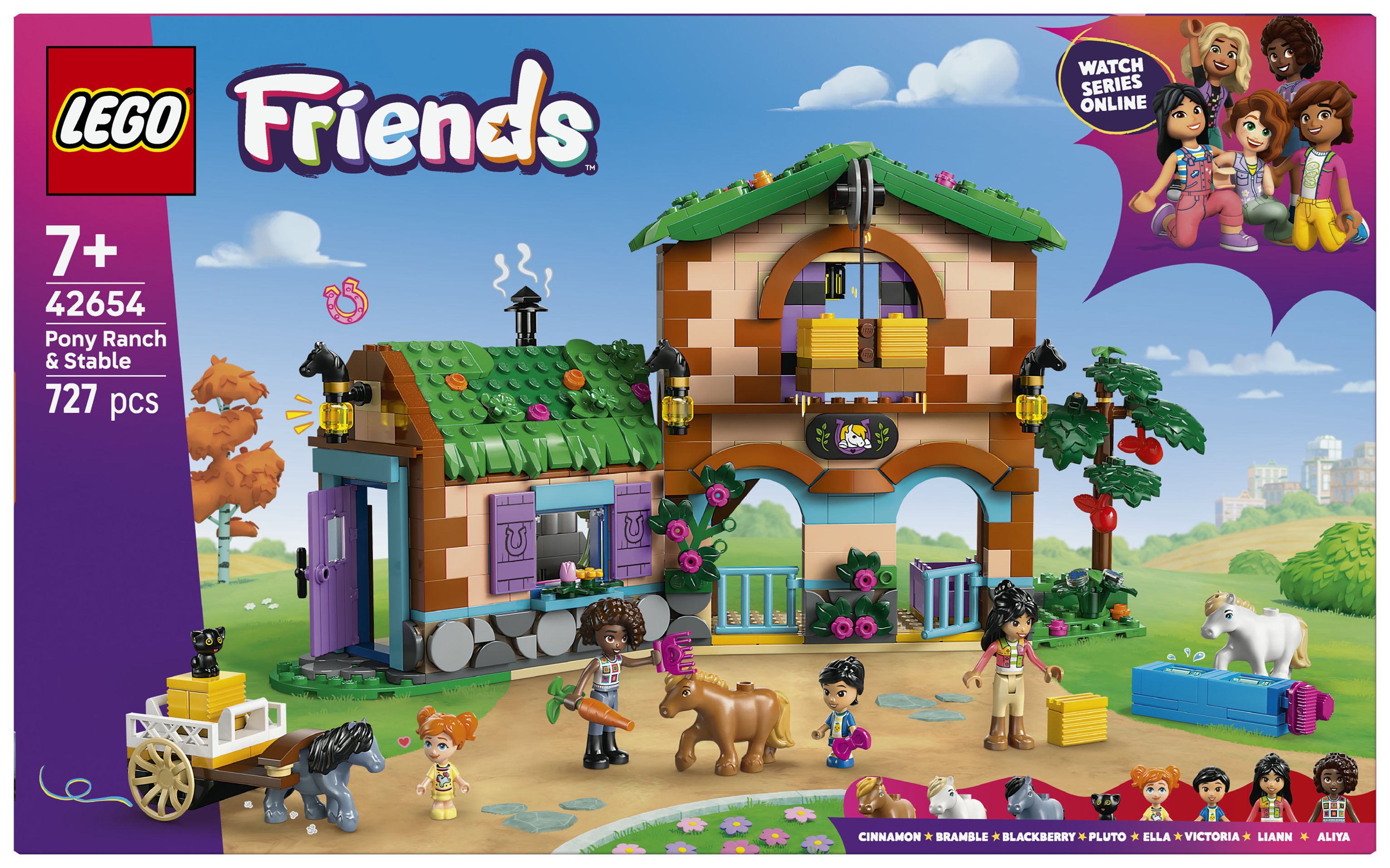 LEGO® Friends Ponyhof & Stall (42654); Bau- und Spielset für fantasievolle Rollenspiele mit 2 Spielfiguren, 2 Mikro-Spielfiguren und 4 Tieren; für Mädchen und Jungen ab 7 Jahren