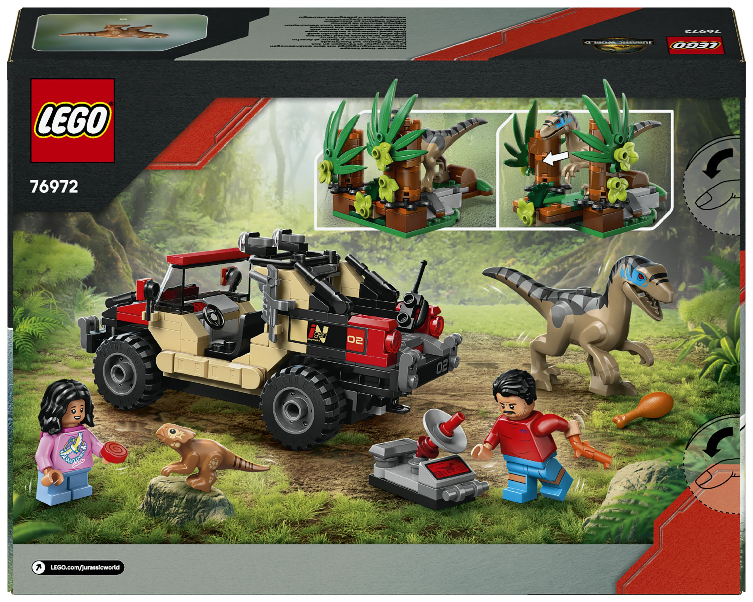 LEGO® Jurassic World Raptor: Verfolgungsjagd mit dem Geländewagen (76972); Bauset mit Auto für Abenteuergeschichten; Geschenk zu jedem Anlass für Jungen und Mädchen ab 6 Jahren