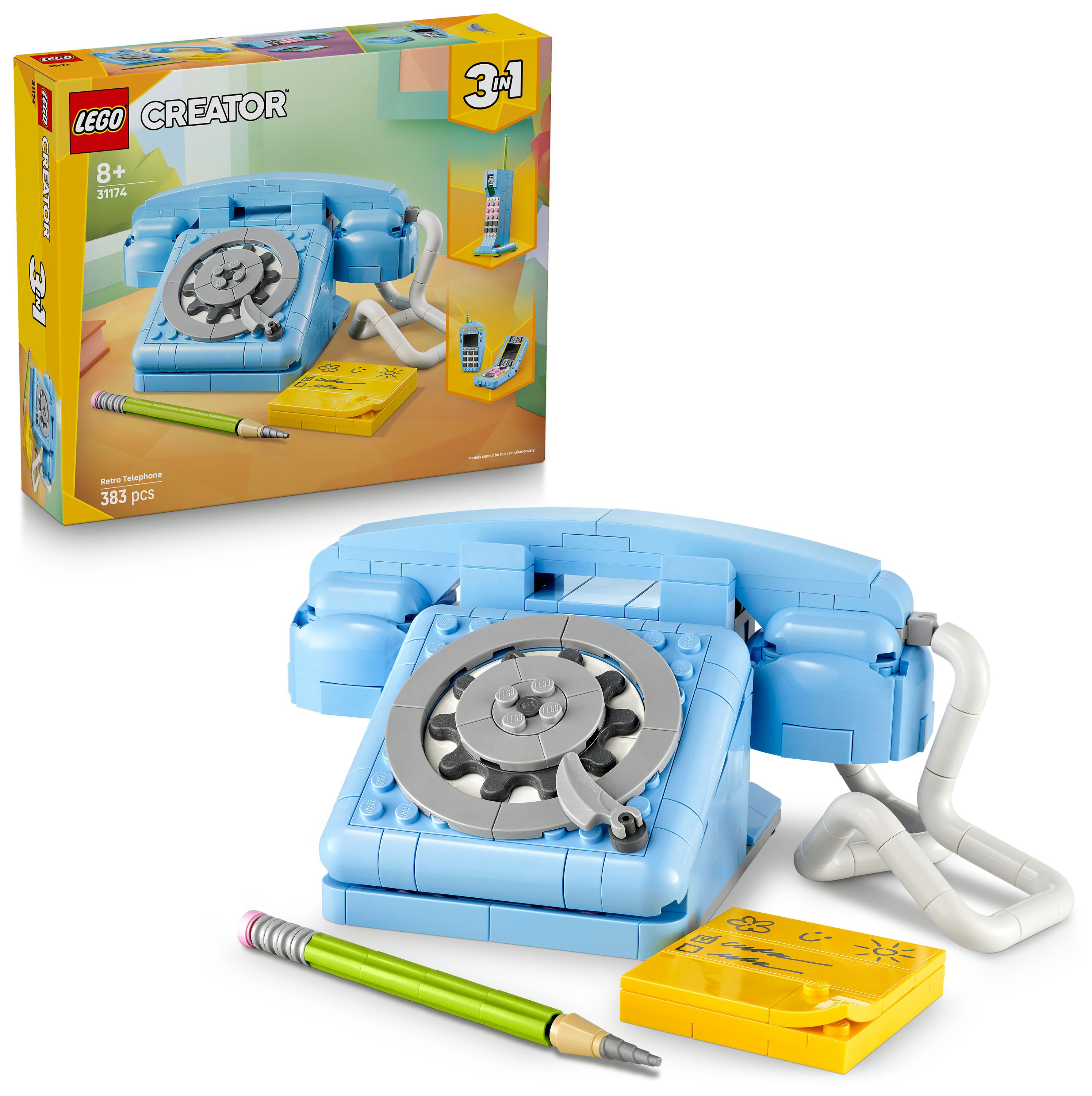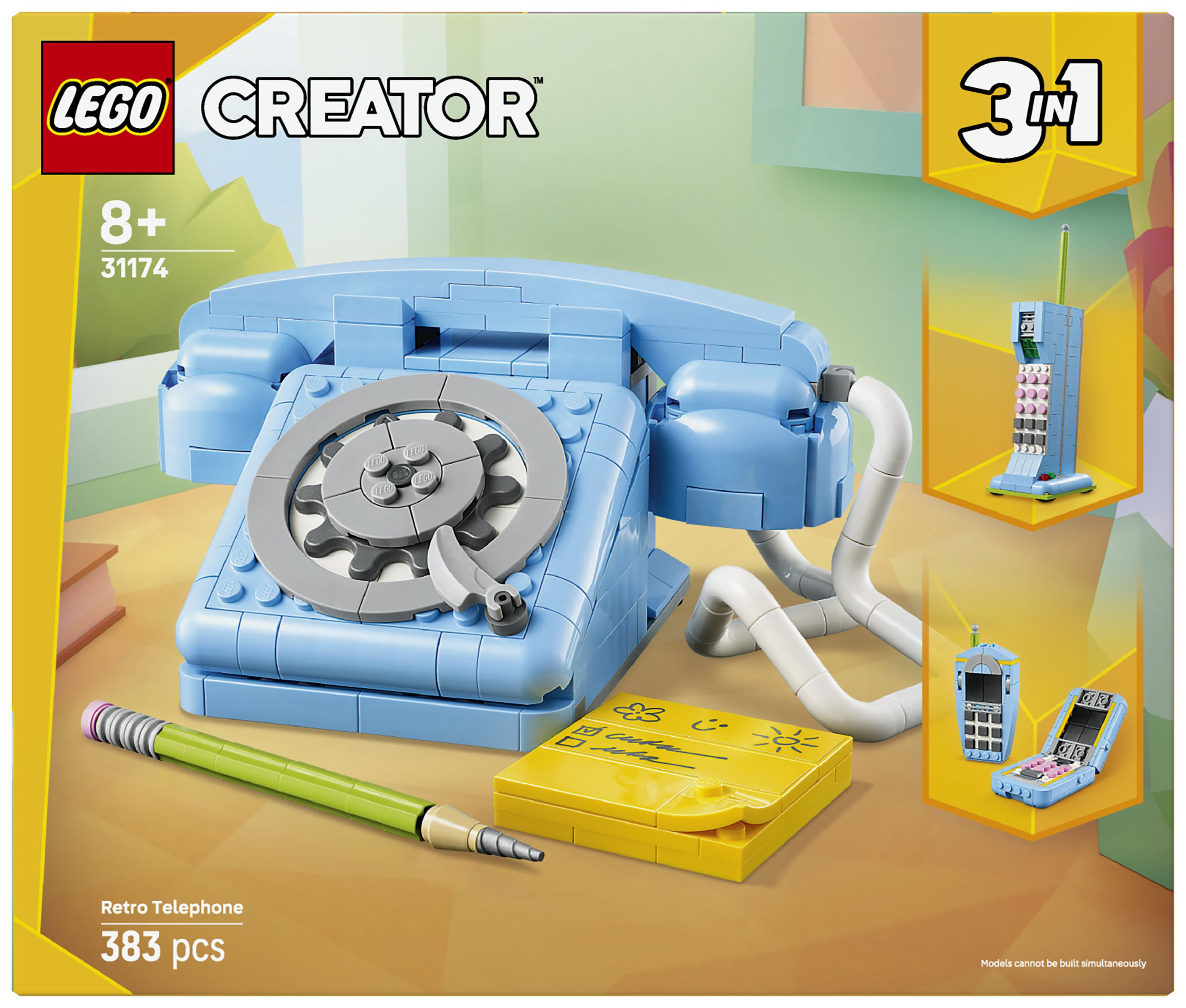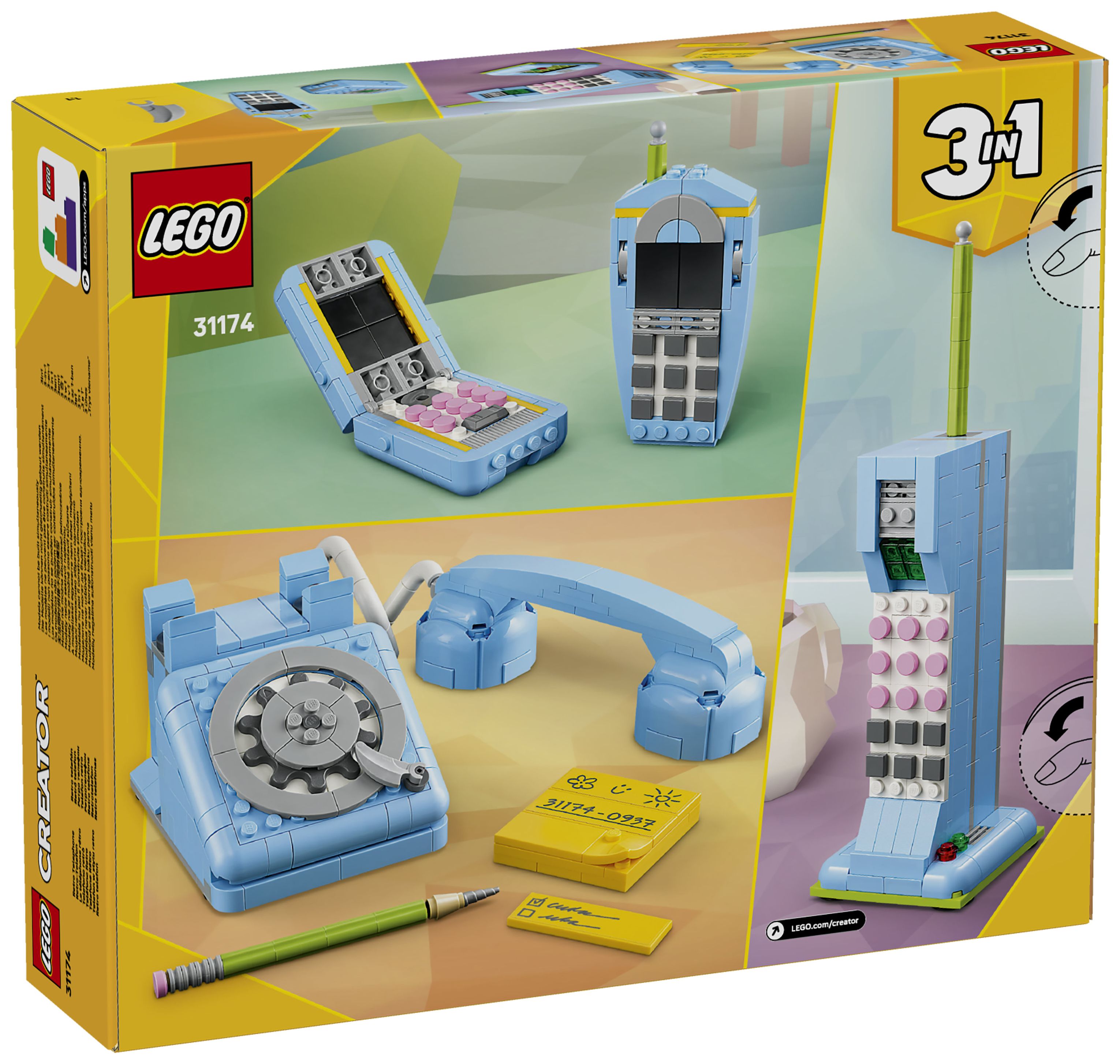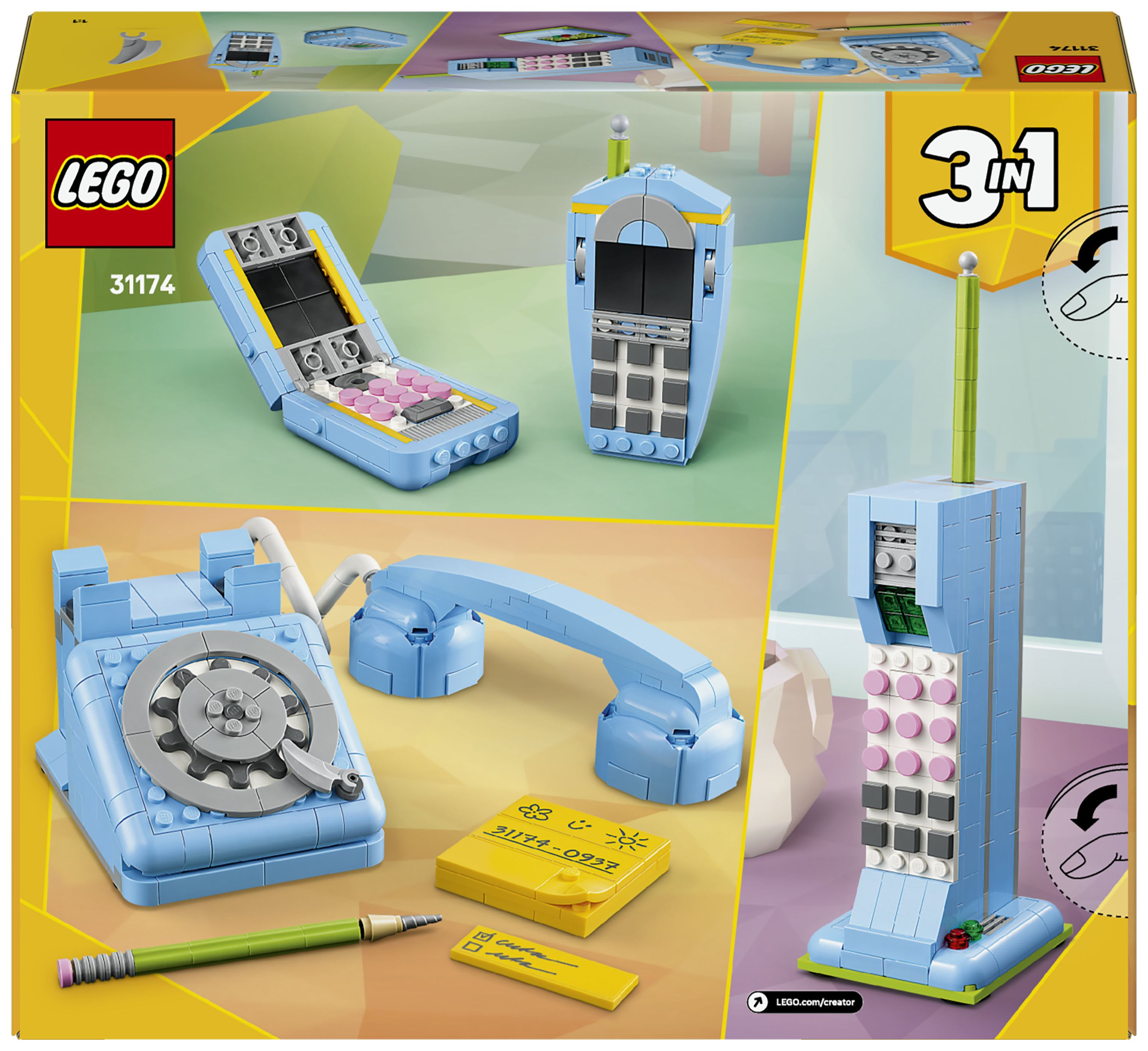 3 Retro-Telefone in 1 Box: Das LEGO Creator Retro-Telefon ist ein 3-in-1-Spielset, das Kinder ab 8 Jahren 3 verschiedene Telefone im Retro-Look aus denselben LEGO Steinen bauen und immer wieder umgestalten lässt