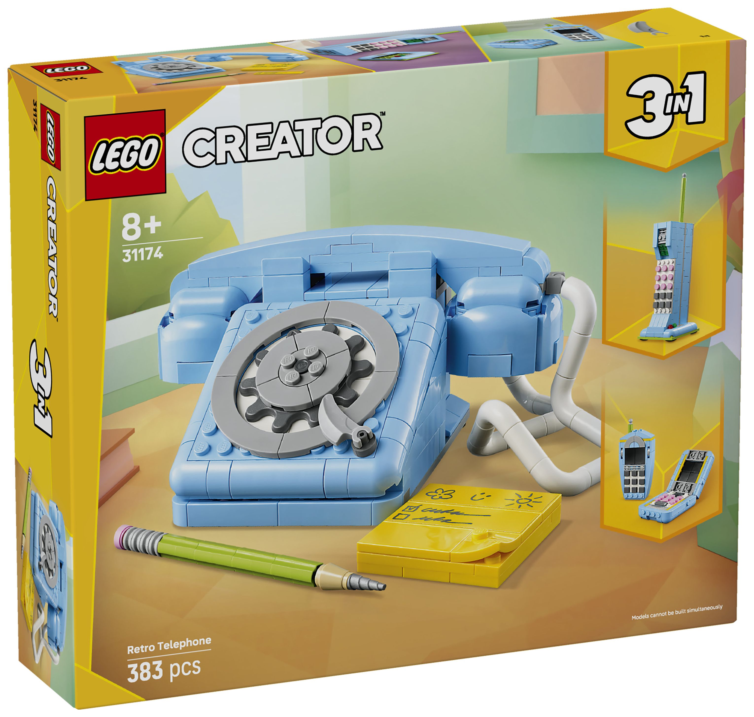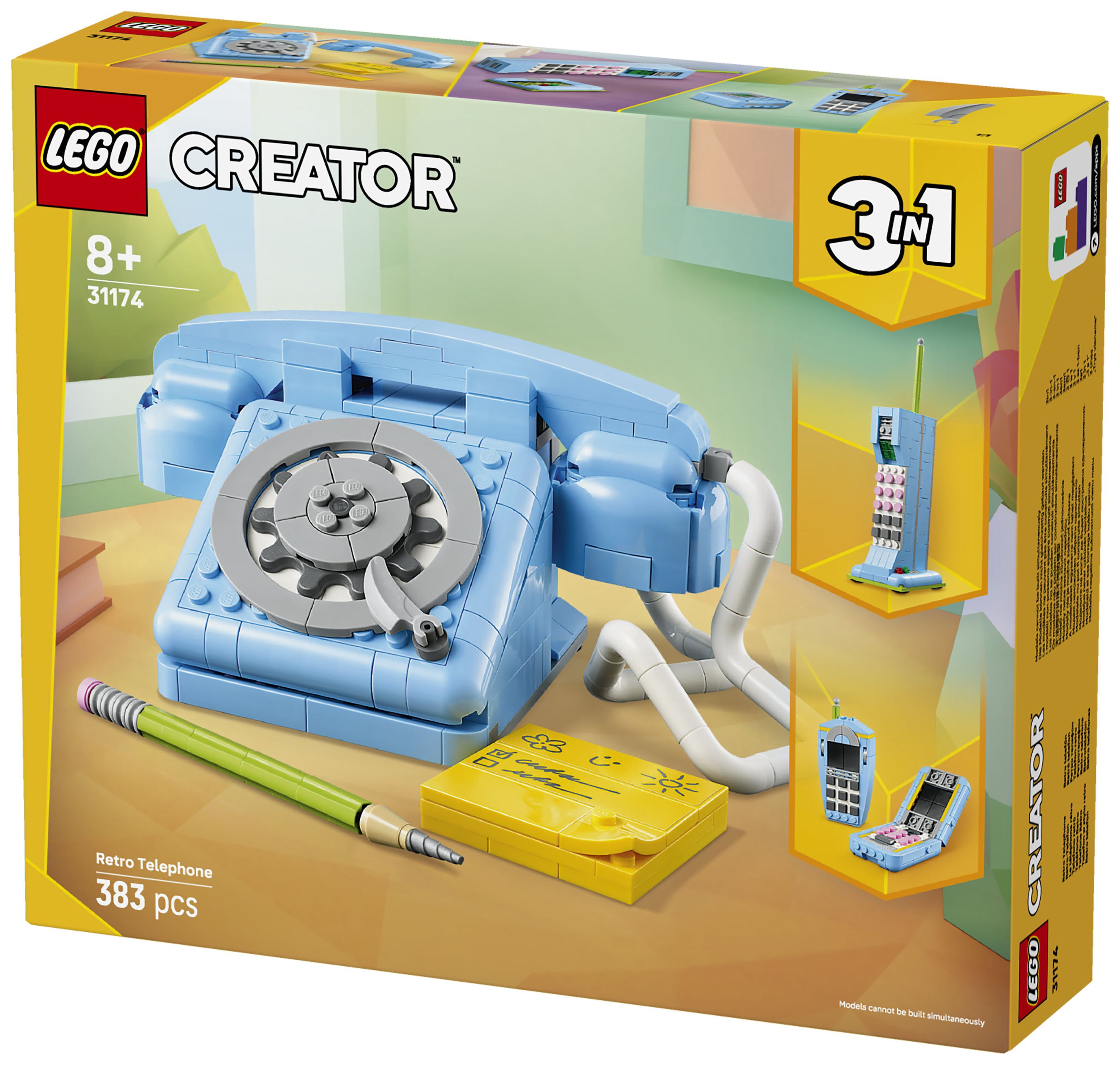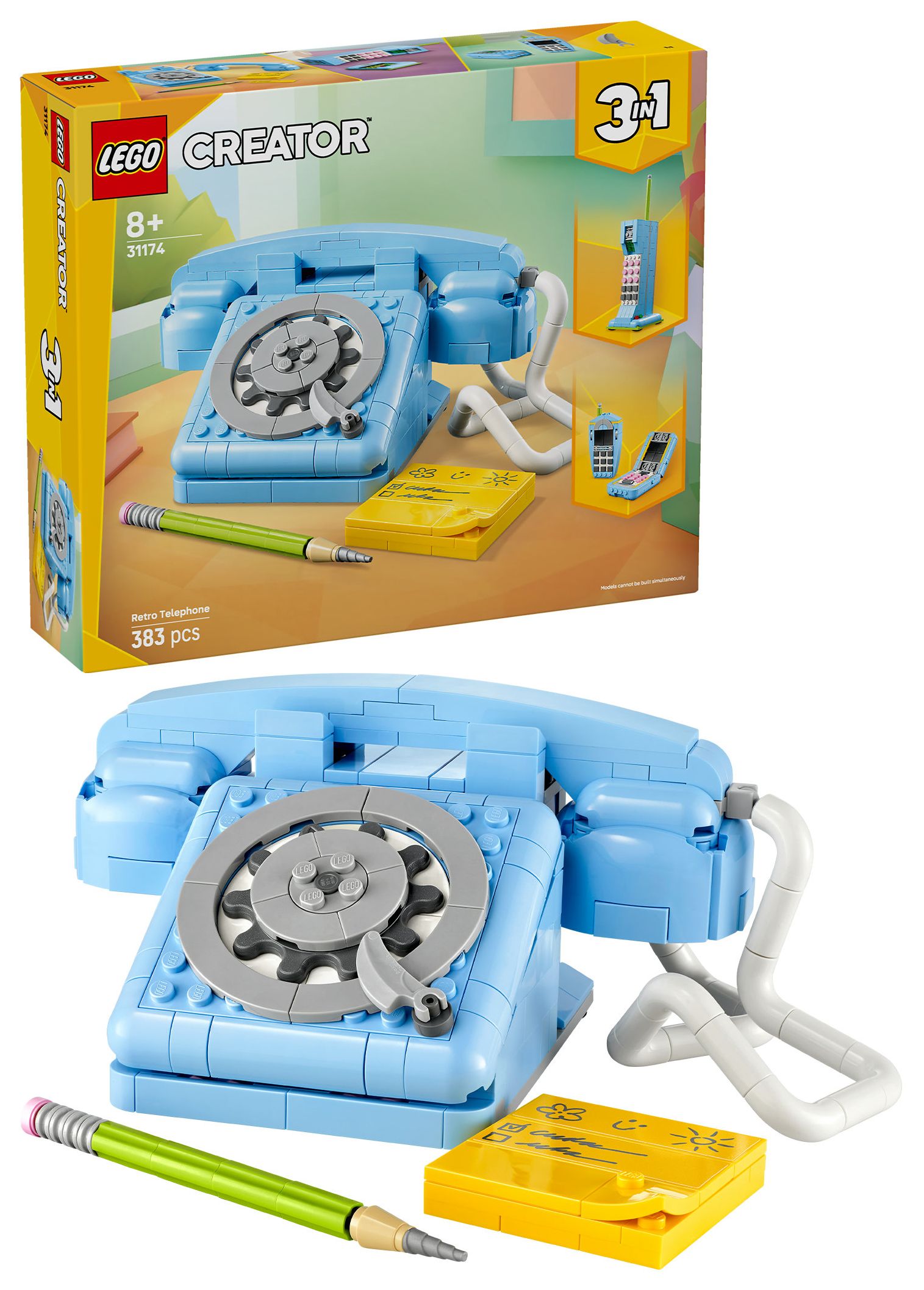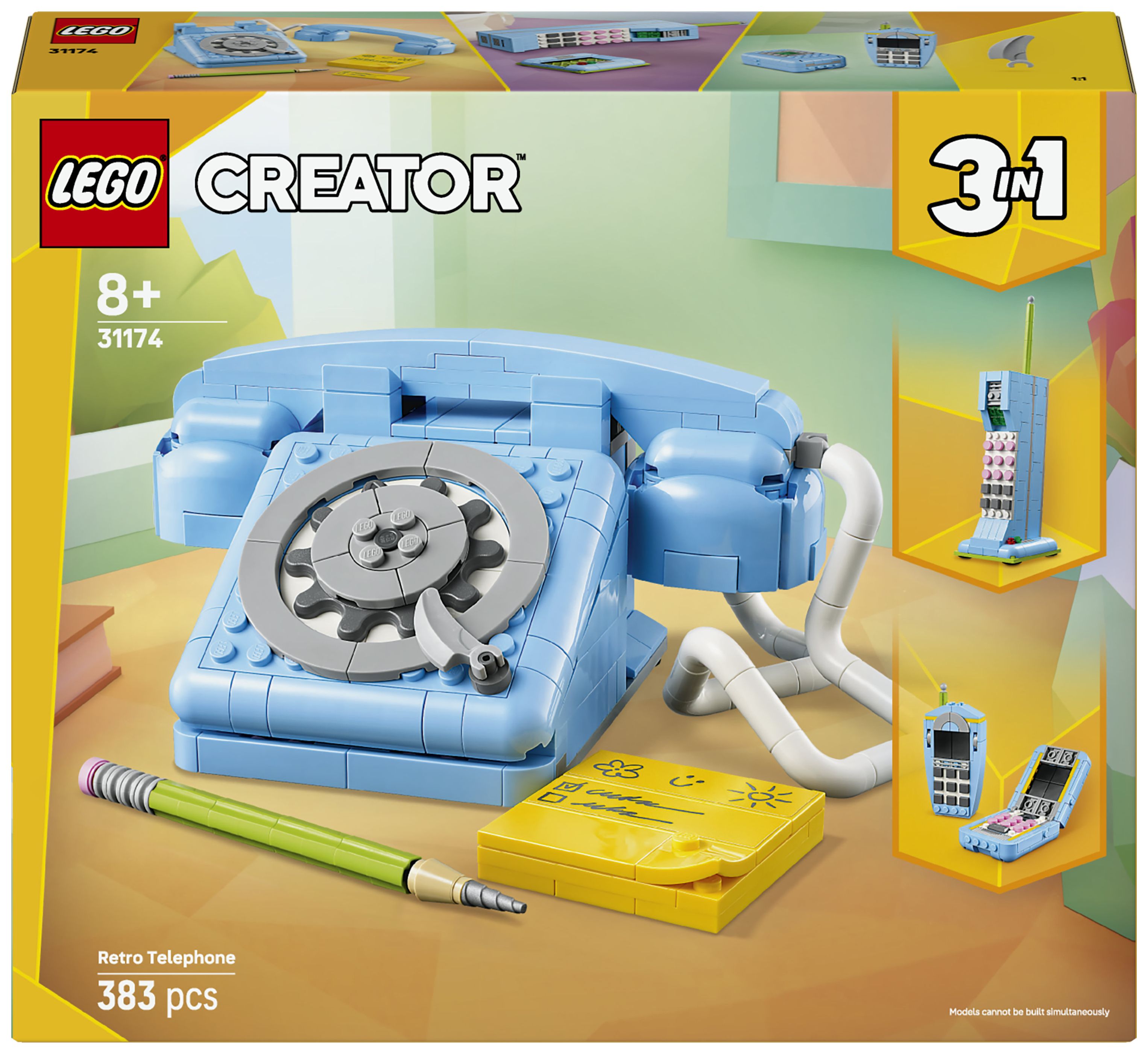 3 Retro-Telefone in 1 Box: Das LEGO Creator Retro-Telefon ist ein 3-in-1-Spielset, das Kinder ab 8 Jahren 3 verschiedene Telefone im Retro-Look aus denselben LEGO Steinen bauen und immer wieder umgestalten lässt