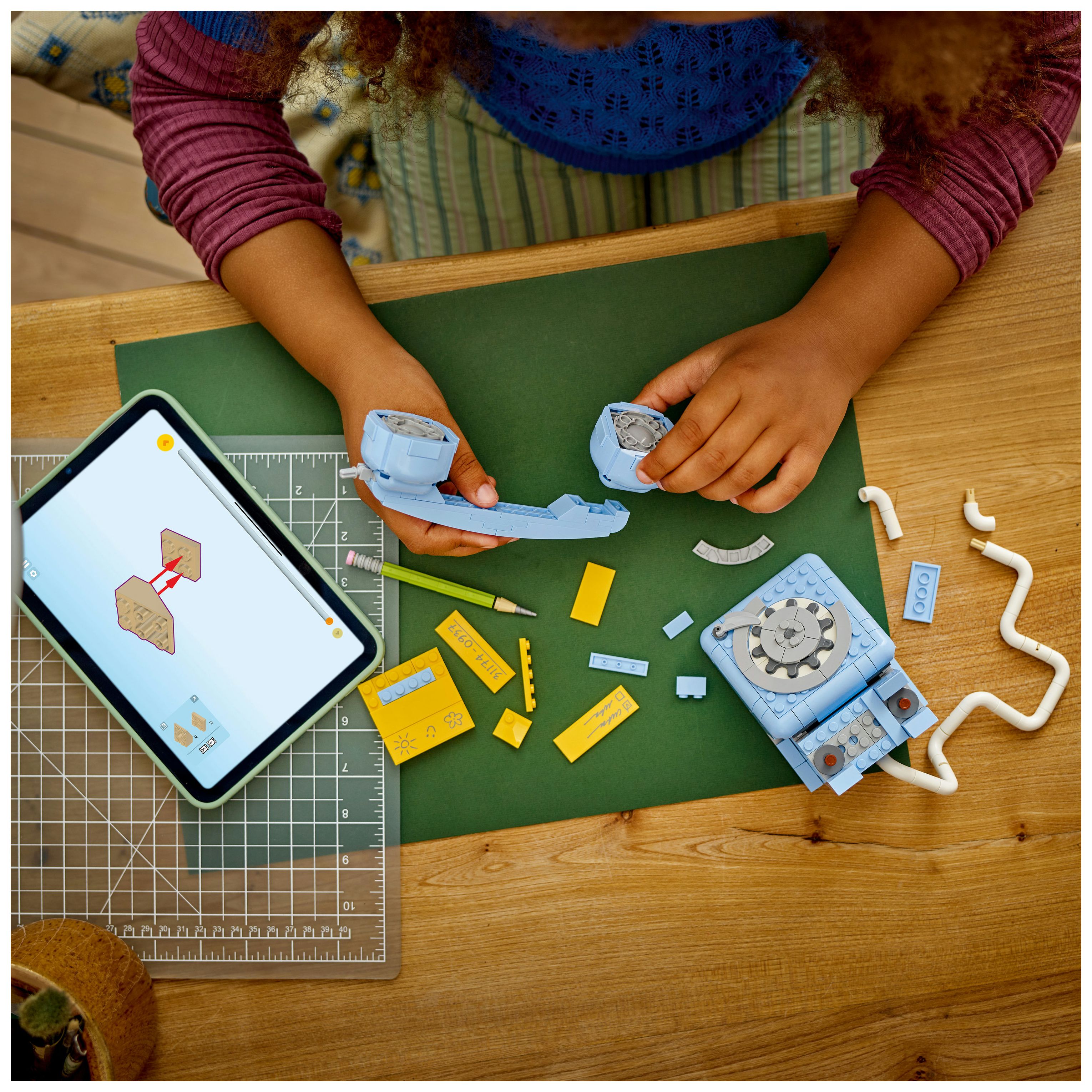 Das stylishe LEGO® Creator Retro-Telefon (31174) aus diesem 3-in-1-Bauset lässt nostalgische Erwachsene und Kinder in die Vergangenheit reisen. Das Retro-Telefon aus den 1960ern hat einen abnehmbaren Hörer, ein biegsames Kabel, eine Wählscheibe und eine Federfunktion, wenn die Anrufer auflegen. Zu der Zimmer-Deko im Retro-Look gehören auch ein Bleistift aus LEGO Steinen und ein anpassbarer Haftnotizblock. 3 Steinchen mit verschiedenen Notizen stehen zur Wahl.