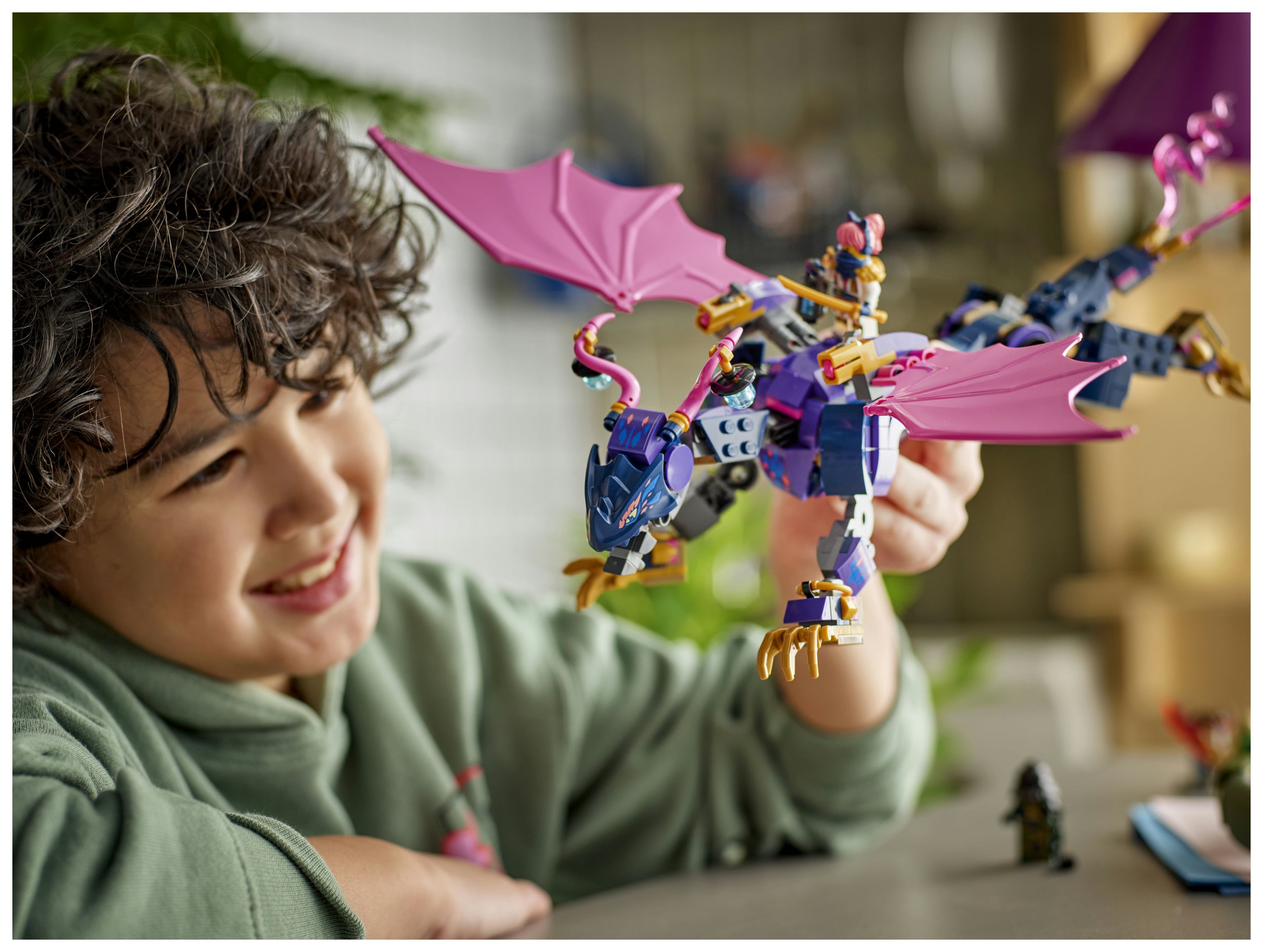 Äußerst bewegliche Figur: Dieser große Drache kann Schwanz, Kopf und Maul sowie Flügel und Beine bewegen. Unter jedem Flügel befindet sich ein Shooter, und auf seinem Rücken gibt es 2 Sitzpositionen für eine Minifigur