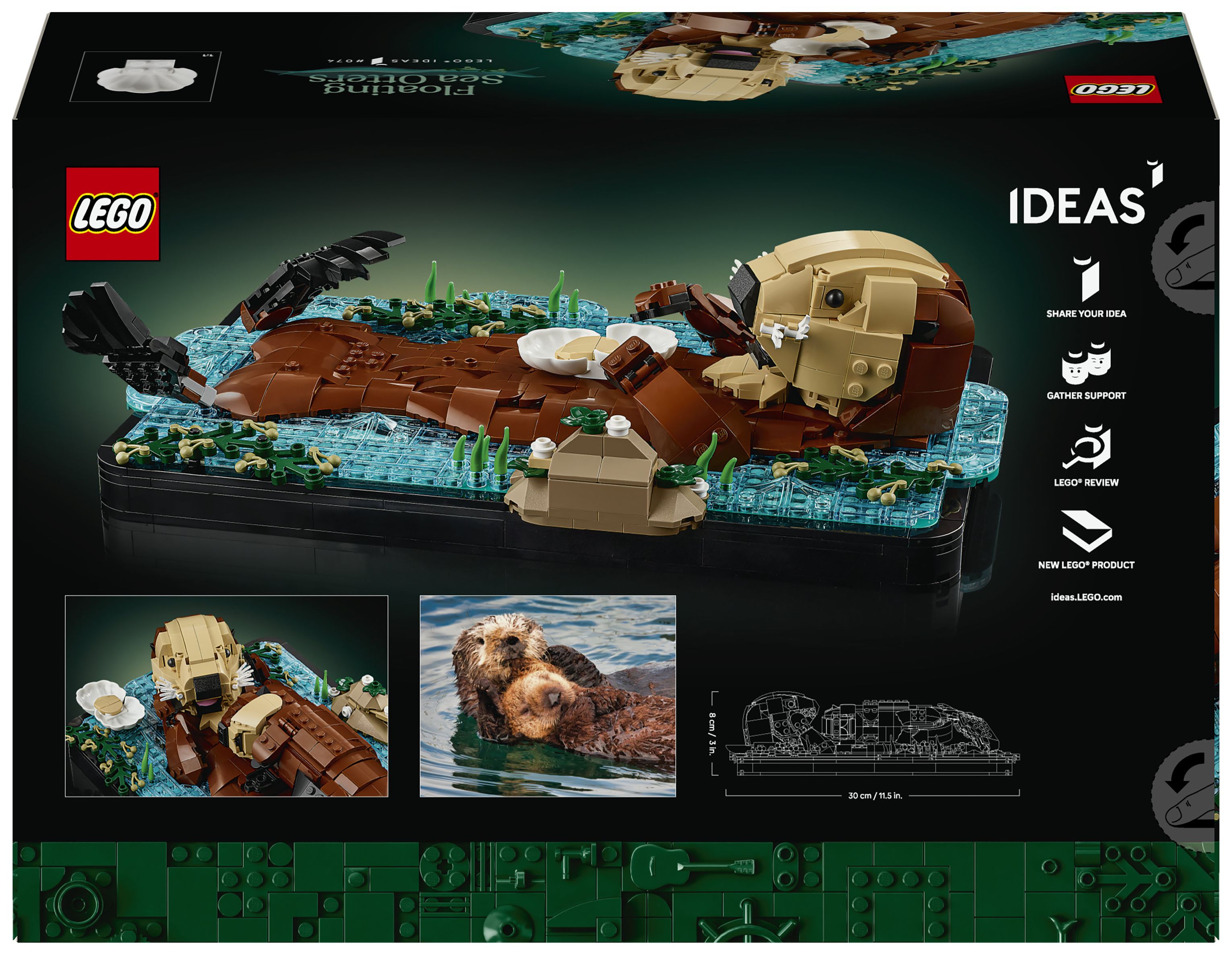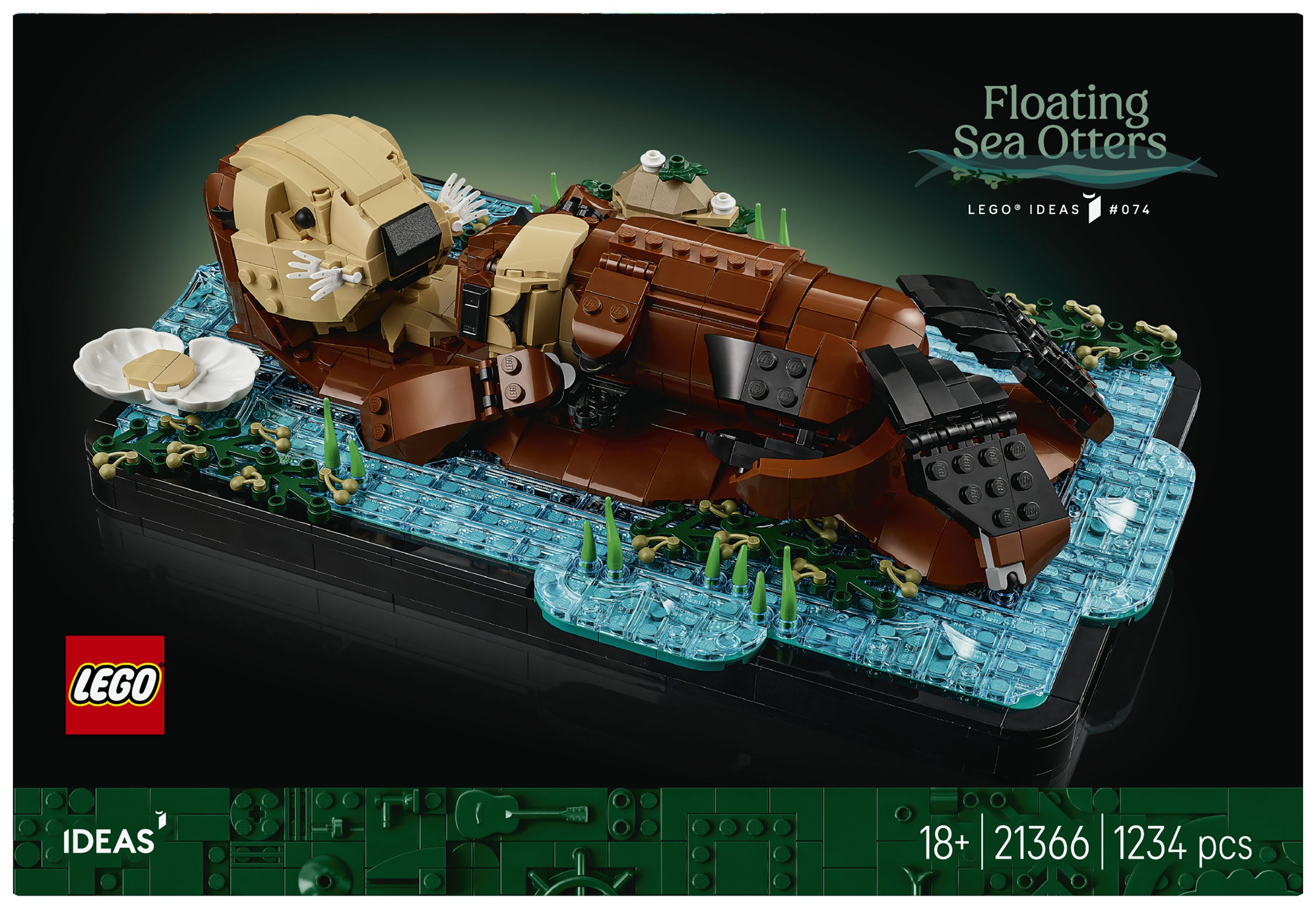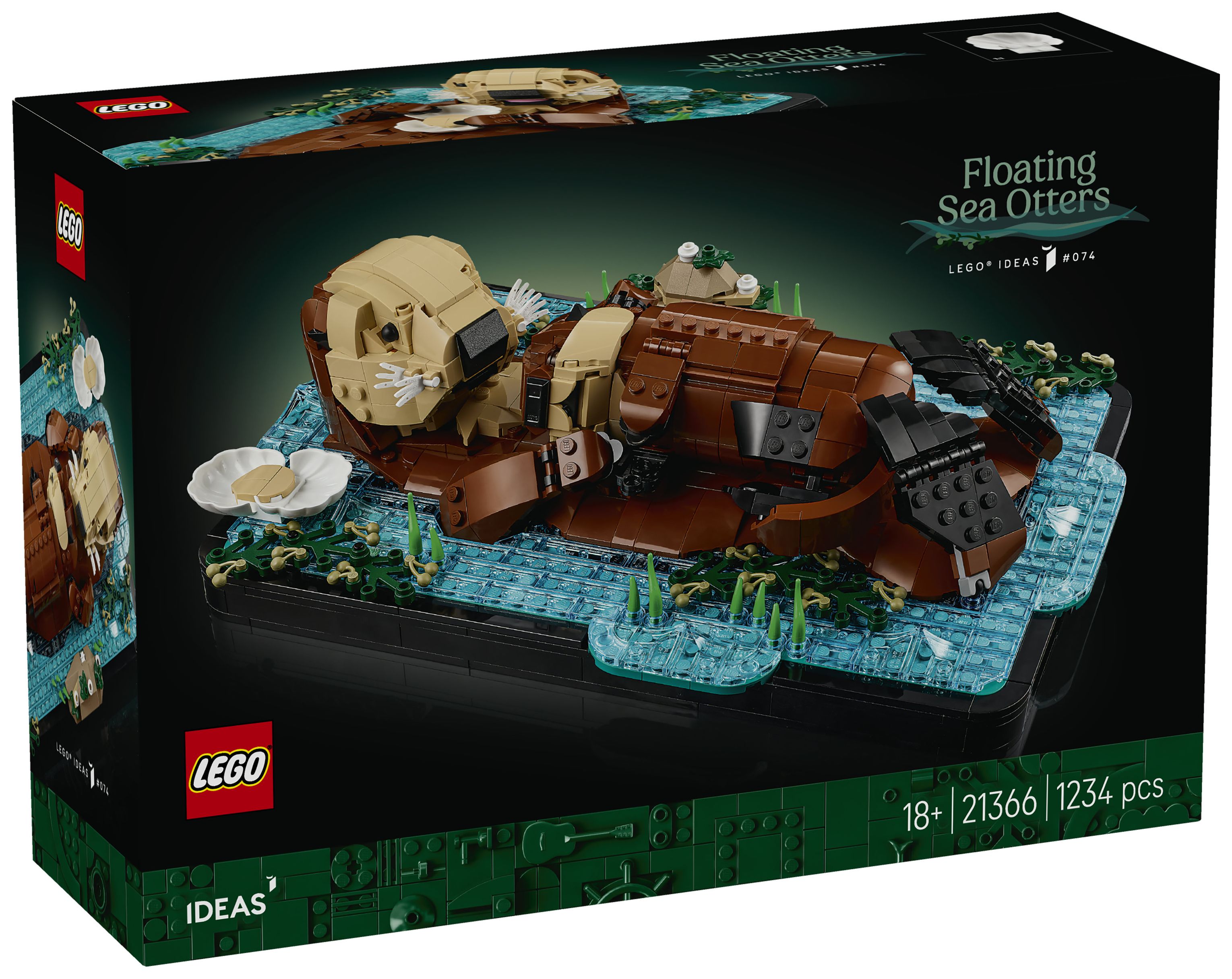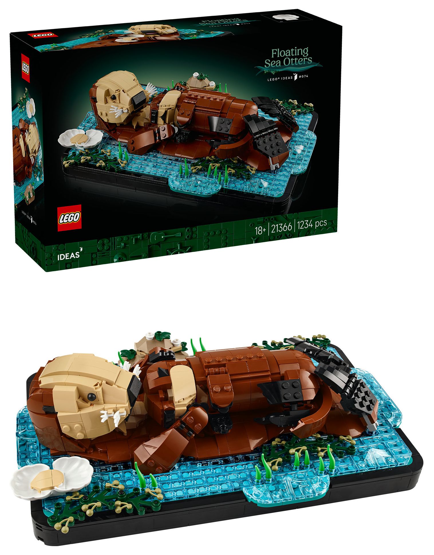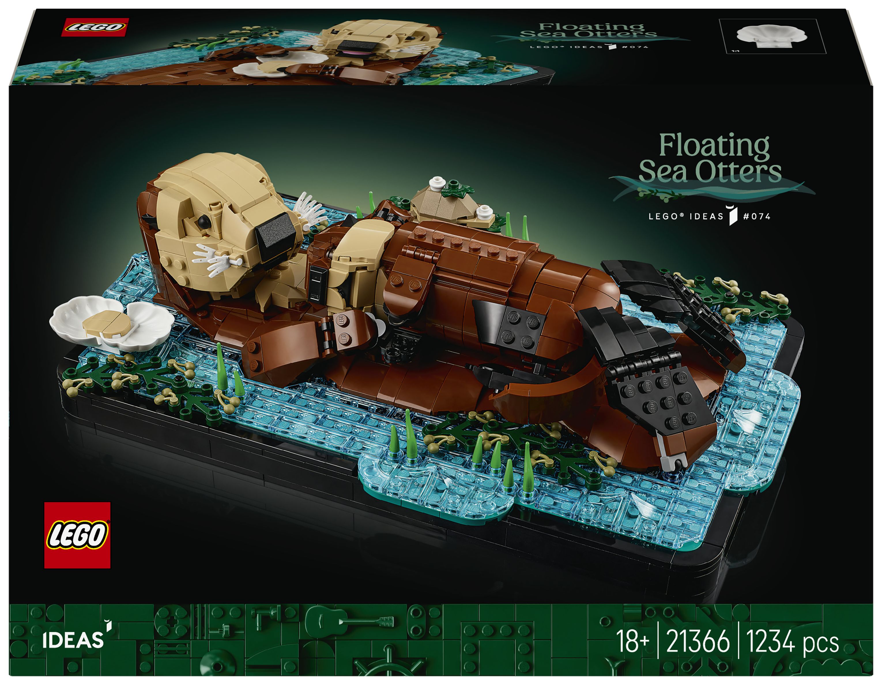 LEGO® Ideas Schwimmende Otter (21366) ist ein Bauset für Erwachsene, das dich eine Zimmerdeko erschaffen lässt, die an Niedlichkeit nicht zu übertreffen ist. Erschaffe ein zauberhaftes Modell aus LEGO Steinen, das eine Ottermama mit ihrem Jungen auf dem Bauch im Wasser darstellt. Leg das kleine Jungtier auf den Bauch der Mama. Bring Kopf, Maul, Flossen und Klauen der Mama in die richtige Pose. Gib der Mama eine baubare Muschel, um deinen Blickfang zu verändern.