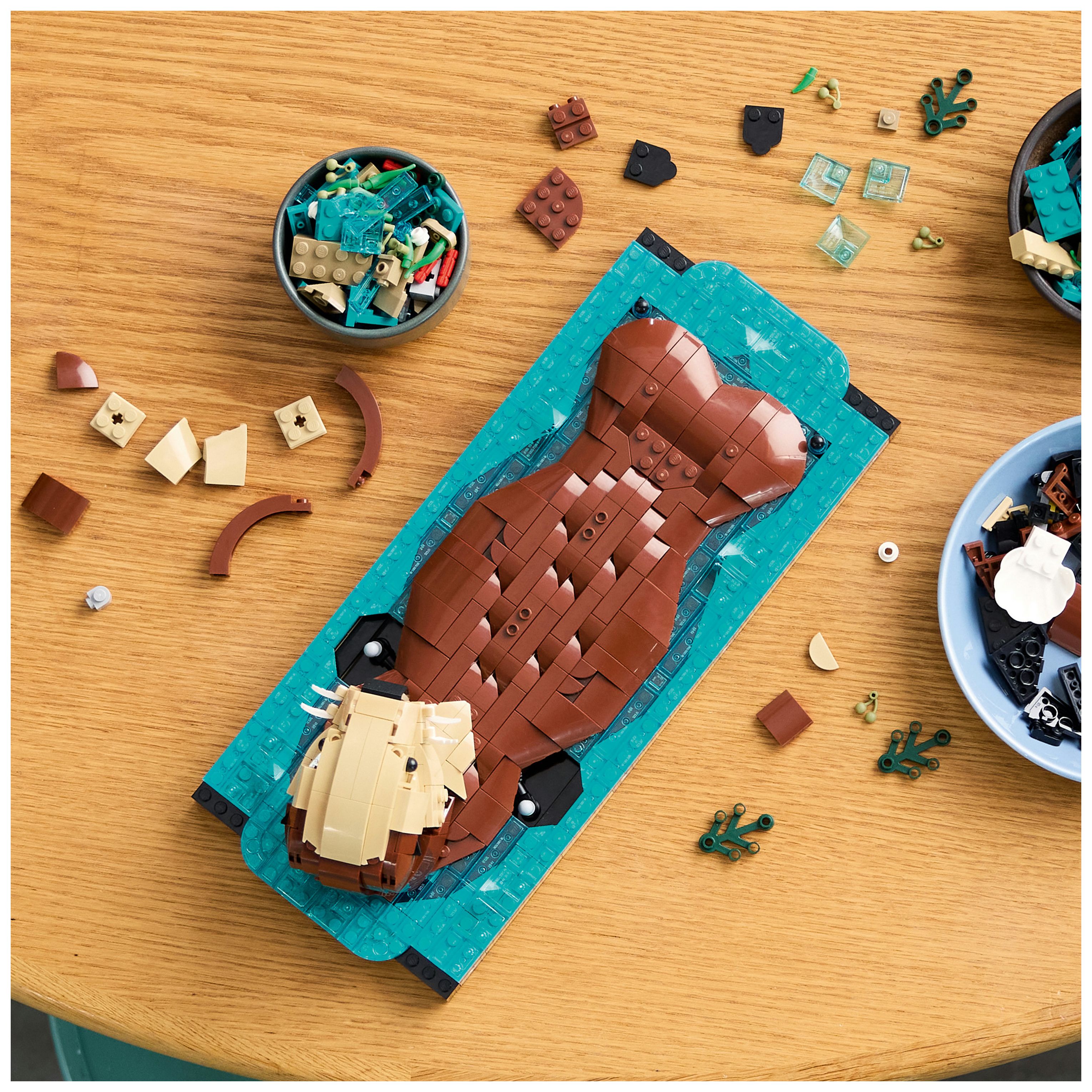 FASZINIERENDE ZIMMERDEKO: Dieses LEGO® Ideas Bauset (21366) für Erwachsene lässt dich 2 schwimmende Otter darstellen, deren Niedlichkeit, Ruhe und gegenseitige Zuneigung offensichtlich sind