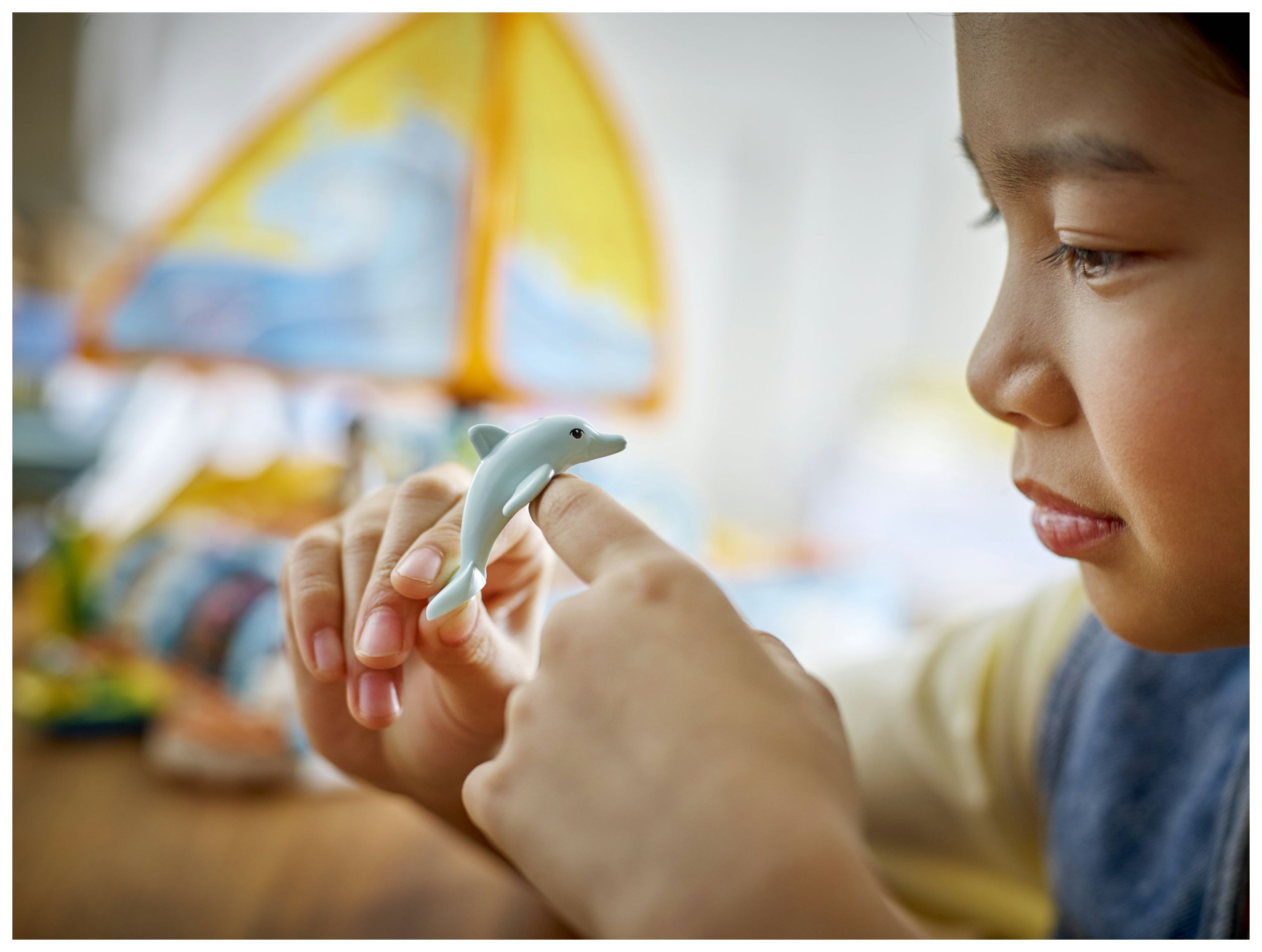 Spielset mit Boot und vielen Funktionen: Kinder können das Boot bauen und mit dem Modell dann eigene Geschichten darstellen. Die Freunde können auf dem Boot spielen, ausruhen und nach Delfinen Ausschau halten