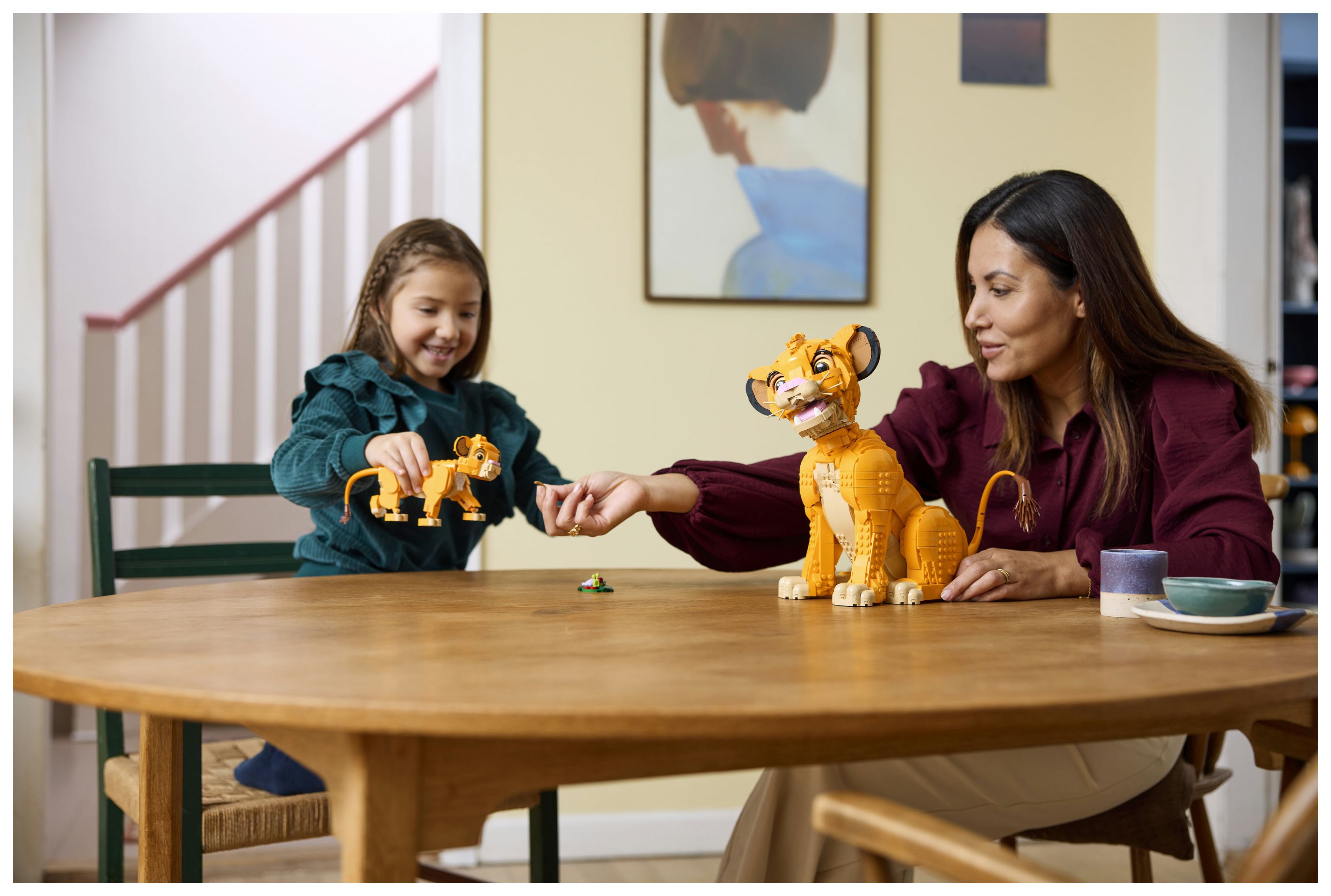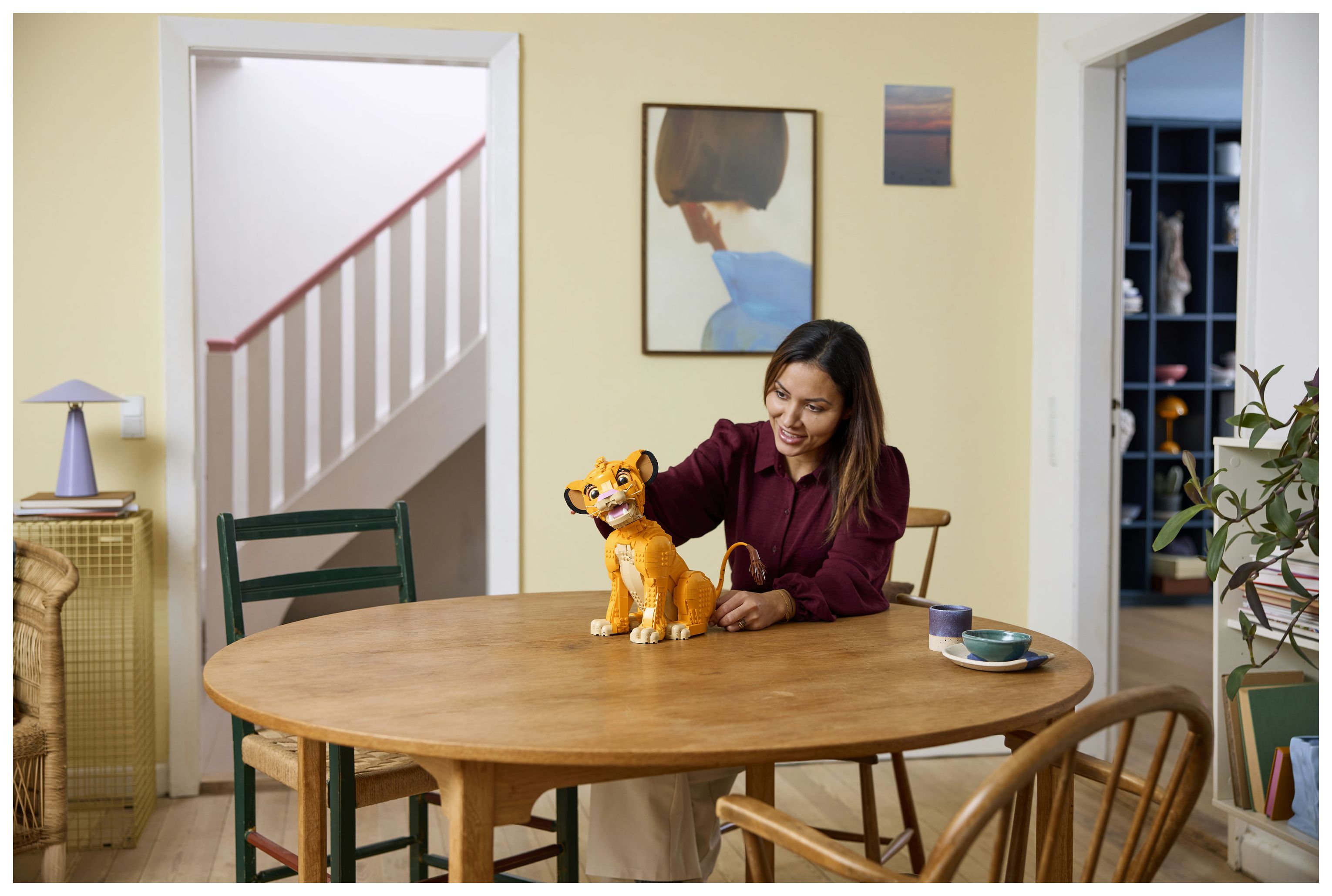 Kreatives Projekt: Diese LEGO® ǀ Disney Tierfigur stellt Simba mit beweglichem Kopf dar. Freu dich auf ein gemeinsames Projekt mit einem jüngeren Baumeister, der das separat erhältliche Pendant für Kinder – Simba, das Löwenjunge des Königs – baut