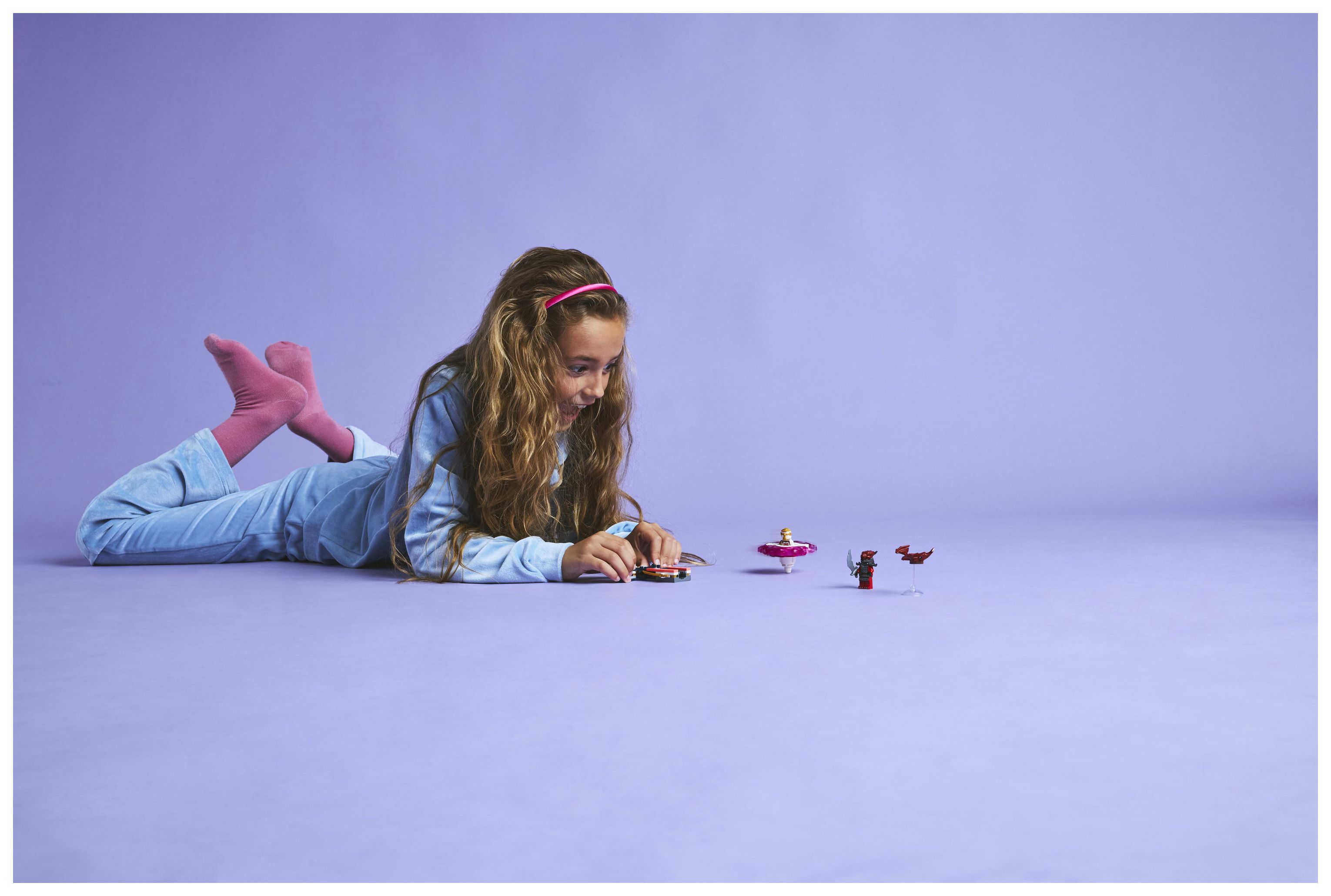 2 NINJAGO® Minifiguren: Dieses Bauset für Kinder beinhaltet Sora, die in ihrem Spinjitzu-Spinner sitzt, einen bösen Drachenspäher und ein kleines Modell einer Drachenkreatur