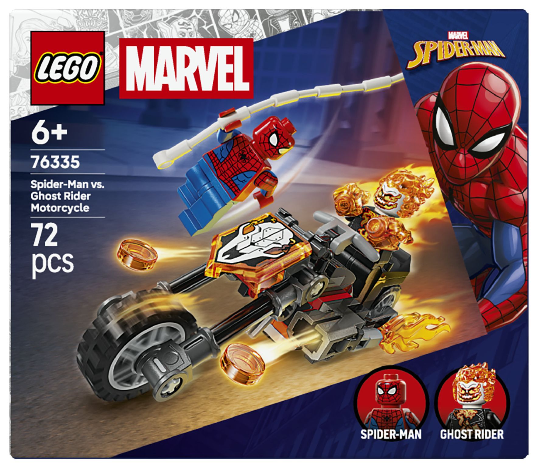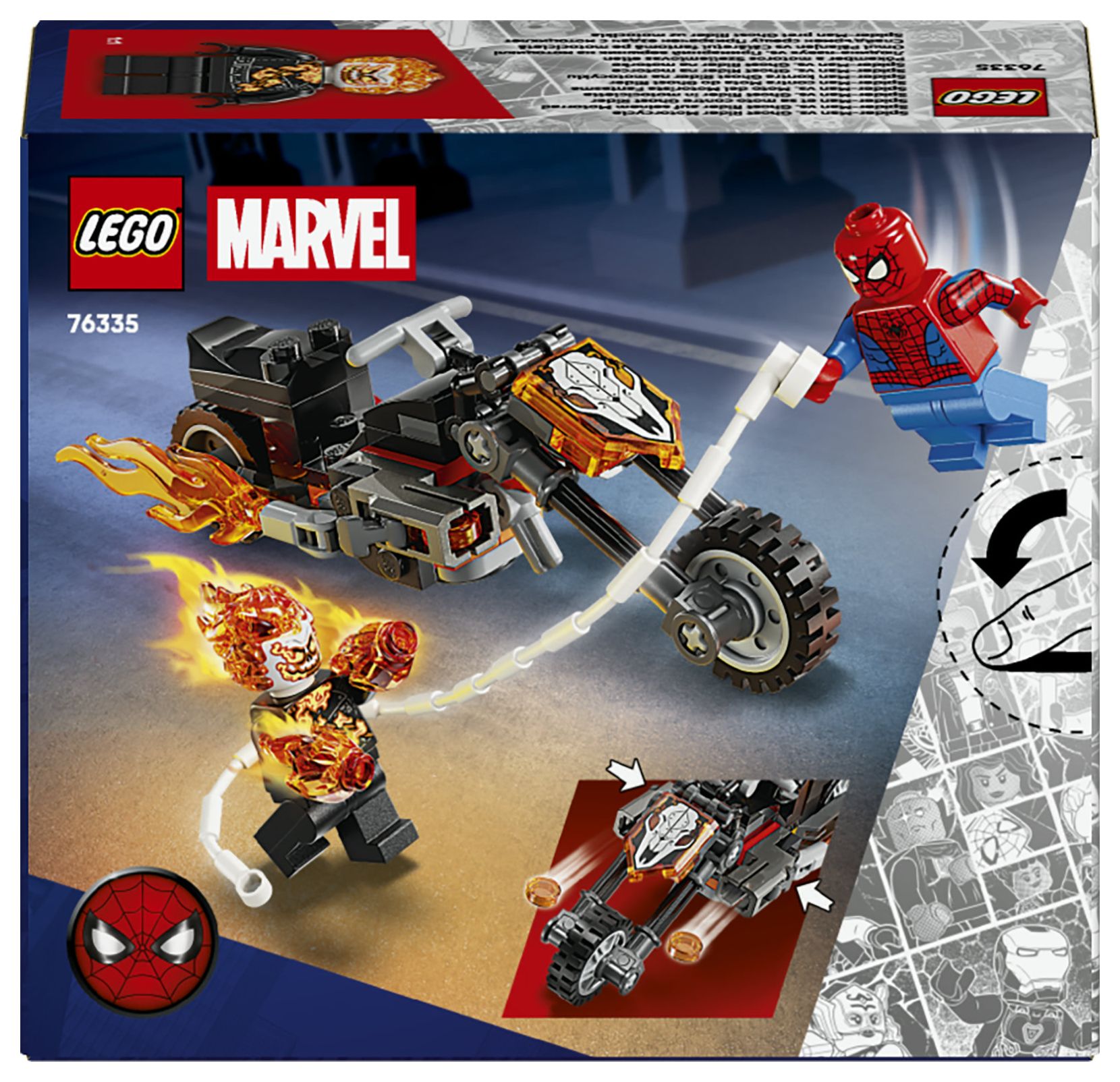 LEGO® ǀ Marvel Spider-Man vs. Ghost Rider auf seinem Motorrad (76335); Superhelden-Bauspielzeug für Kinder ab 6 Jahren; Spider-Man Spielset mit Motorrad und 2 Minifiguren; Geschenk