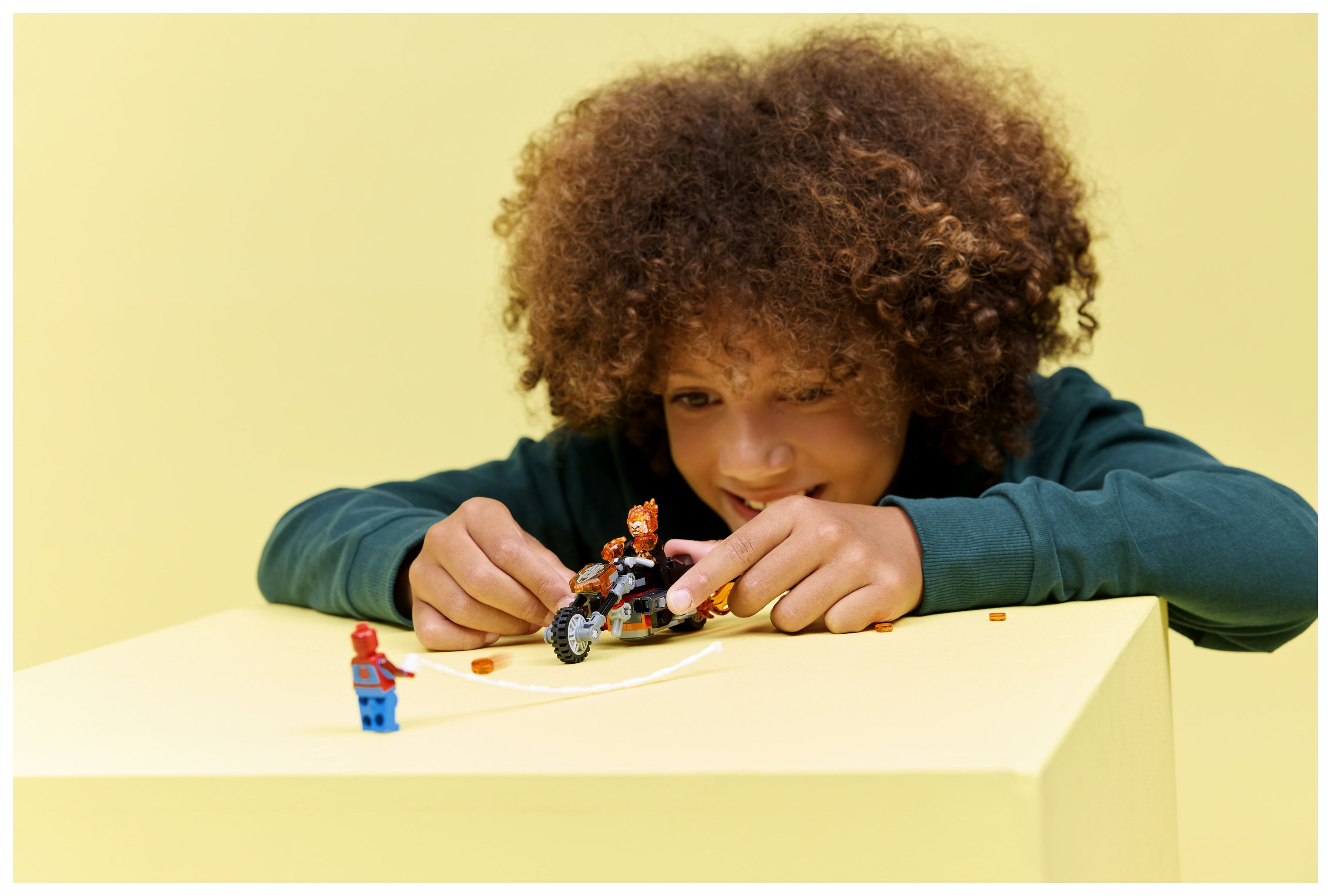 Spider-Man vs. Ghost Rider auf seinem Motorrad (76335) bietet Jungen und Mädchen ab 6 Jahren spannende Superhelden-Action. Das feurige Motorrad und die beiden dynamischen Minifiguren Spider-Man und Ghost Rider aus diesem LEGO® ǀ Marvel Bauset lassen Kinder besonders fantasievoll spielen.