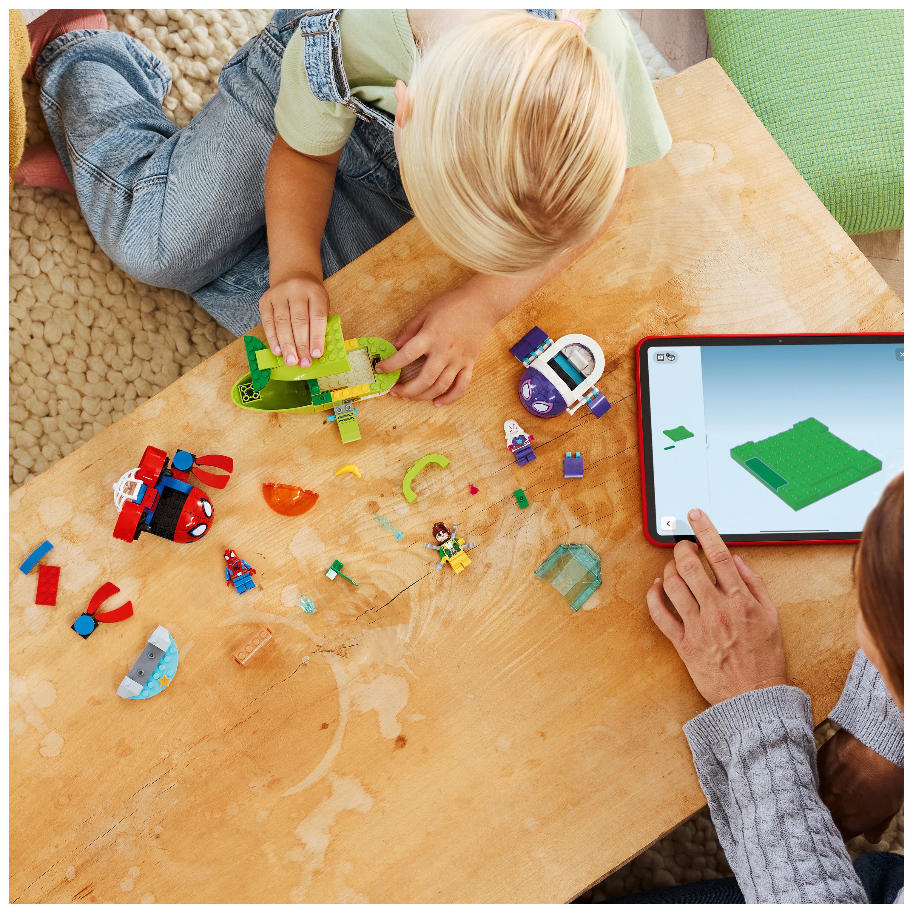 Das Bau- und Spielset beinhaltet 3 Fahrzeuge: Spideys Krabben-U-Boot hat ein großes Spinnennetz. Ghost-Spiders Schildkröten-U-Boot hat einen aufklappbaren durchsichtigen Panzer. Und Doc-Ocks Wal-U-Boot hat nicht nur Shooter an den Flossen, sondern auch Stauraum für die Schatztruhe. Spidey: Unterwasserfahrzeuge ist ein tolles Geburtstagsgeschenk für Fans der TV-Serie Spidey und seine Super-Freunde. Bunte Bildanleitungen, große Starter-Bauelemente und separate Beutel mit jeweils 1 Modell lassen junge Baufans rasch bauen und sofort spielen. In der LEGO Builder App mit verständlichen digitalen Bauanleitungen vergrößern und drehen Kinder 3D-Modelle und sehen, wie weit sie mit ihrem Modell schon sind. Das Set besteht aus 154 Teilen.