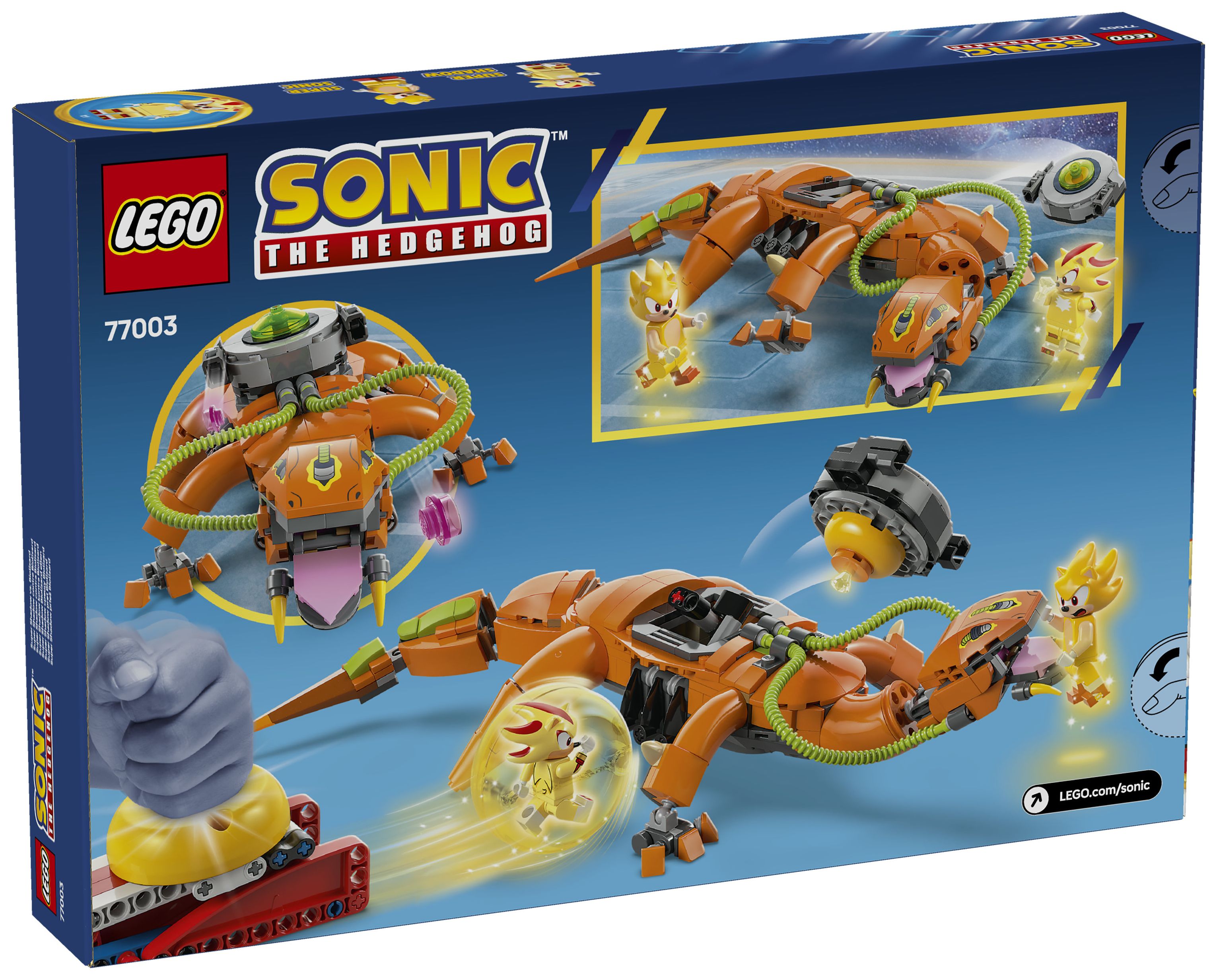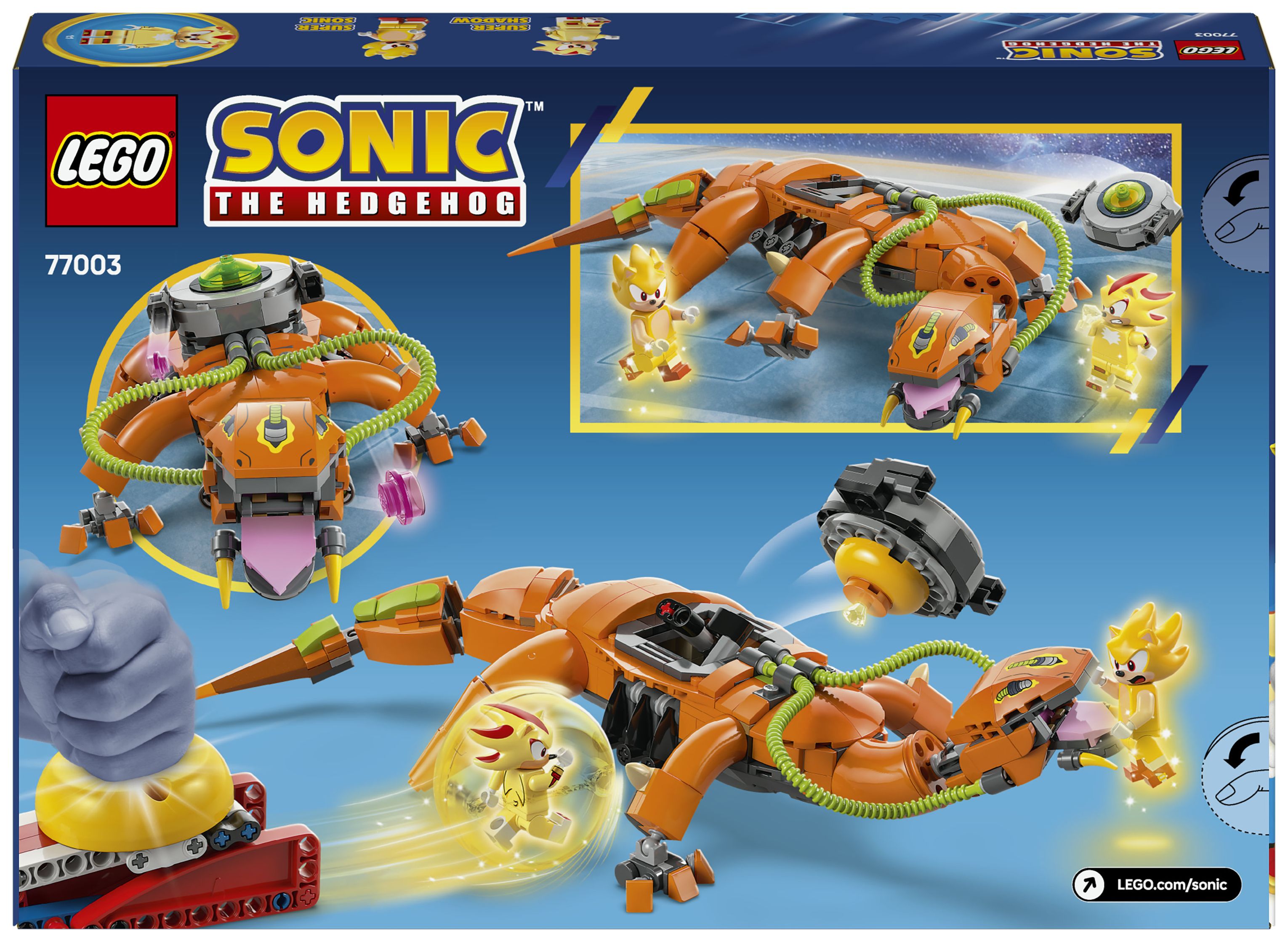 Super Shadow vs. Biolizard (77003) ist ein Bauset, das Kinder und Fans ab 9 Jahren spannende Actionabenteuer darstellen lässt. Dieses LEGO® Sonic the Hedgehog™ Spielzeug zum Sammeln besteht aus der Figur Biolizard aus LEGO Steinen (mit Energiekapsel), einer Geschwindigkeitskugel mit Startkatapult sowie Zubehör, beispielsweise einem Chaos Emerald. Dieses coole Geschenk für junge Gamer beinhaltet auch noch 2 weitere Charaktere – die Minifiguren Super Shadow und Super Sonic.