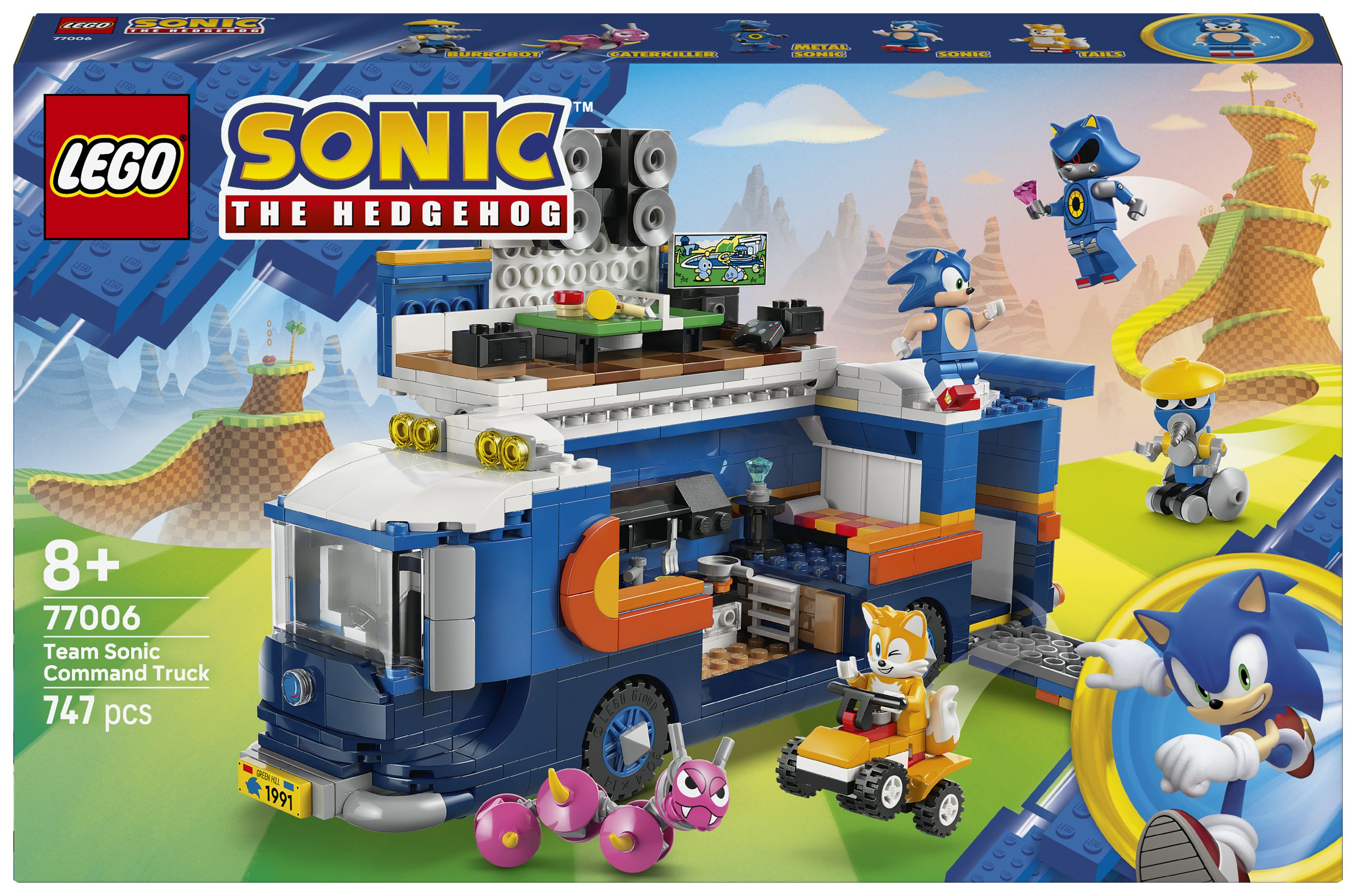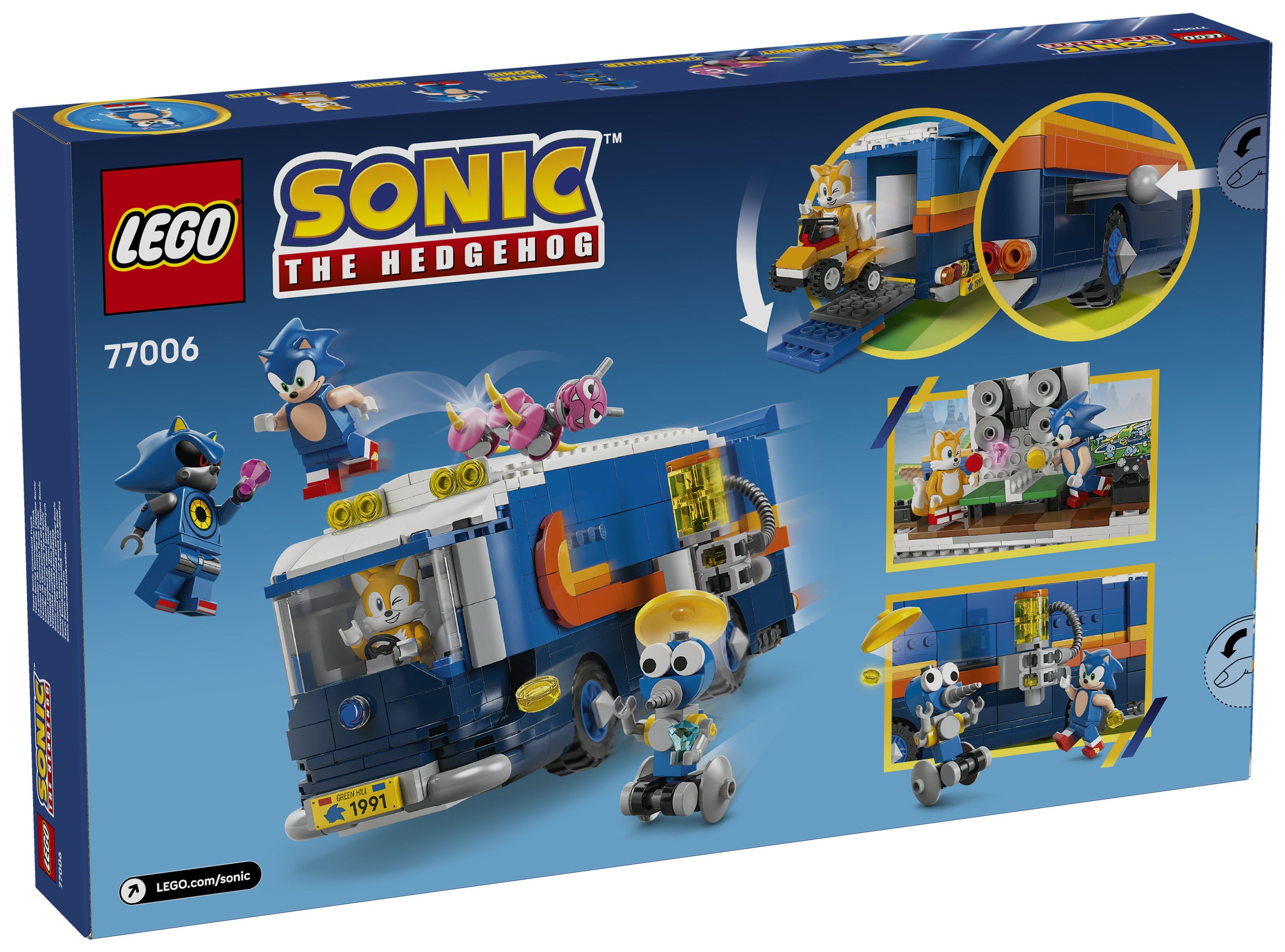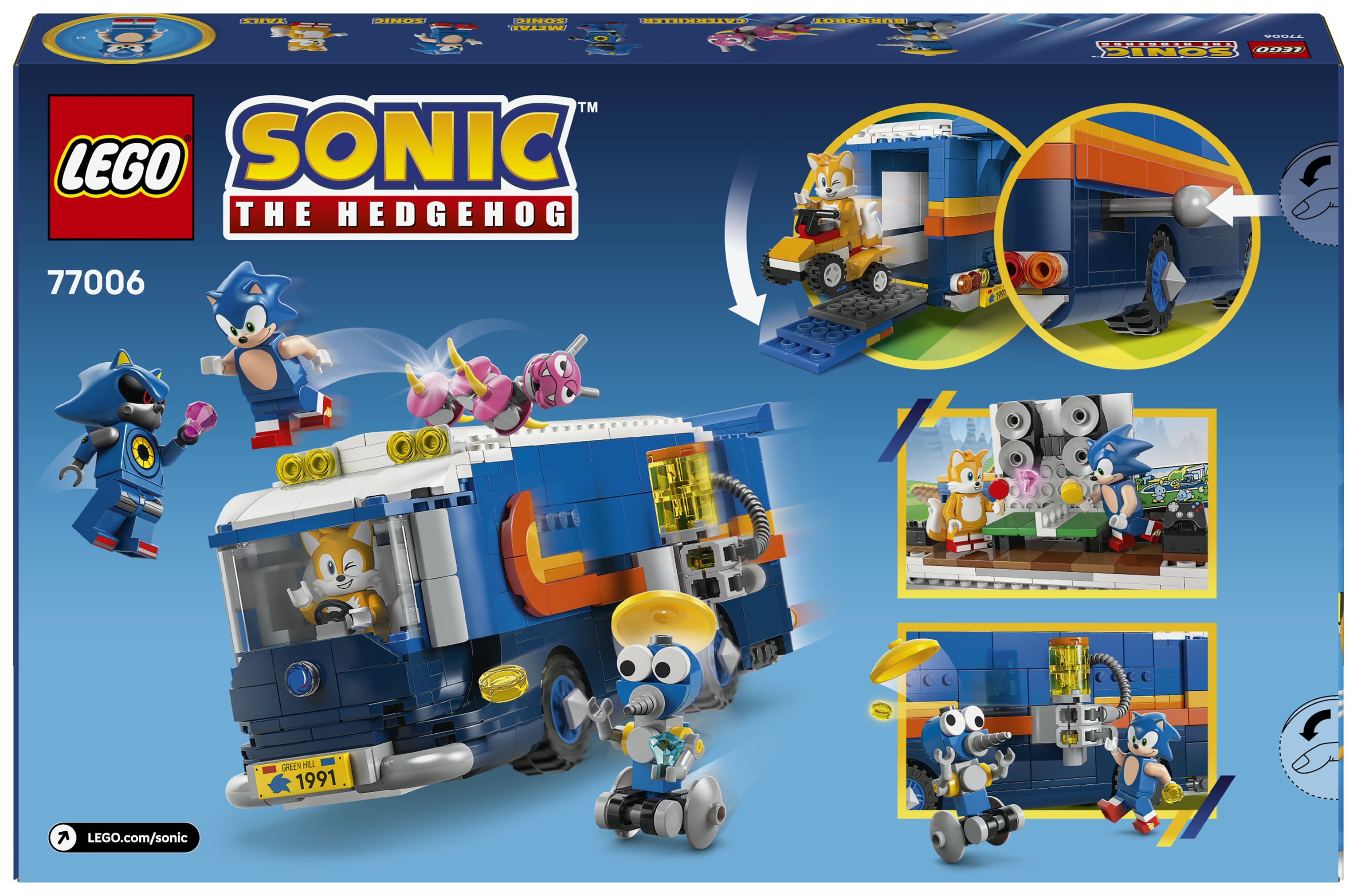 LEGO® Bauspielzeug: Der Kommando-Truck hat einen Laderaum mit Tür/Rampe und einer interaktiven Startfunktion, um Tails auf dem Quad den beiden Badniks Burrobot und Caterkiller hinterherjagen zu lassen