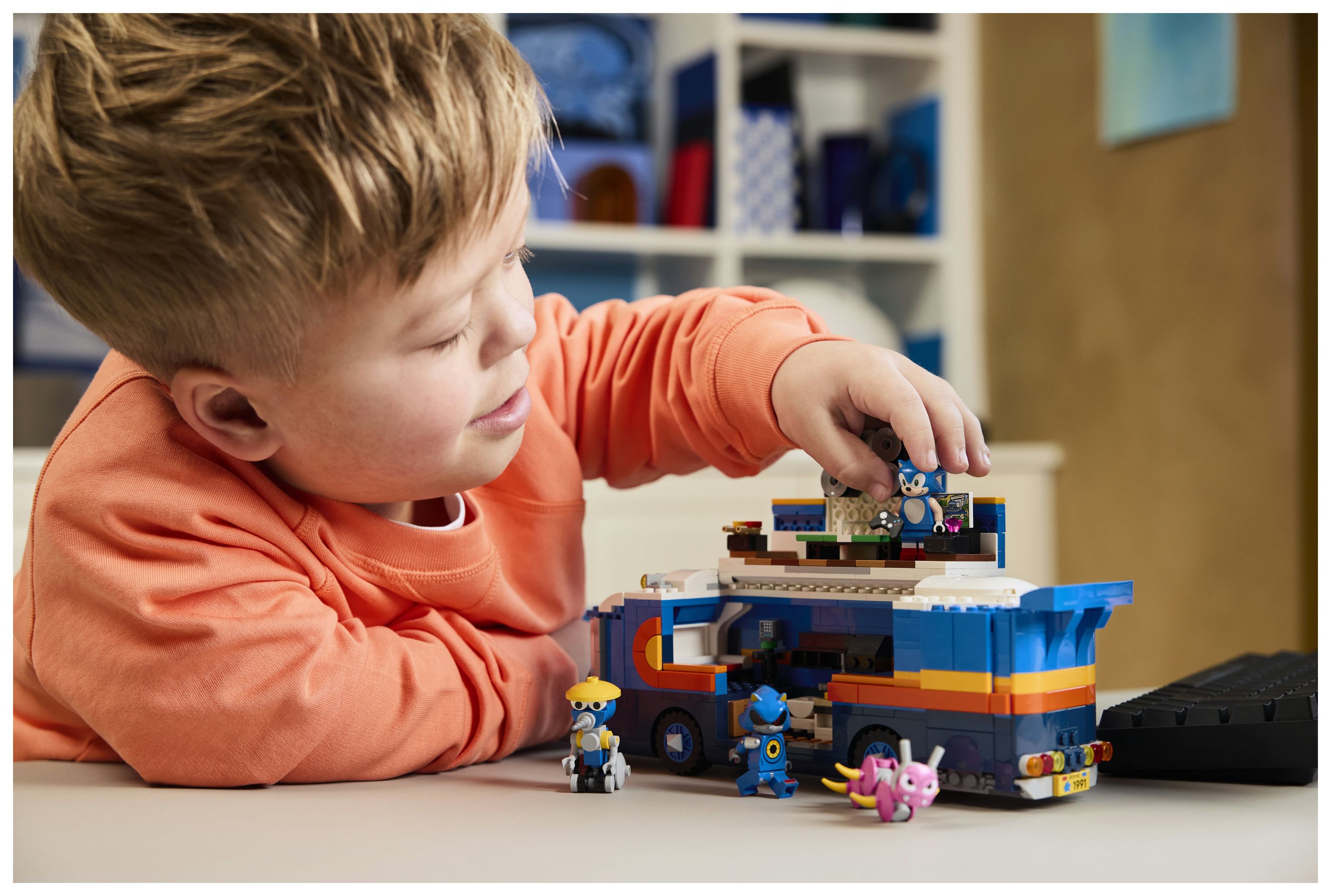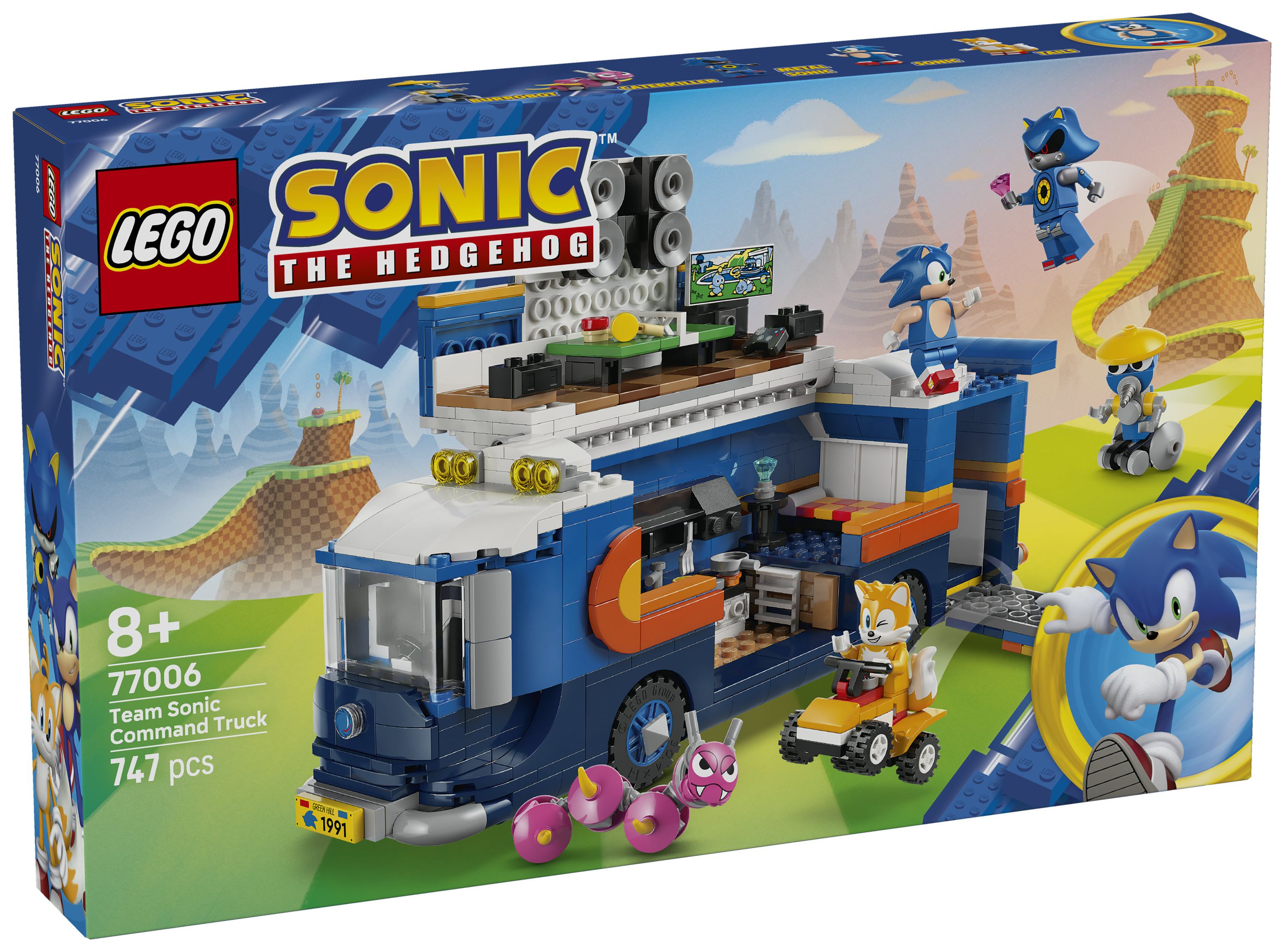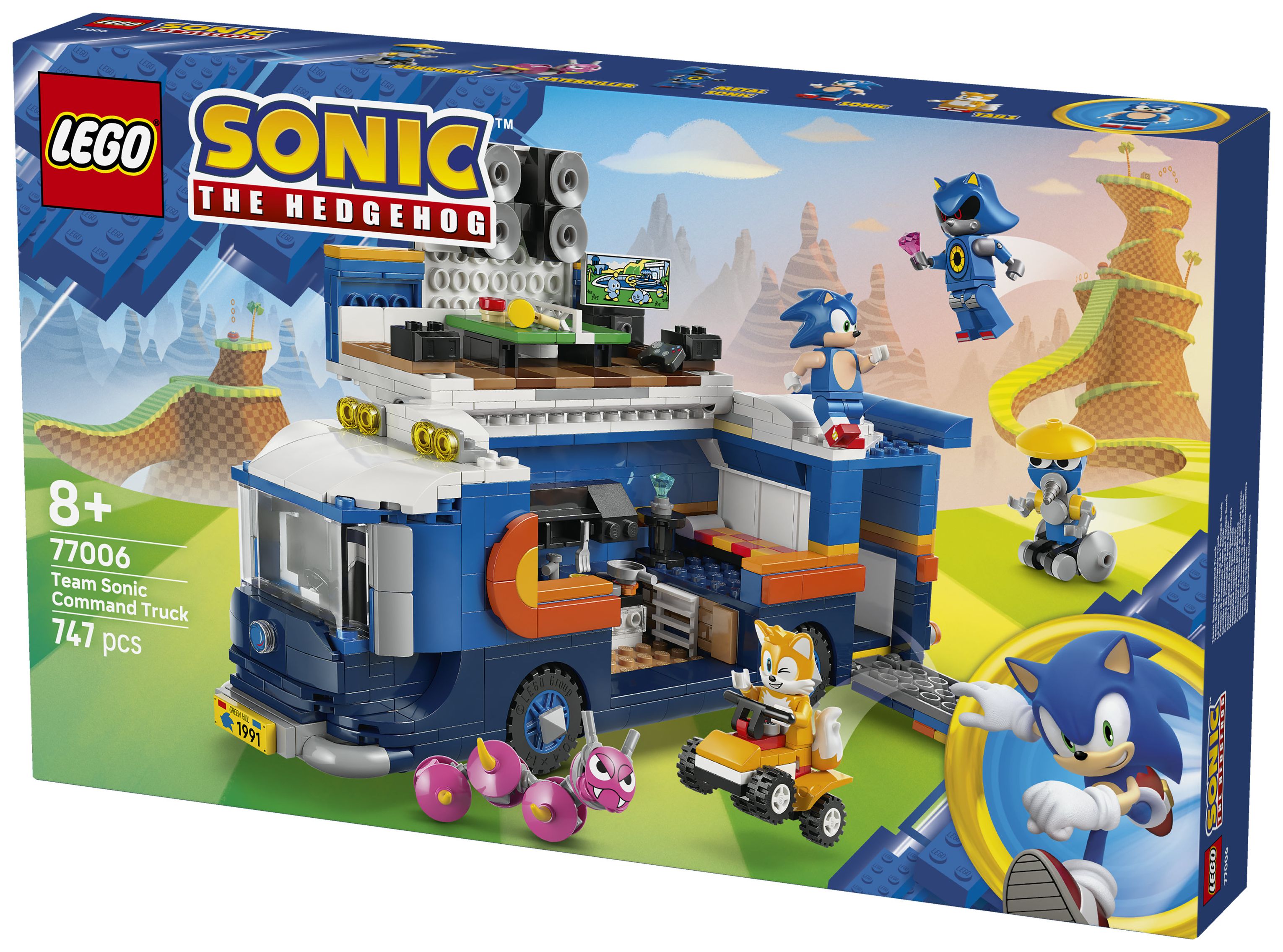 LEGO® Bauspielzeug: Der Kommando-Truck hat einen Laderaum mit Tür/Rampe und einer interaktiven Startfunktion, um Tails auf dem Quad den beiden Badniks Burrobot und Caterkiller hinterherjagen zu lassen