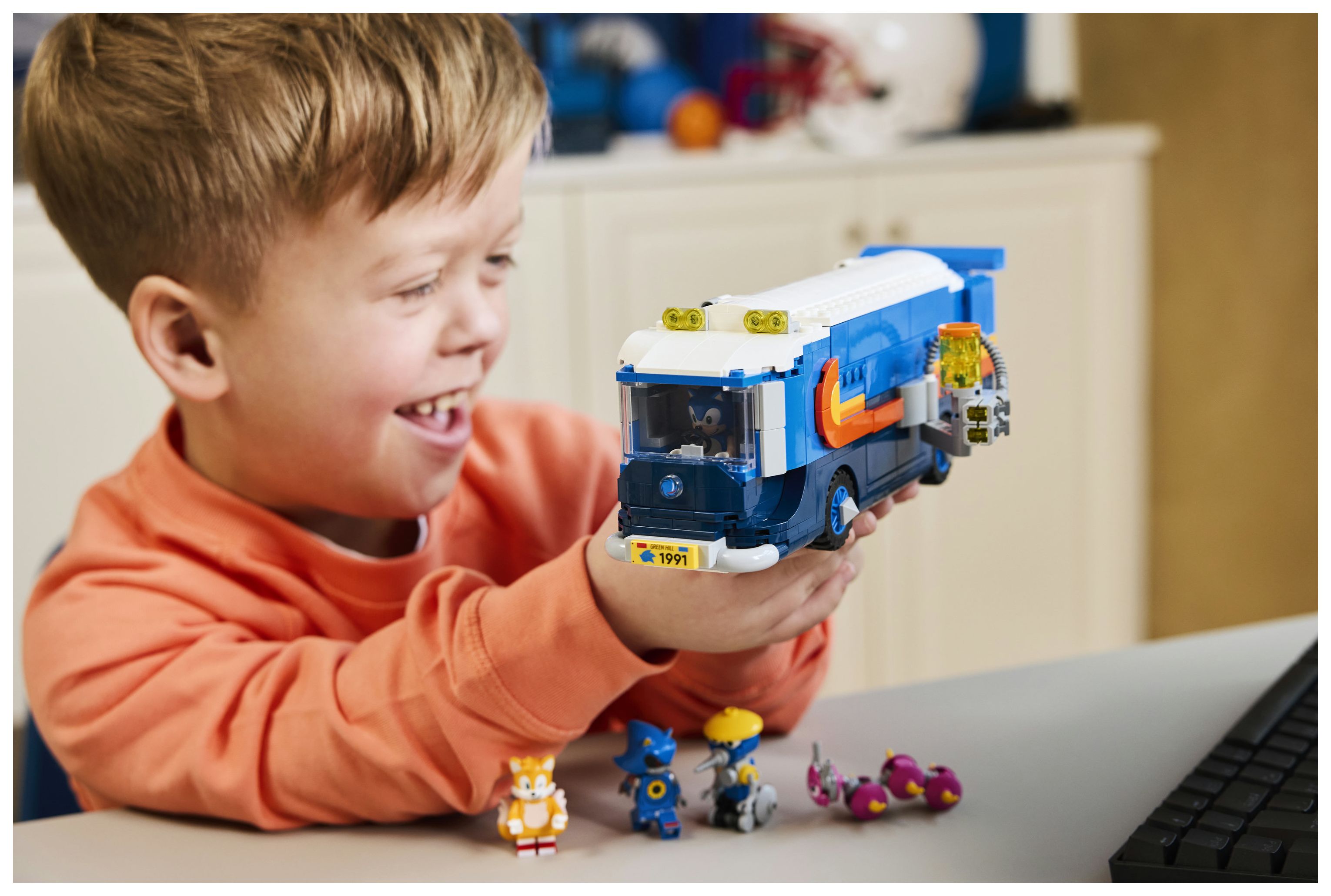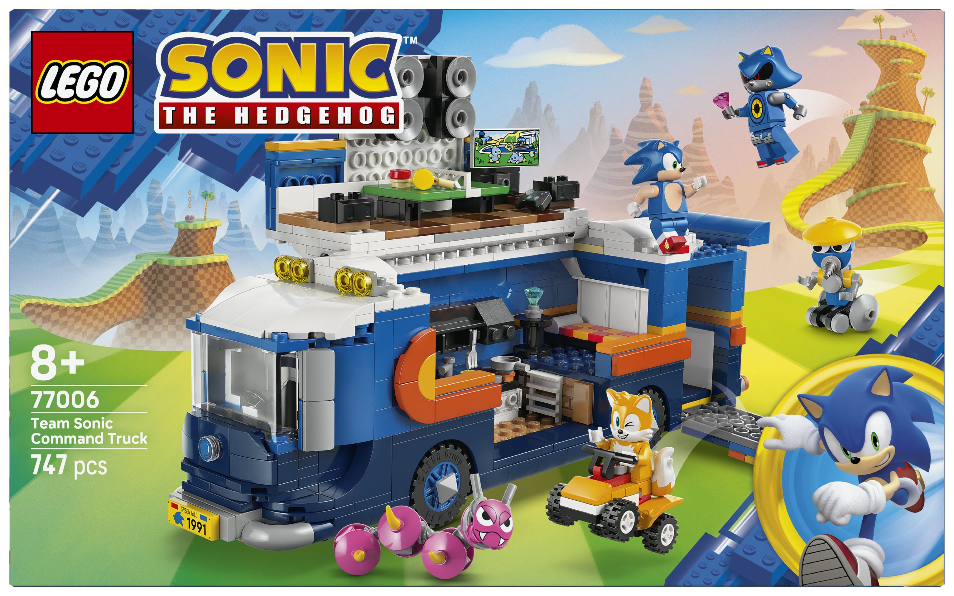 Actionspaß ist garantiert: Die LEGO® Minifiguren Sonic, Tails und Metal Sonic, die Figuren Burrobot und Caterkiller sowie ein Truck mit Kabine, Laderaum und Rampe fürs Quad laden zum Spielen ein
